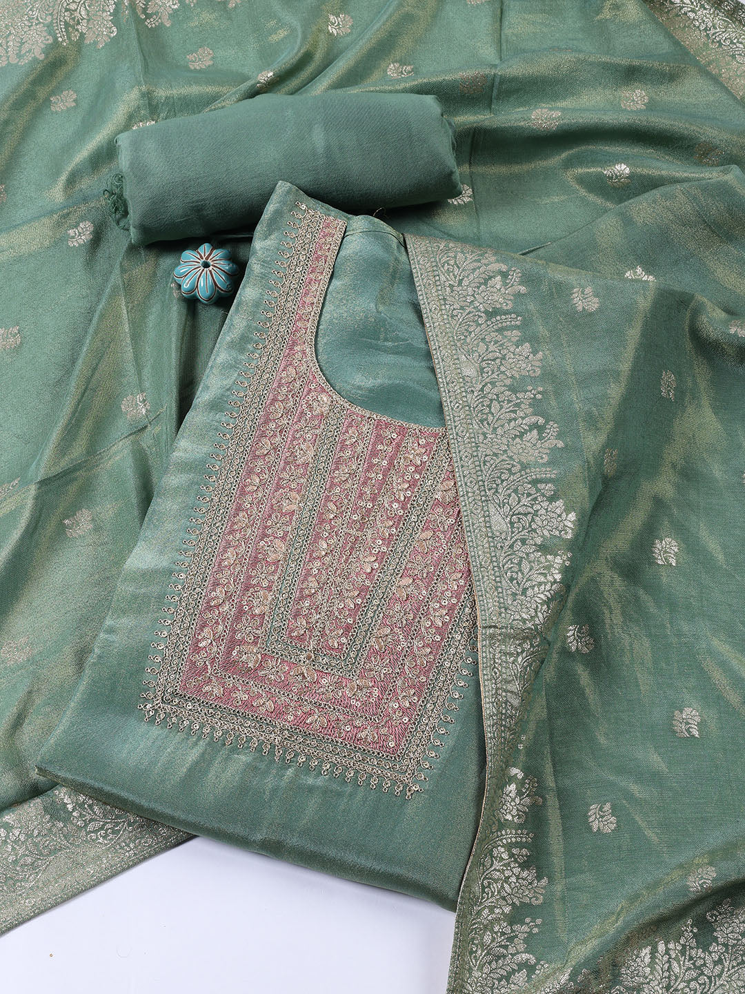 Neck Embroidered Tissue Unstitched Suit With Dupatta