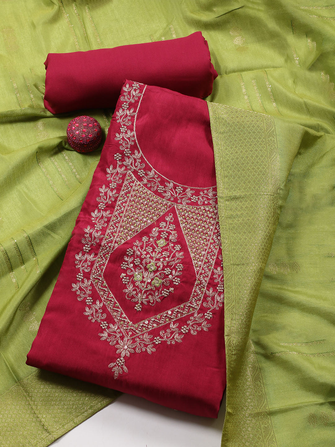 Neck Embroidered Chanderi Unstitched Suit Piece With Dupatta