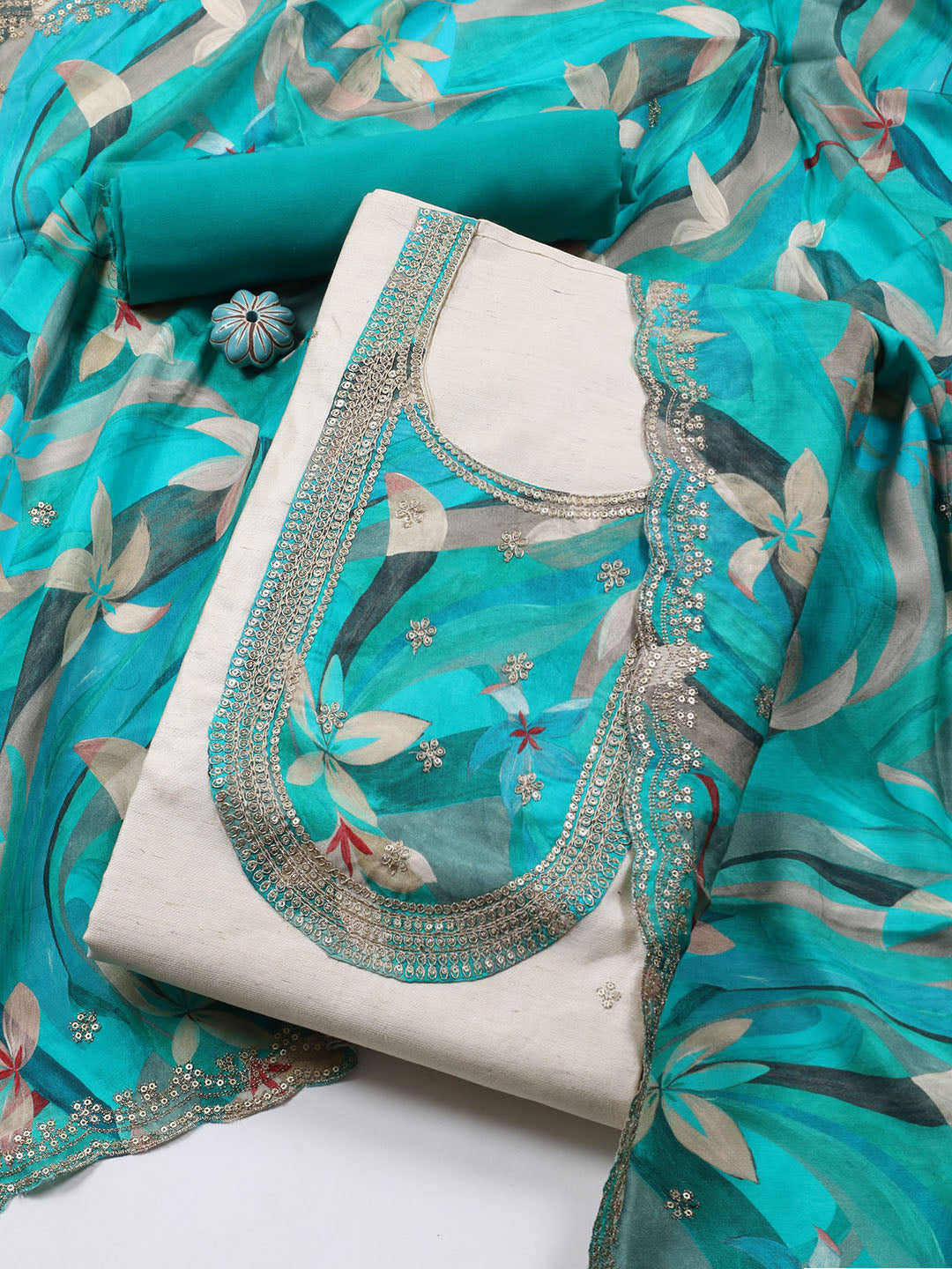 Neck Embroidered Chanderi Unstitched Suit Piece With Dupatta