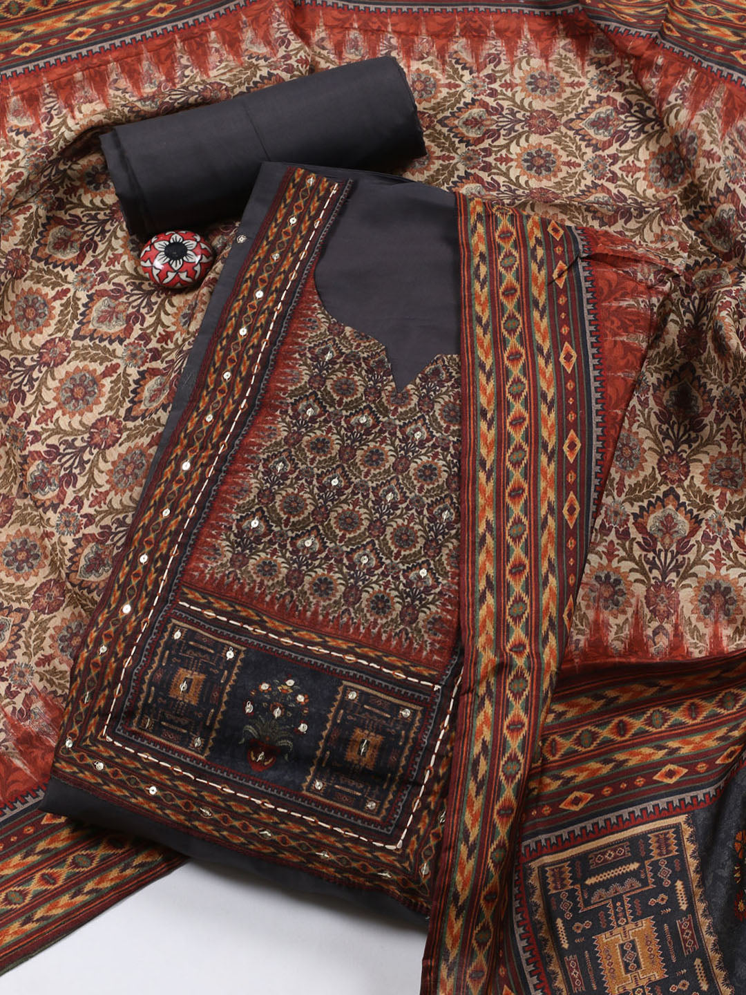 Printed Chanderi Unstitched Suit Piece With Dupatta