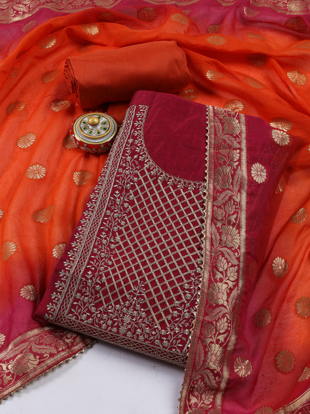 Woven Chanderi Unstitched Suit Piece With Dupatta