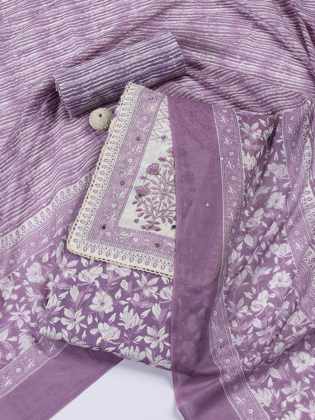 Printed Cotton Blend Unstitched Suit With Dupatta