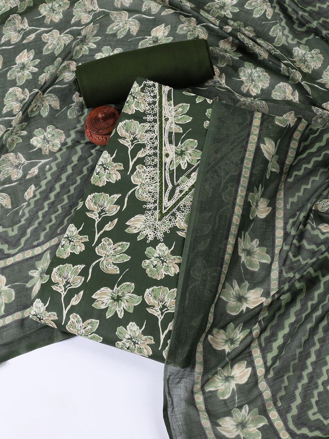 Printed Cotton Blend Unstitched Suit With Dupatta