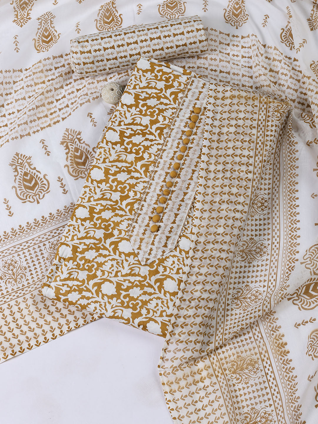 Printed Cotton Blend Unstitched Suit With Dupatta