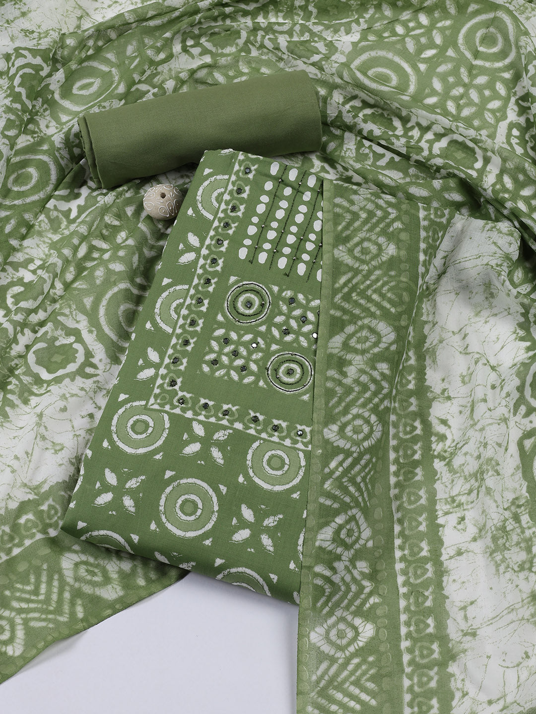 Printed Cotton Blend Unstitched Suit With Dupatta