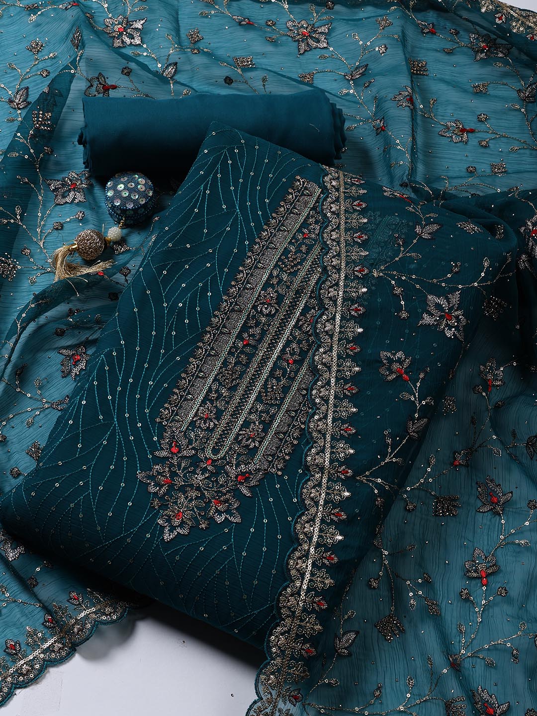 Embroidered Organza Unstitched Suit Piece With Dupatta