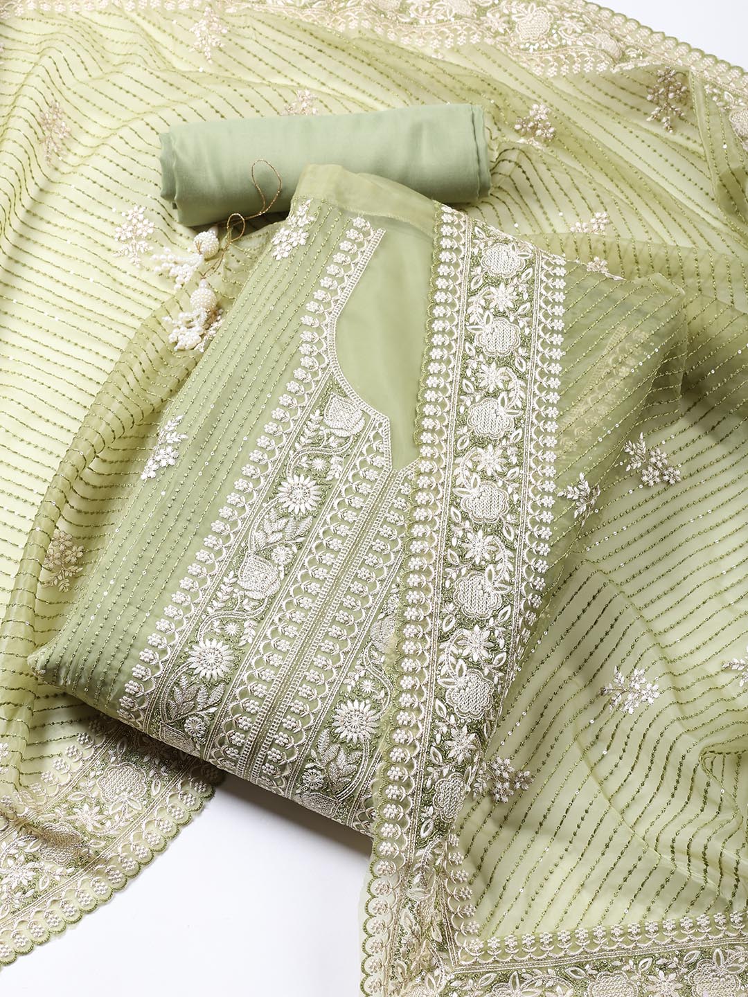 Embroidered Organza Unstitched Suit Piece With Dupatta