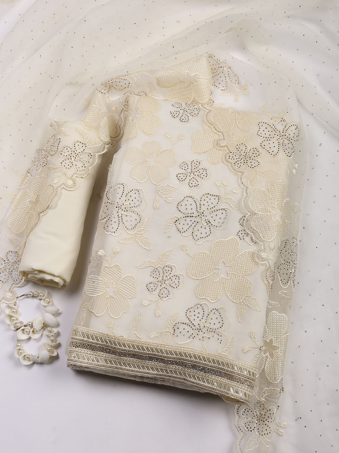 Neck Embroidered Organza Unstitched Suit With Dupatta