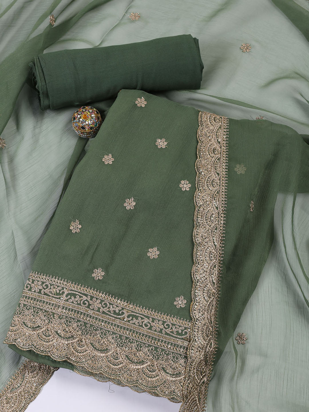 Neck Embroidered Tissue Unstitched Suit With Dupatta