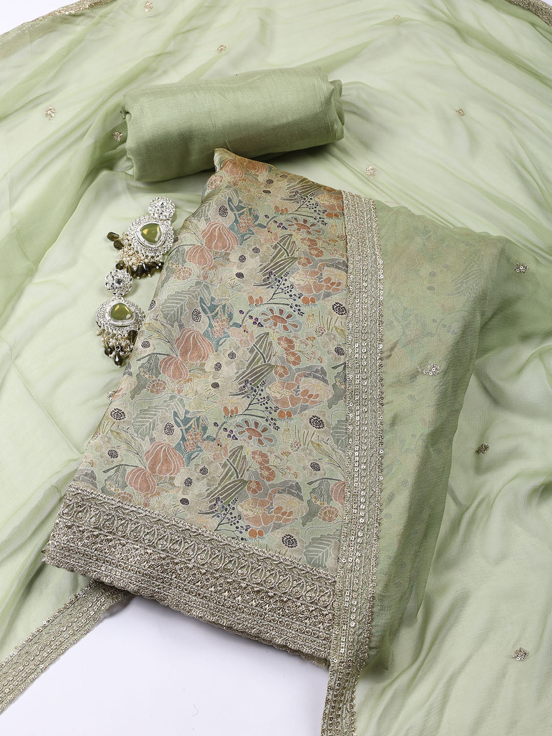 Neck Embroidered Tissue Unstitched Suit With Dupatta