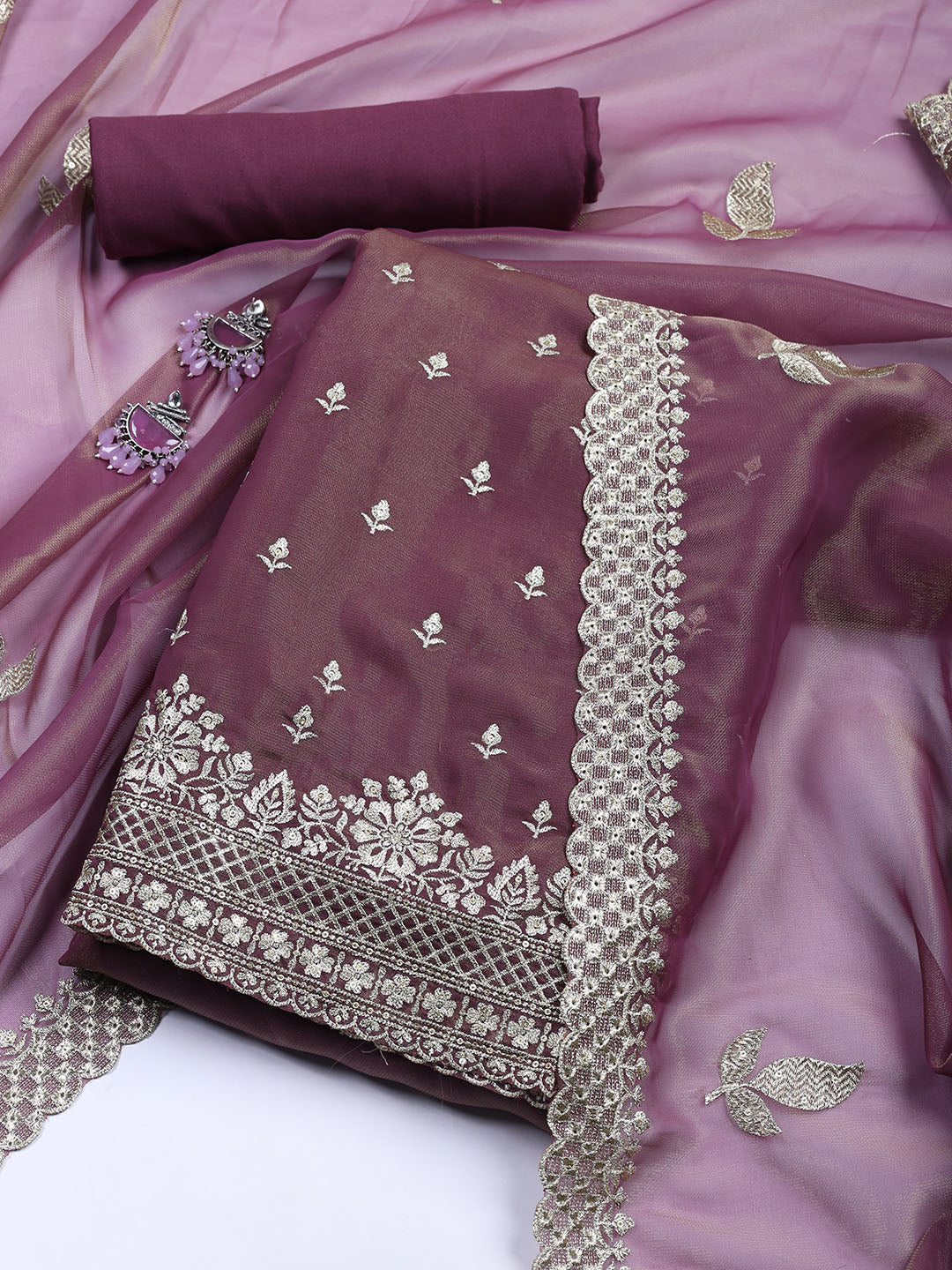 Neck Embroidered Tissue Unstitched Suit With Dupatta