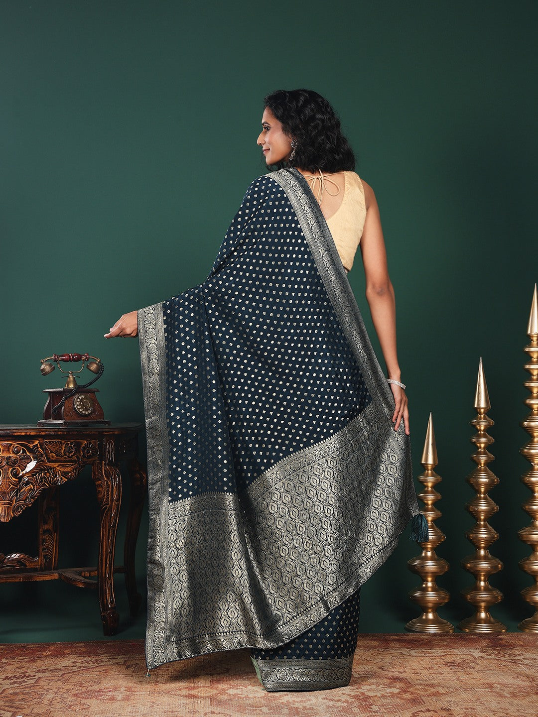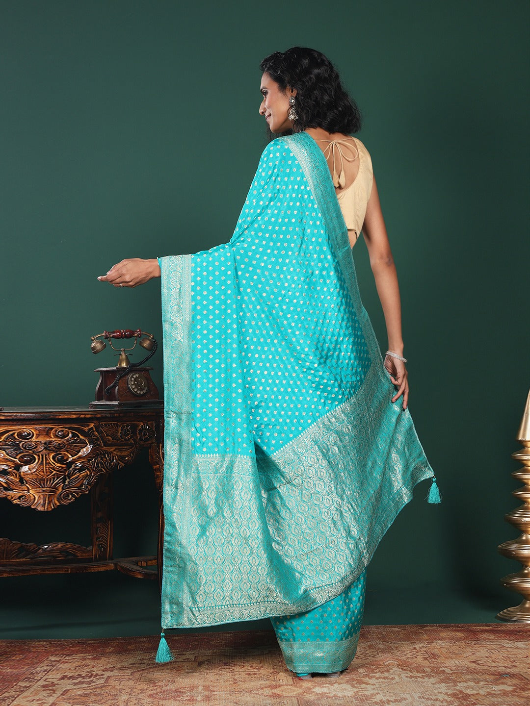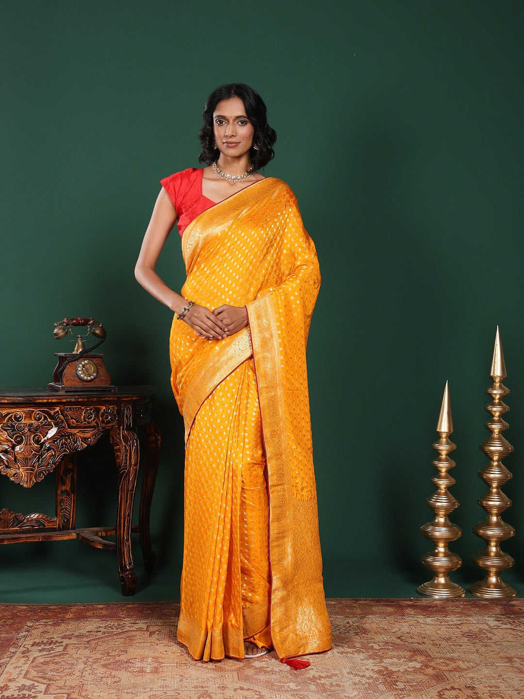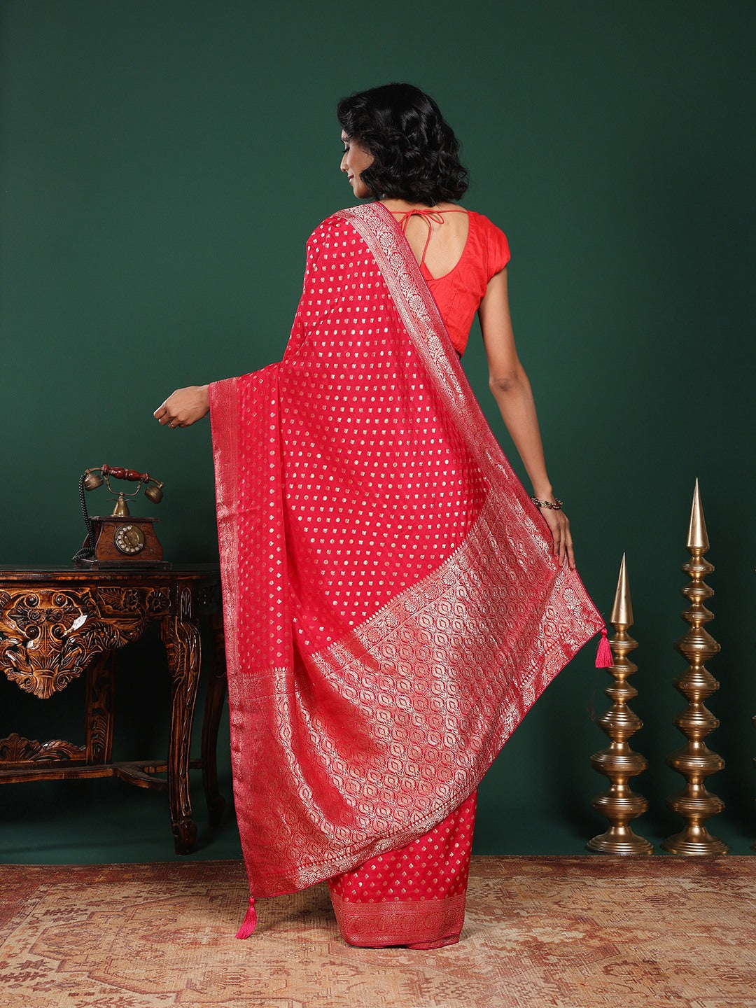 Note: The blouse shown in the pictures is just for Photoshoot purposes. The blouse you will get will be an attached running blouse.
