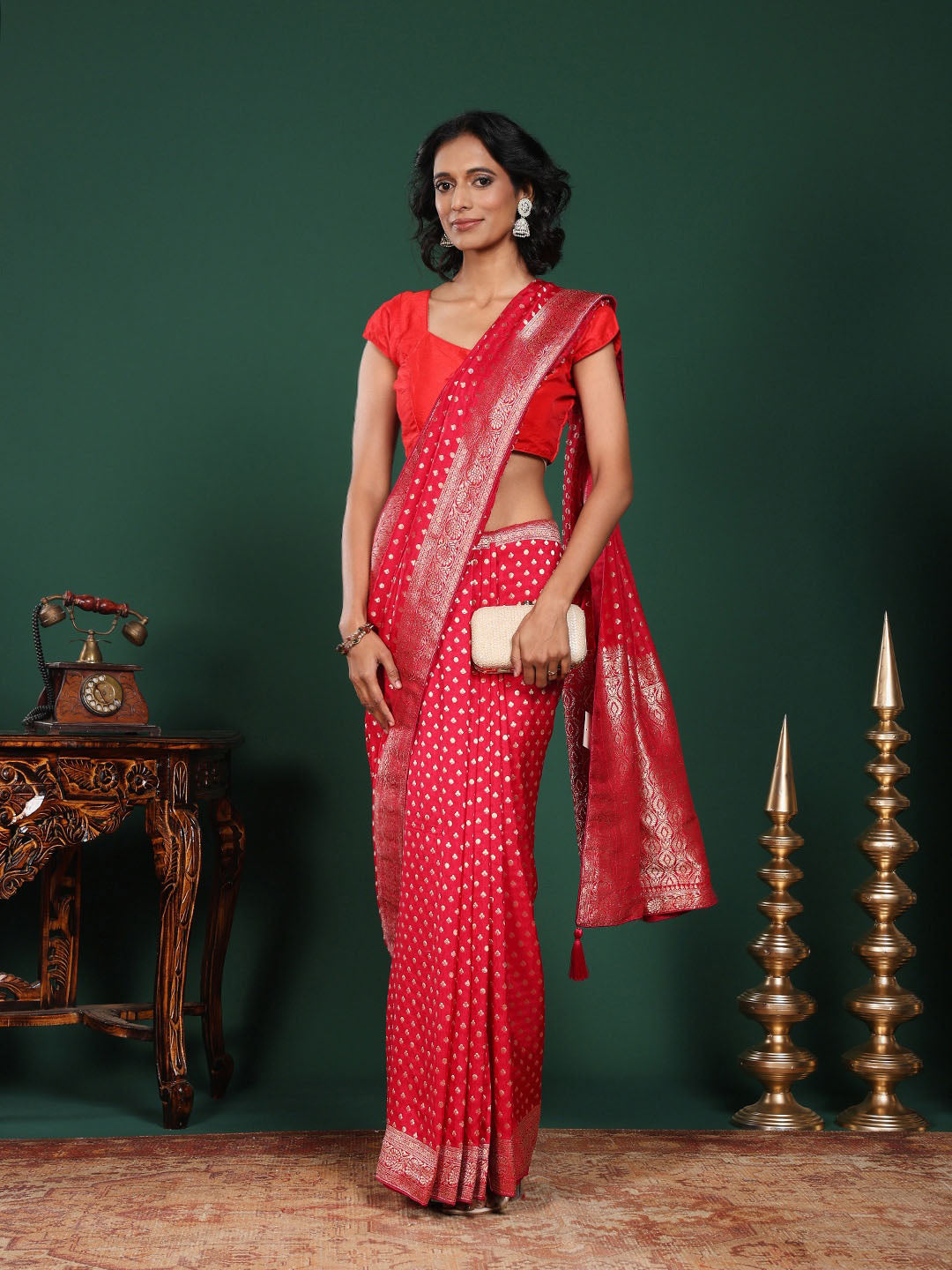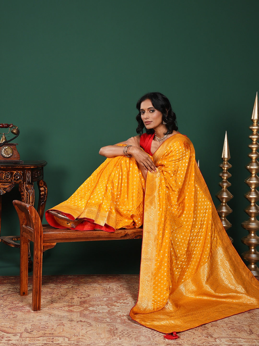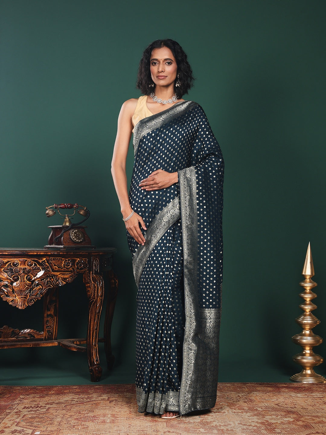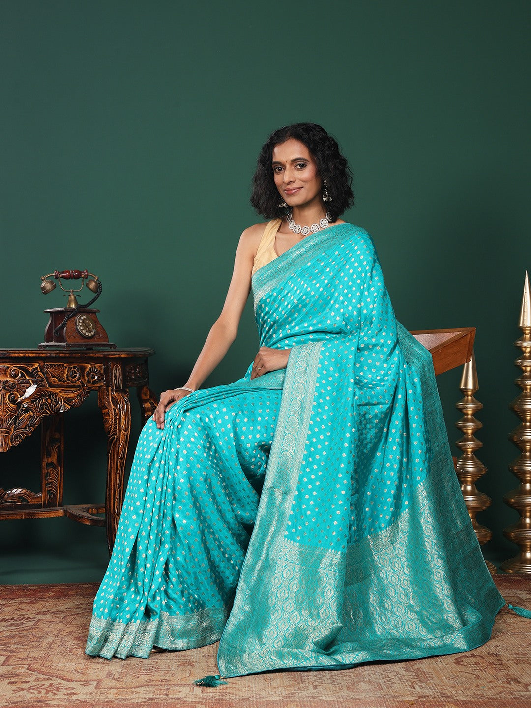 Note: The blouse shown in the pictures is just for Photoshoot purposes. The blouse you will get will be an attached running blouse.