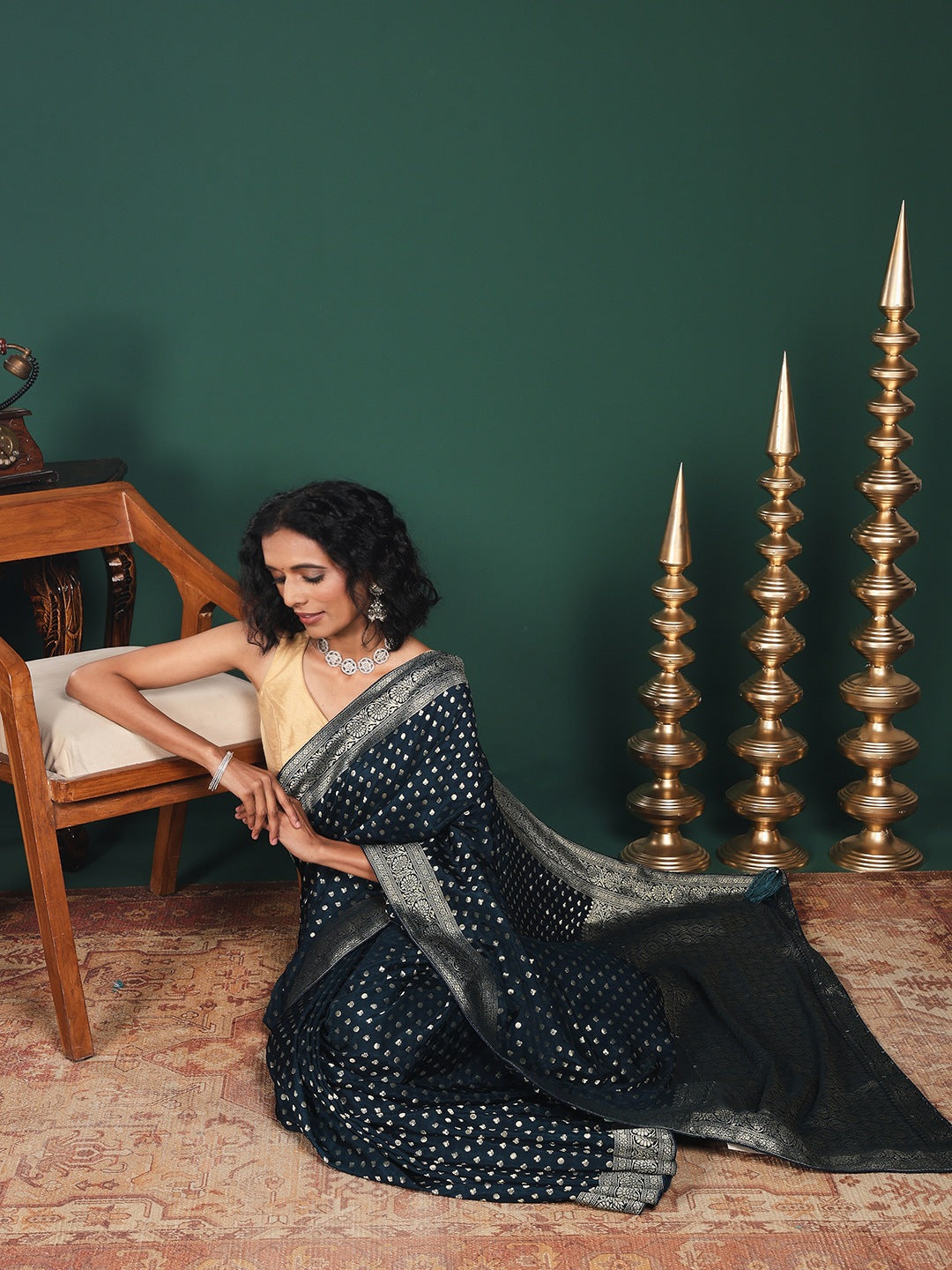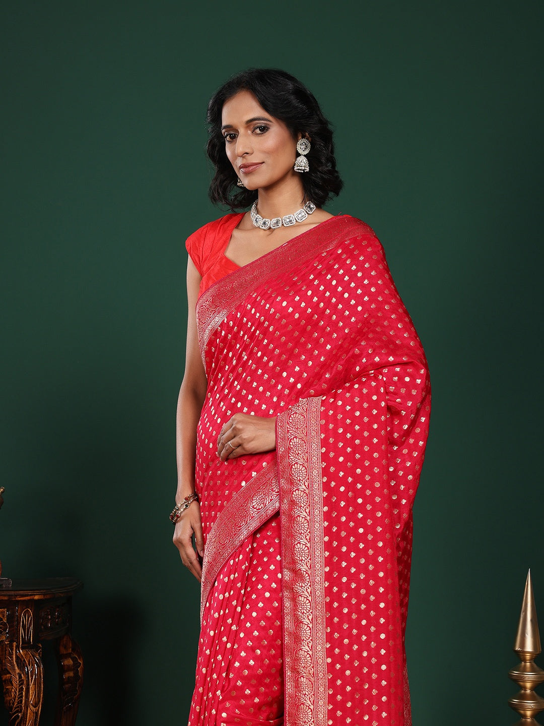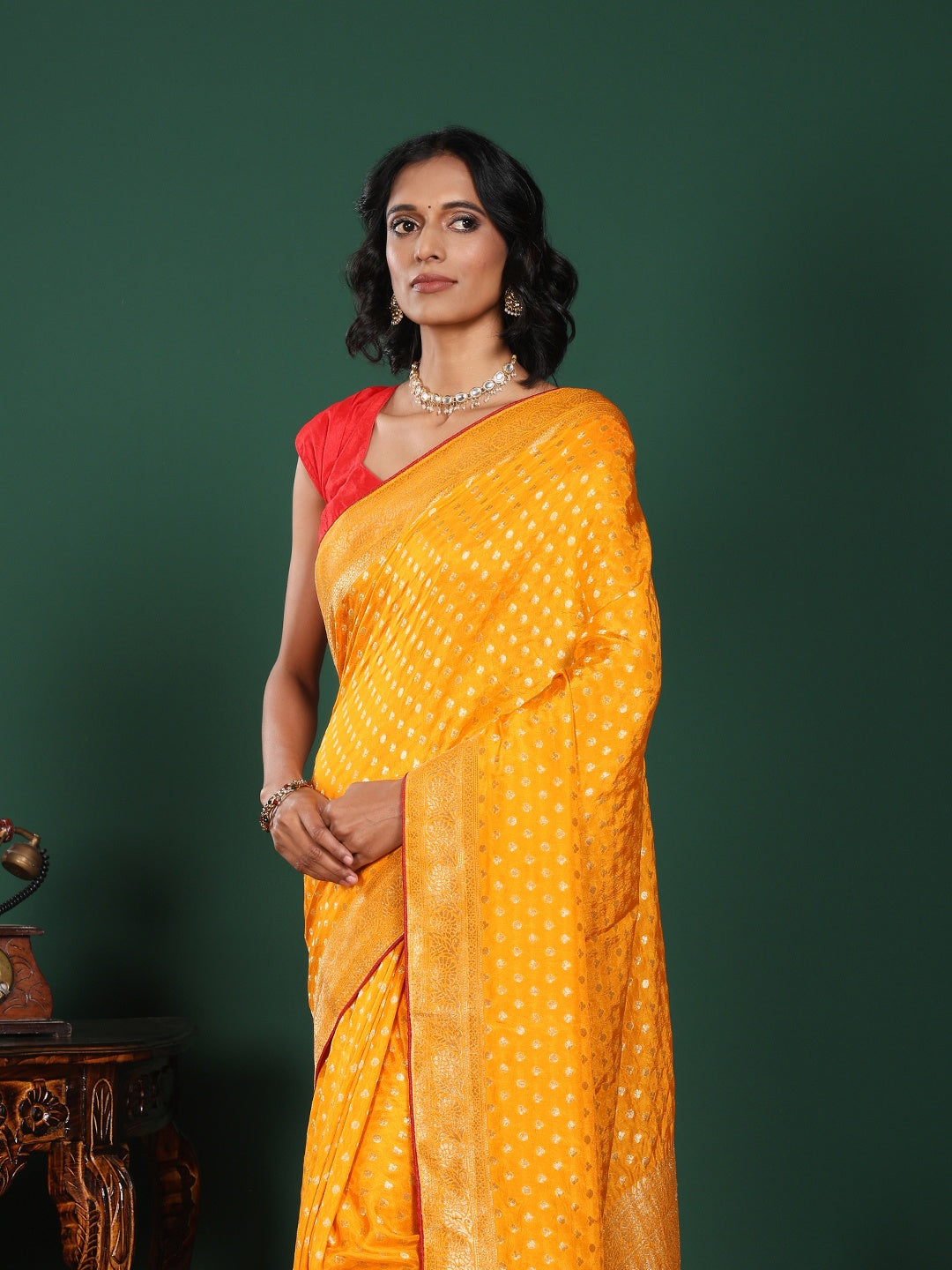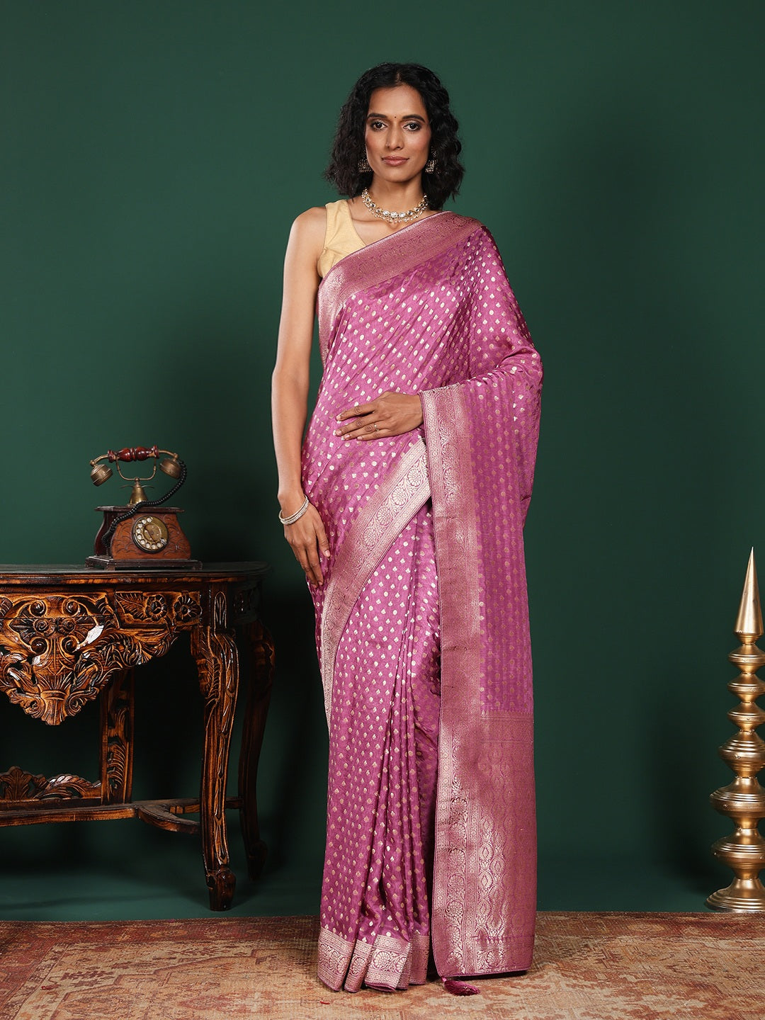 Note: The blouse shown in the pictures is just for Photoshoot purposes. The blouse you will get will be an attached running blouse.