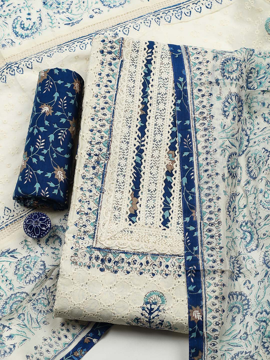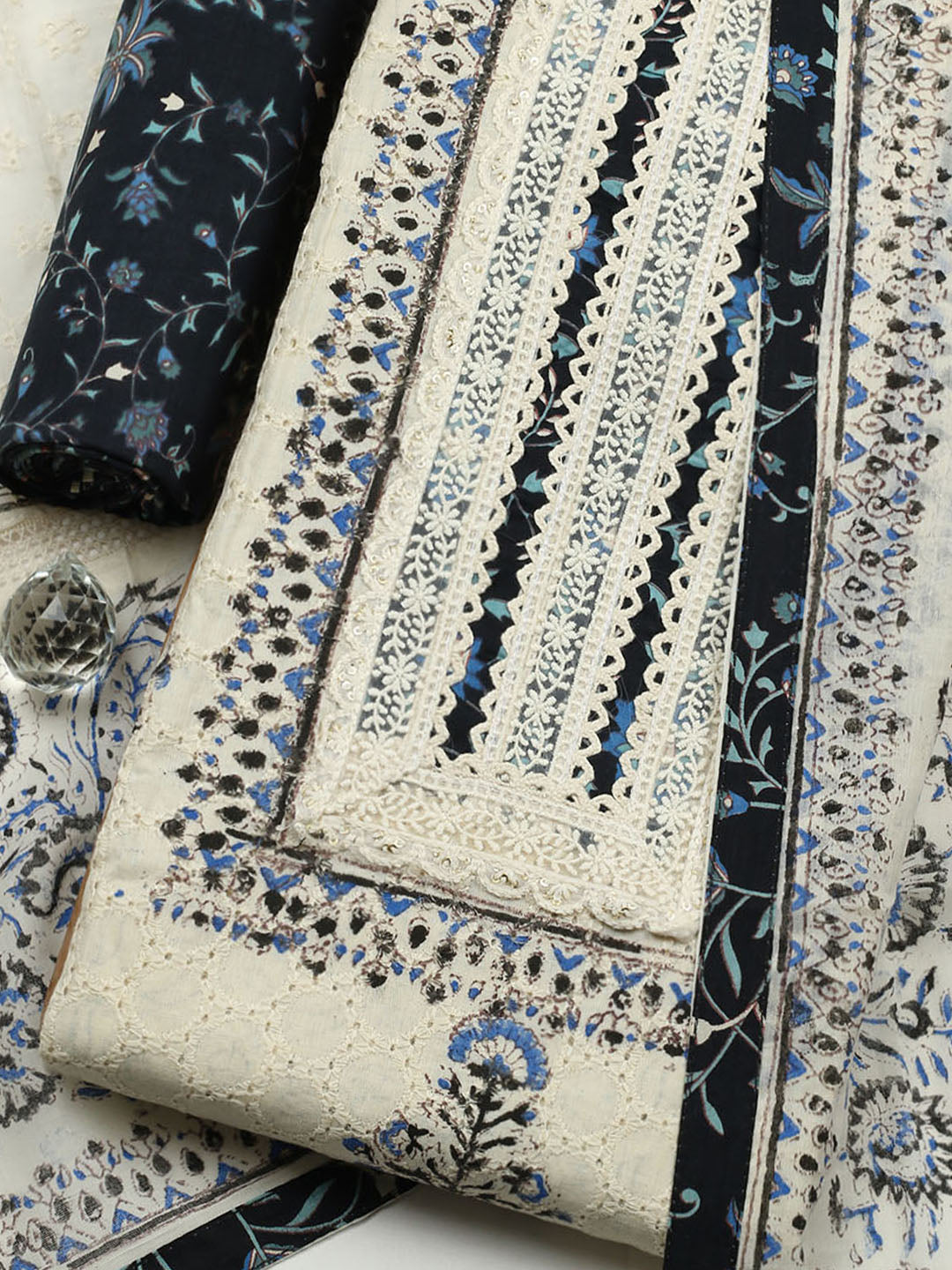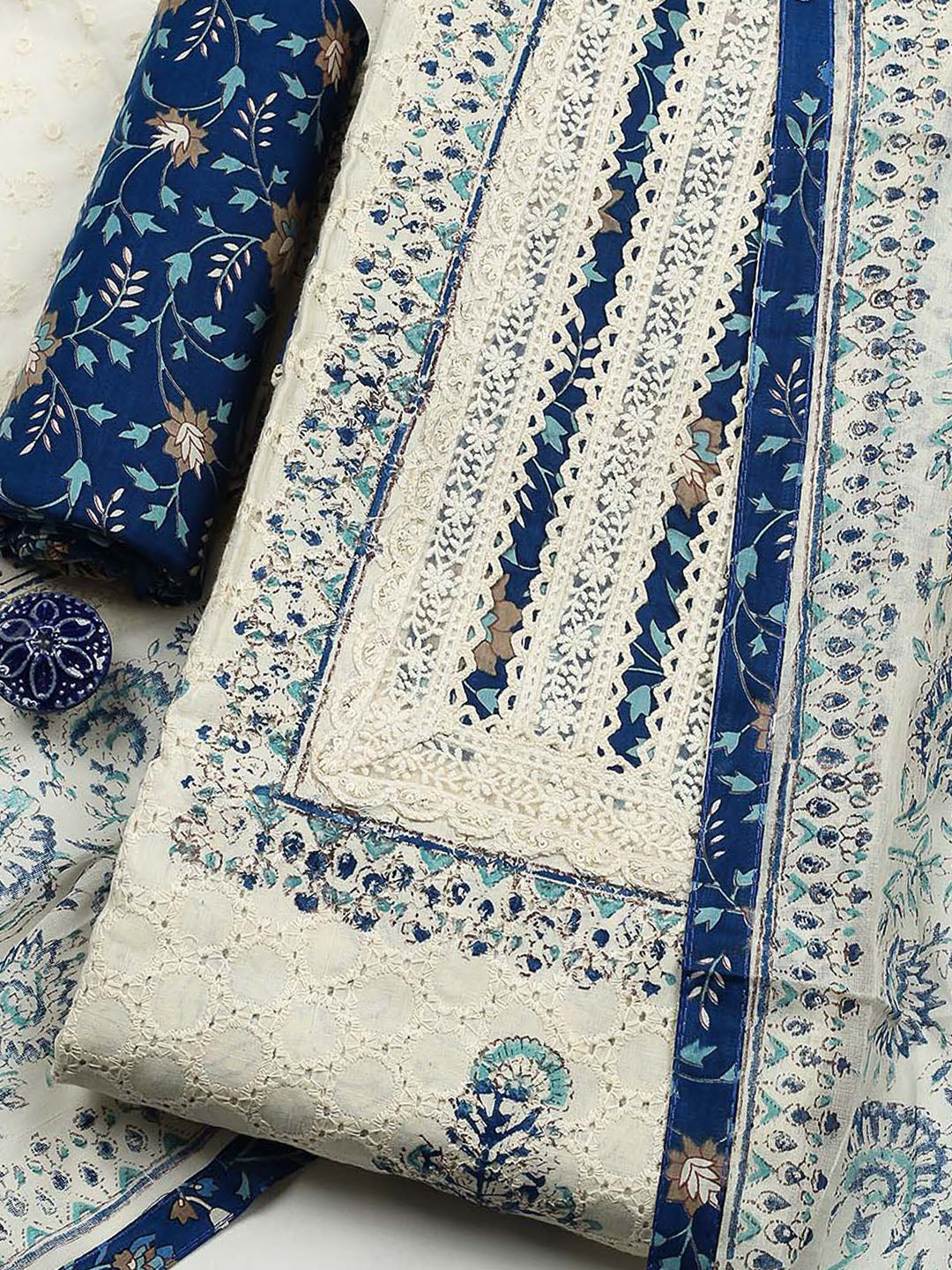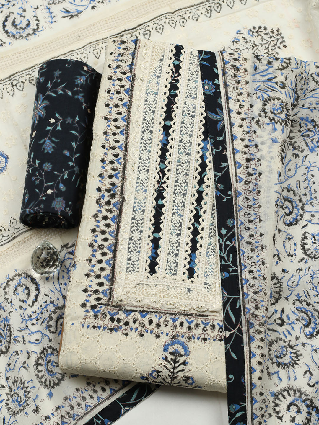 Printed Cotton Blend Unstitched Suit With Pant & Dupatta