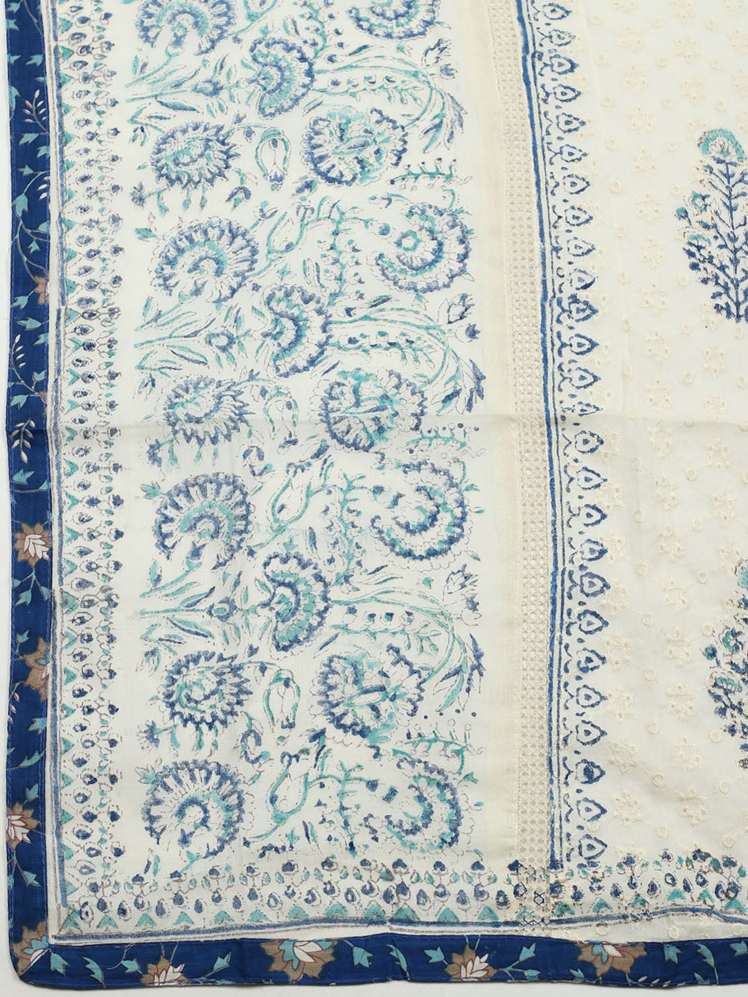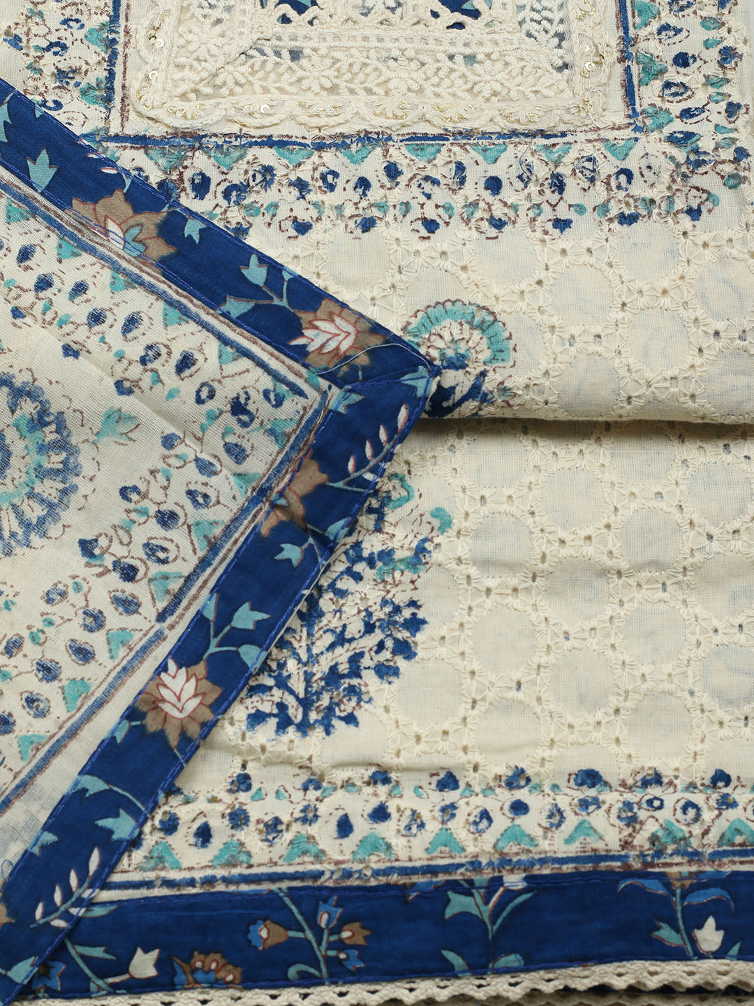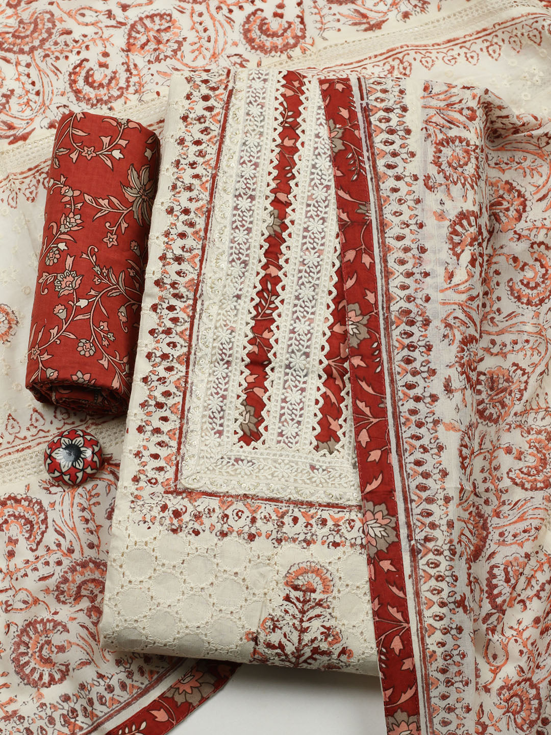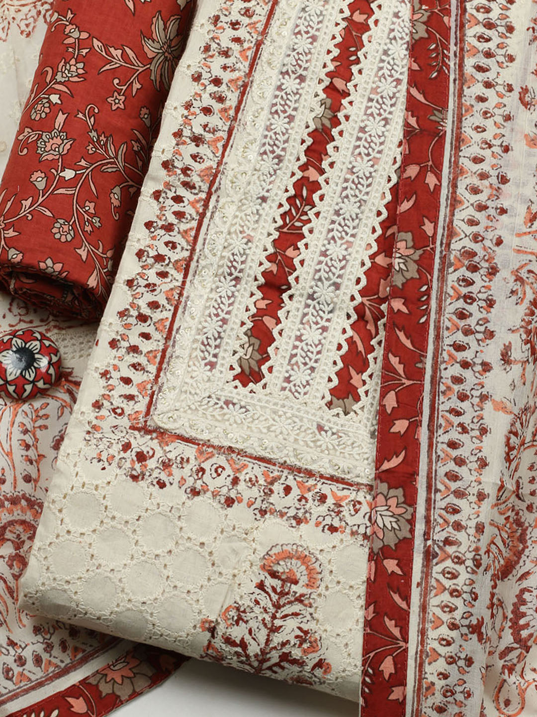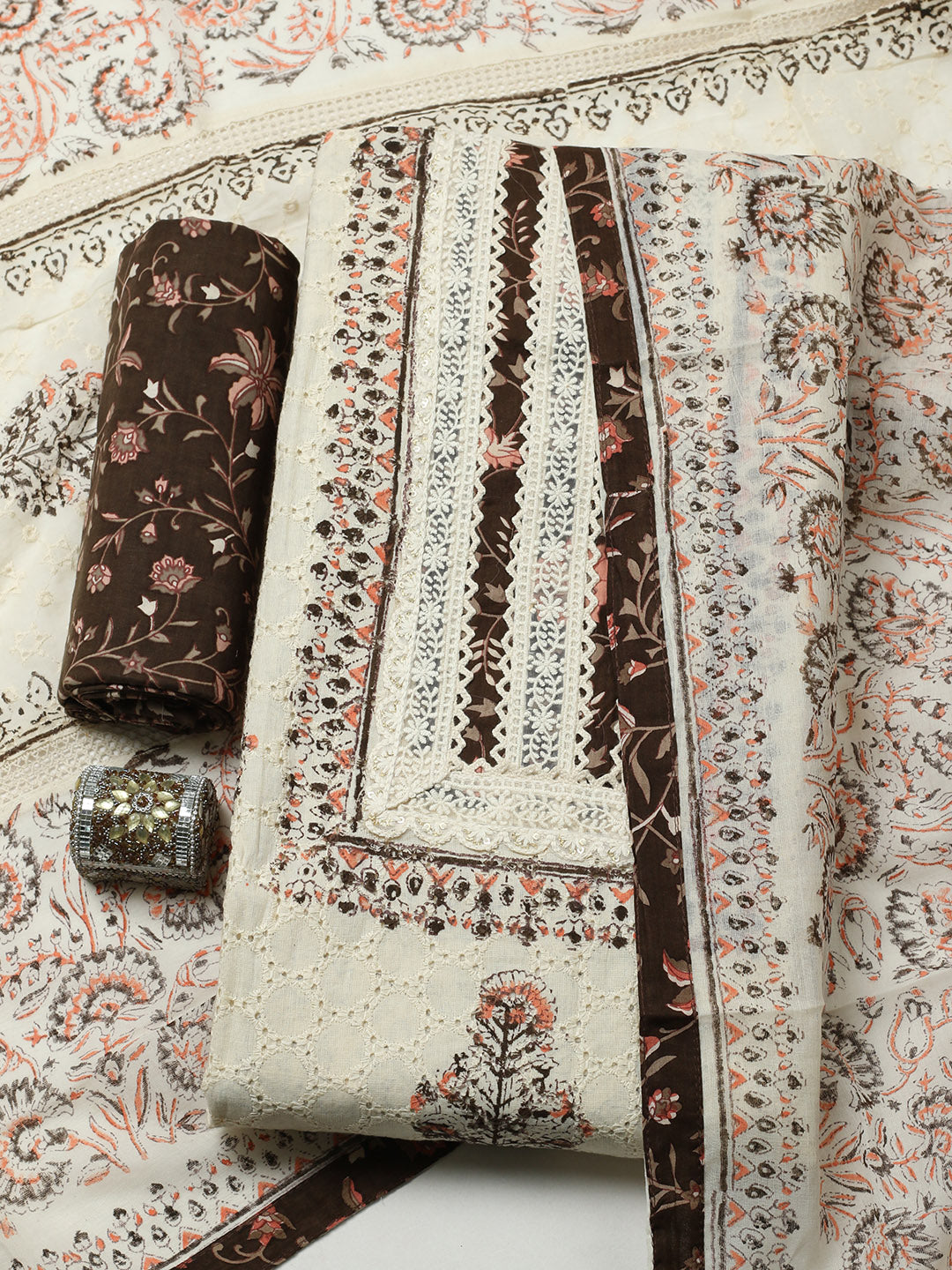 Printed Cotton Blend Unstitched Suit With Pant & Dupatta