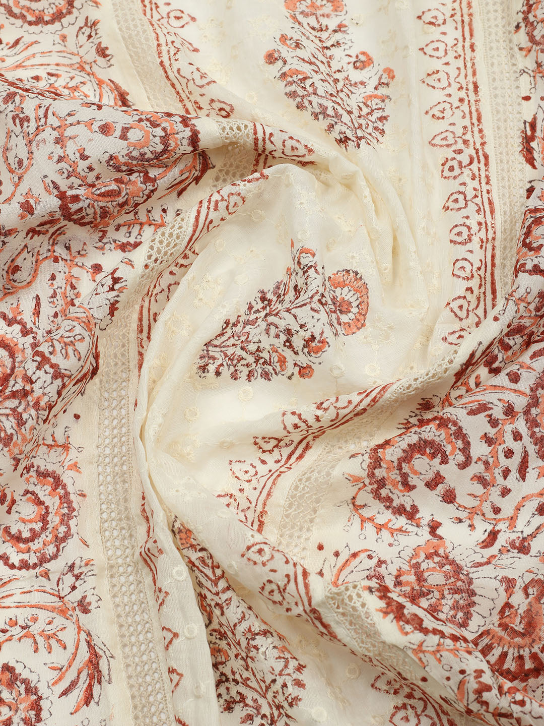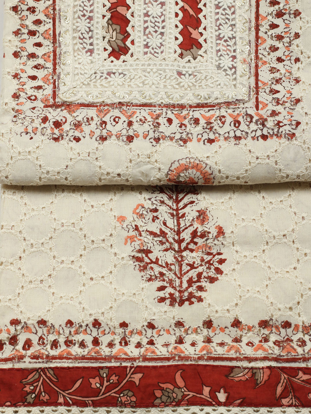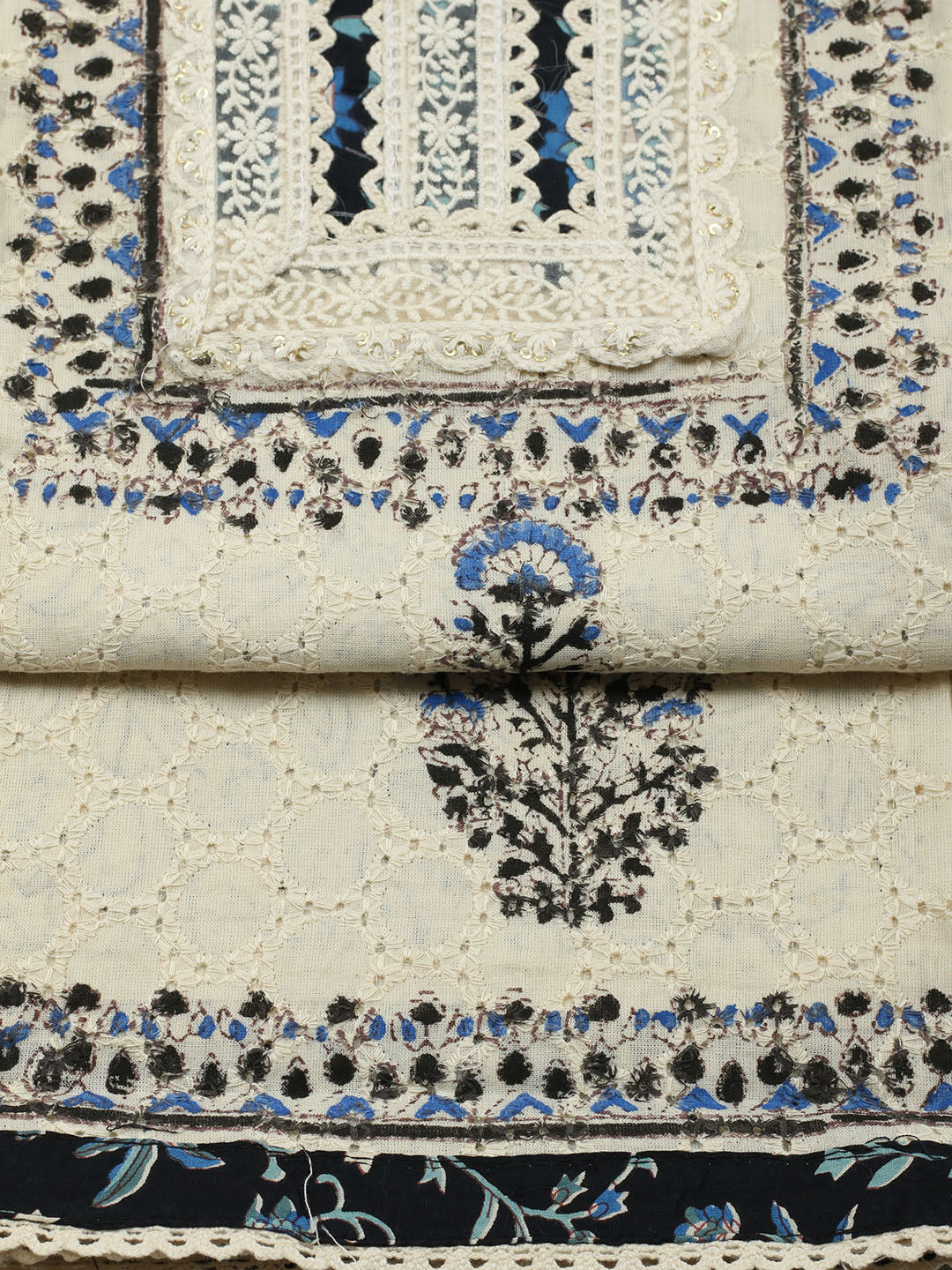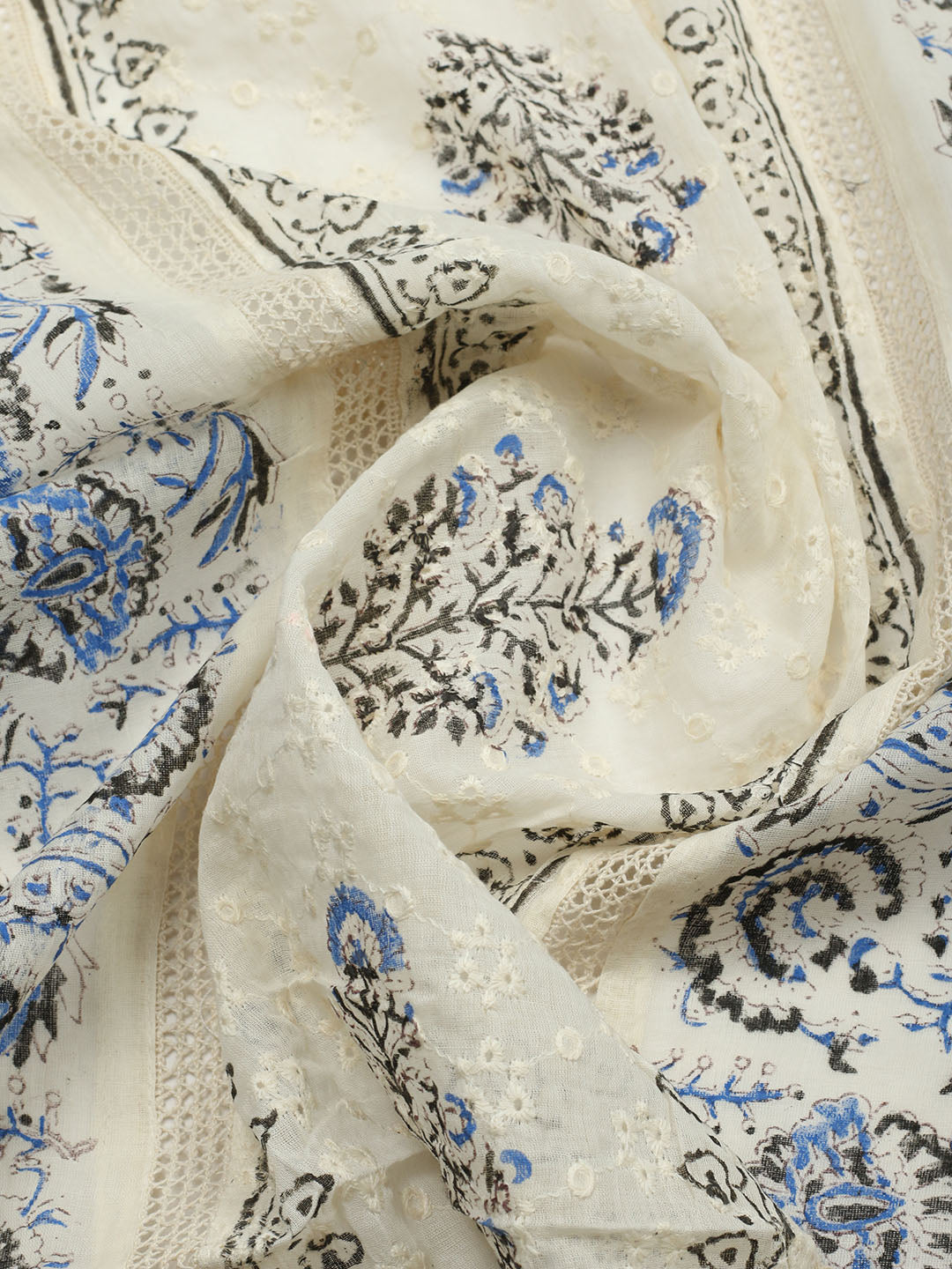Printed Cotton Blend Unstitched Suit With Pant & Dupatta