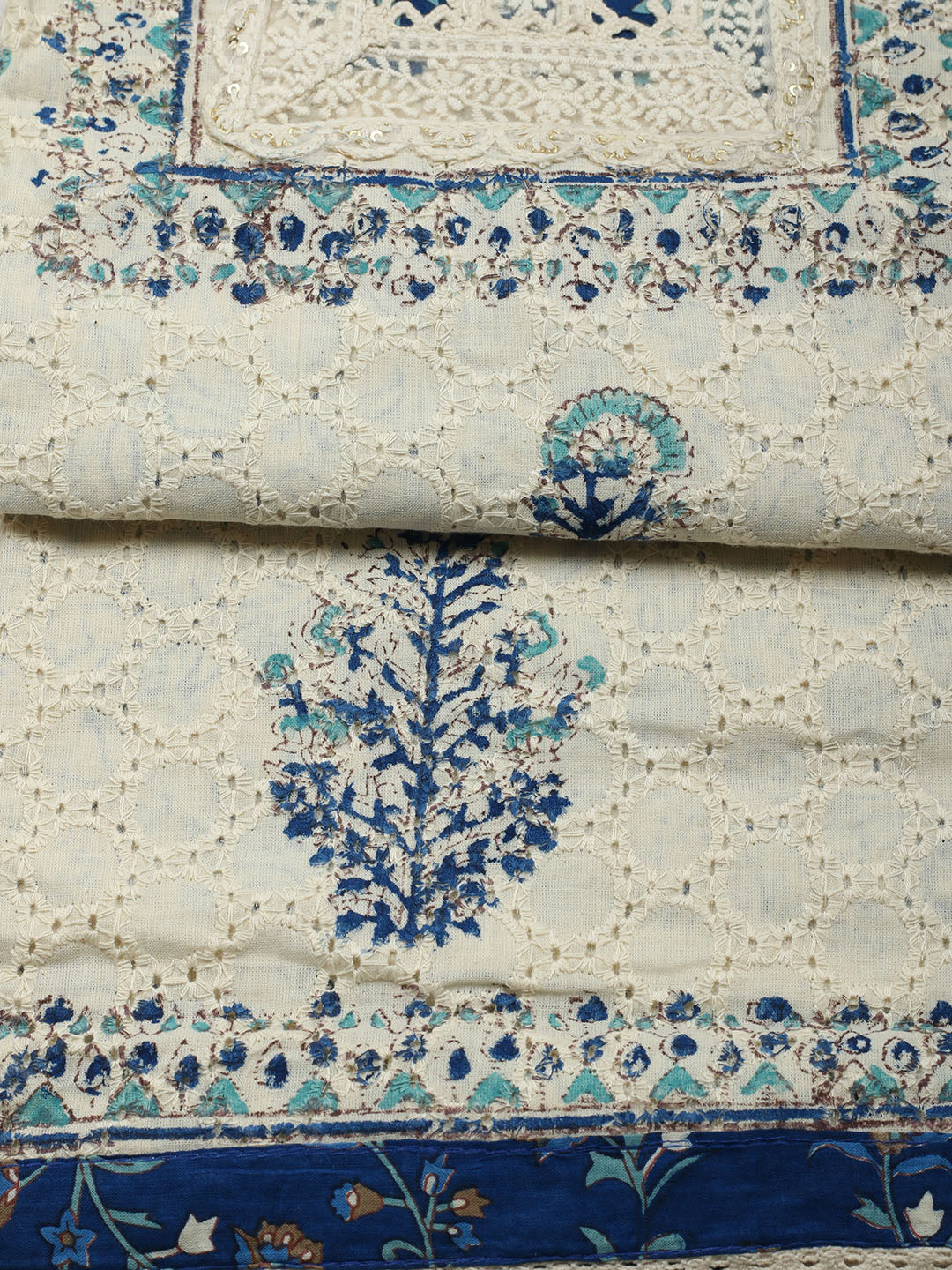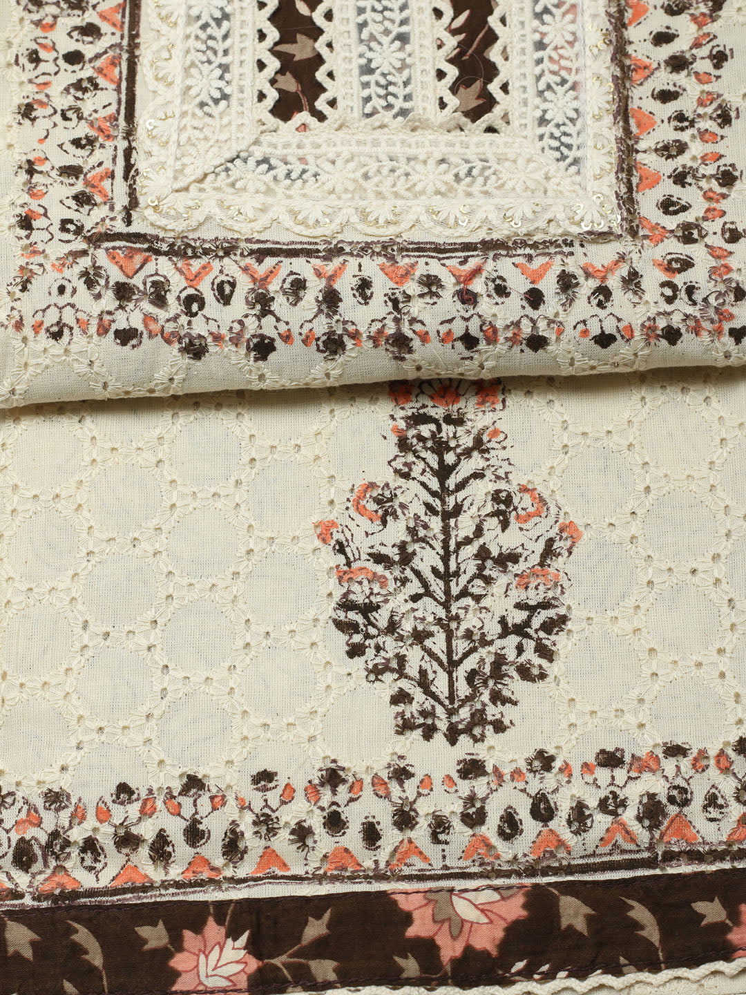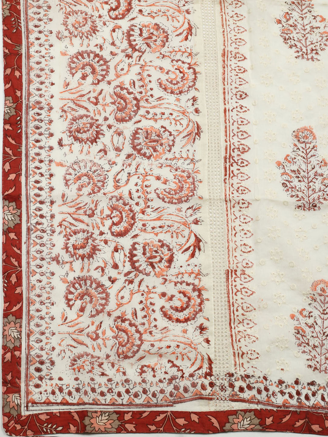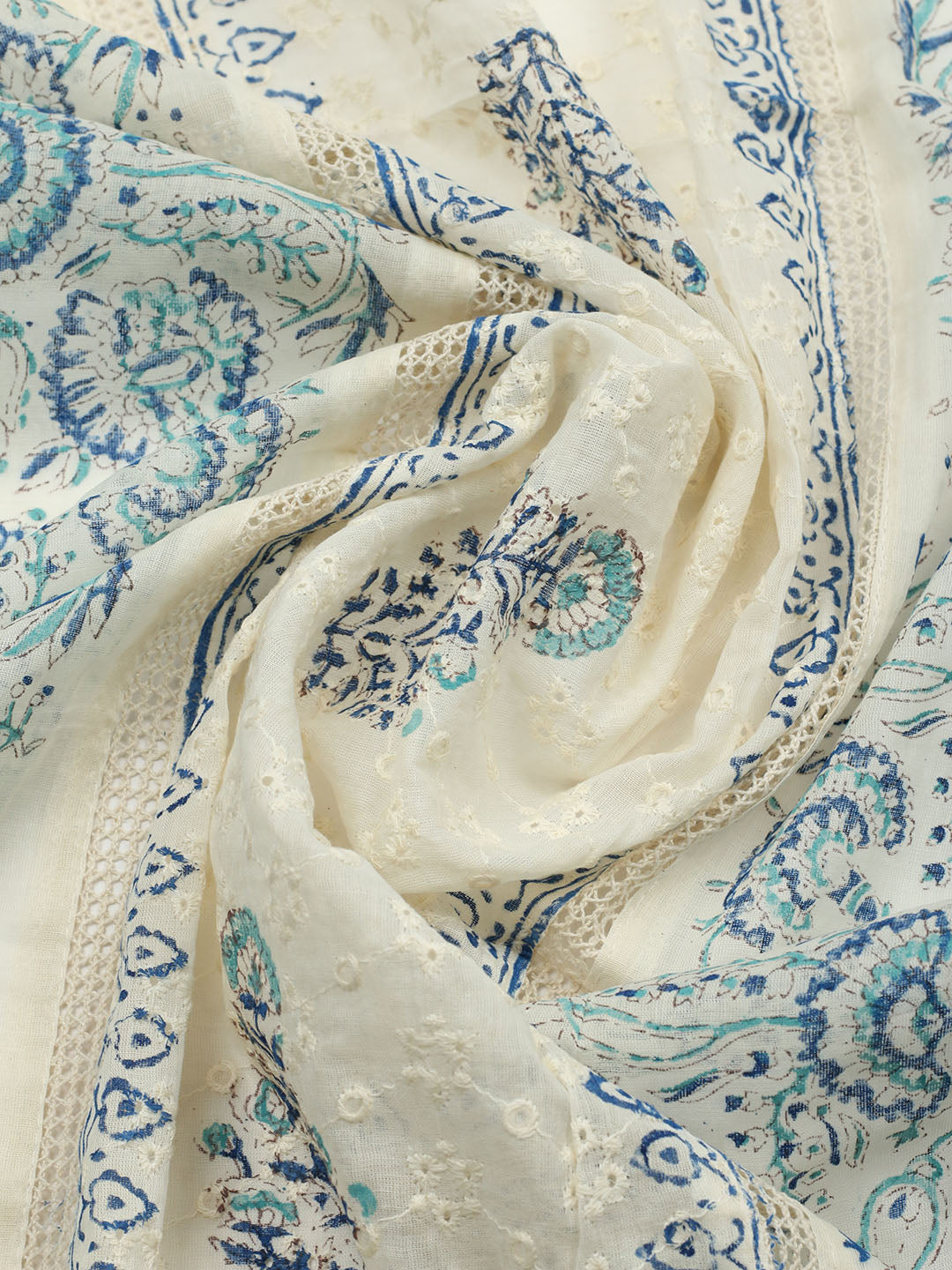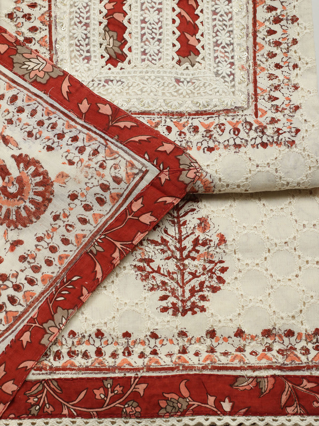 Printed Cotton Blend Unstitched Suit With Pant & Dupatta