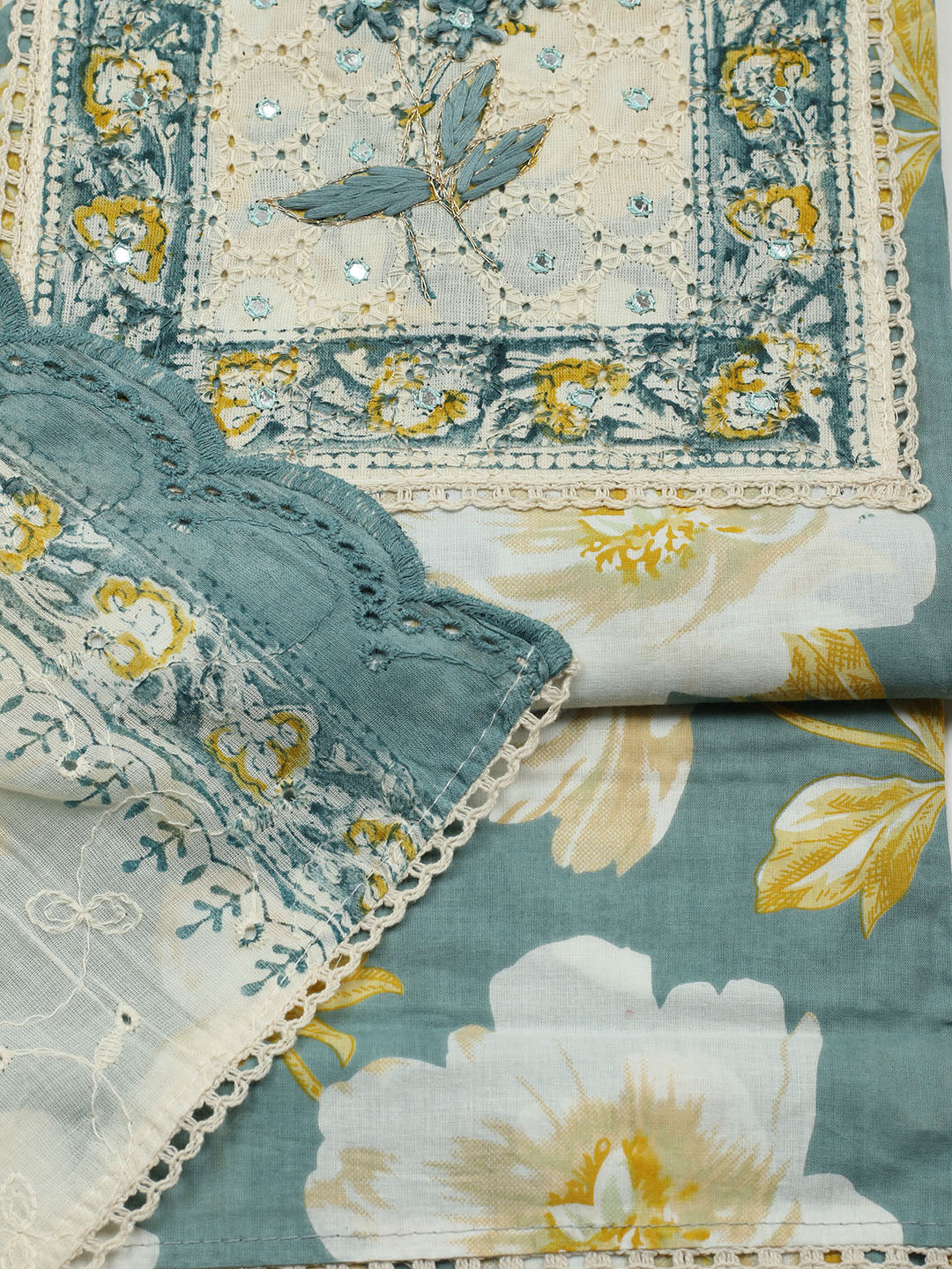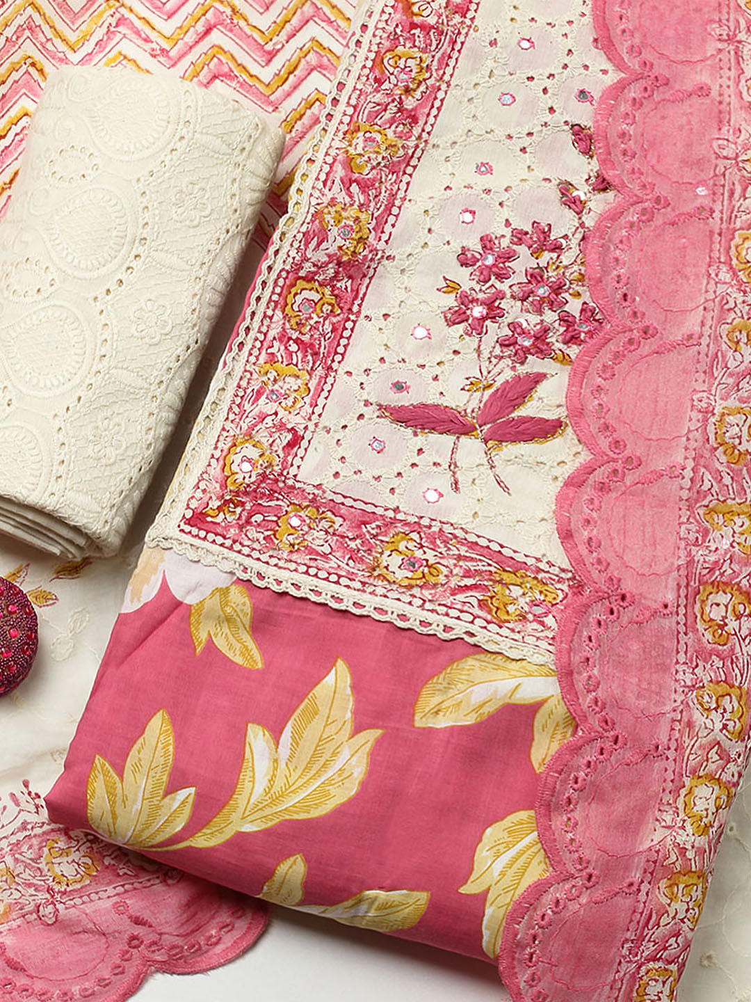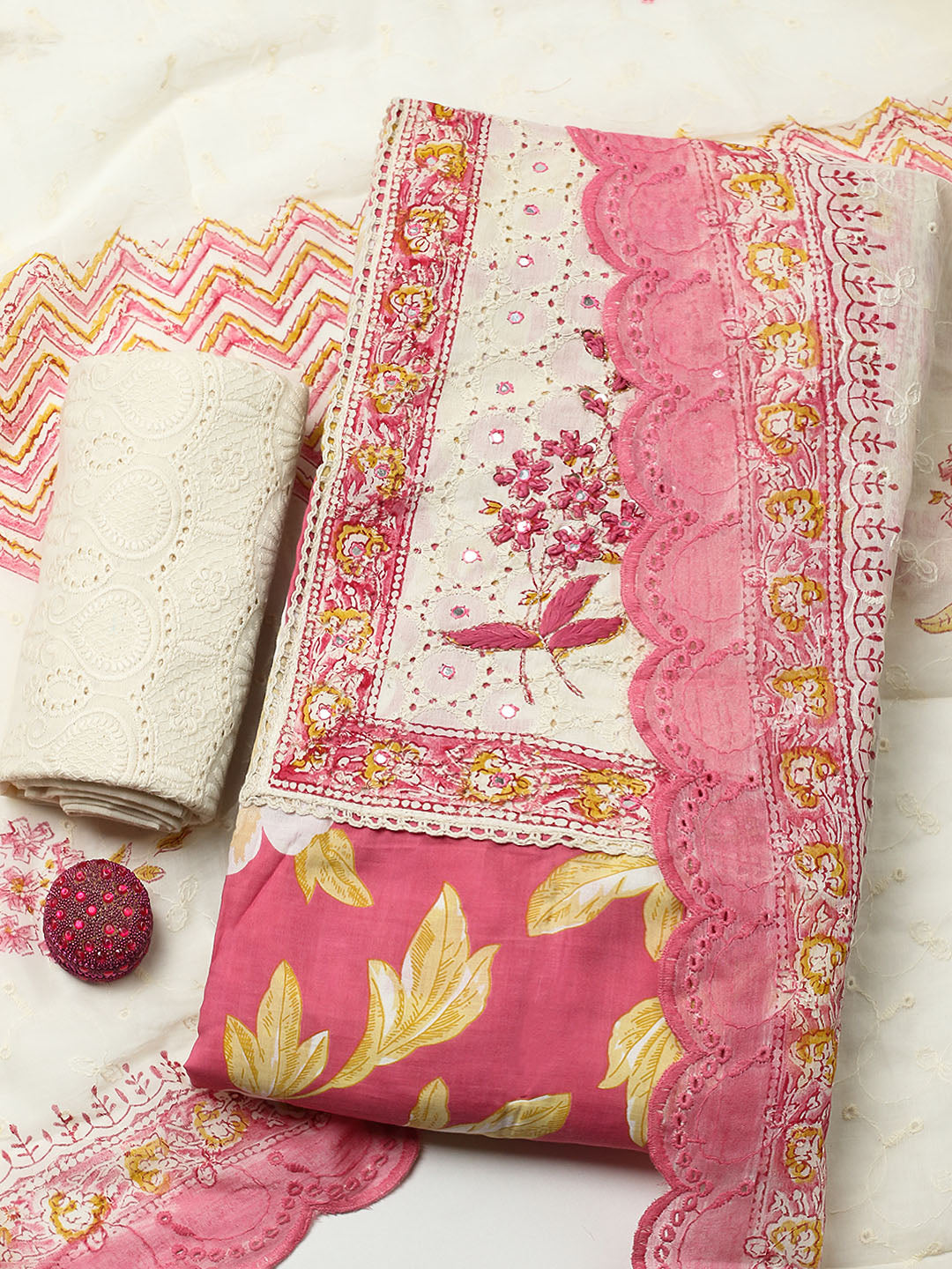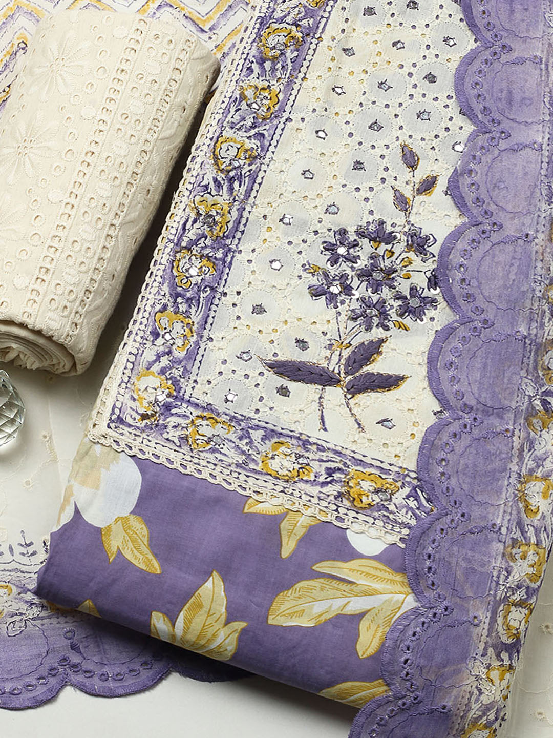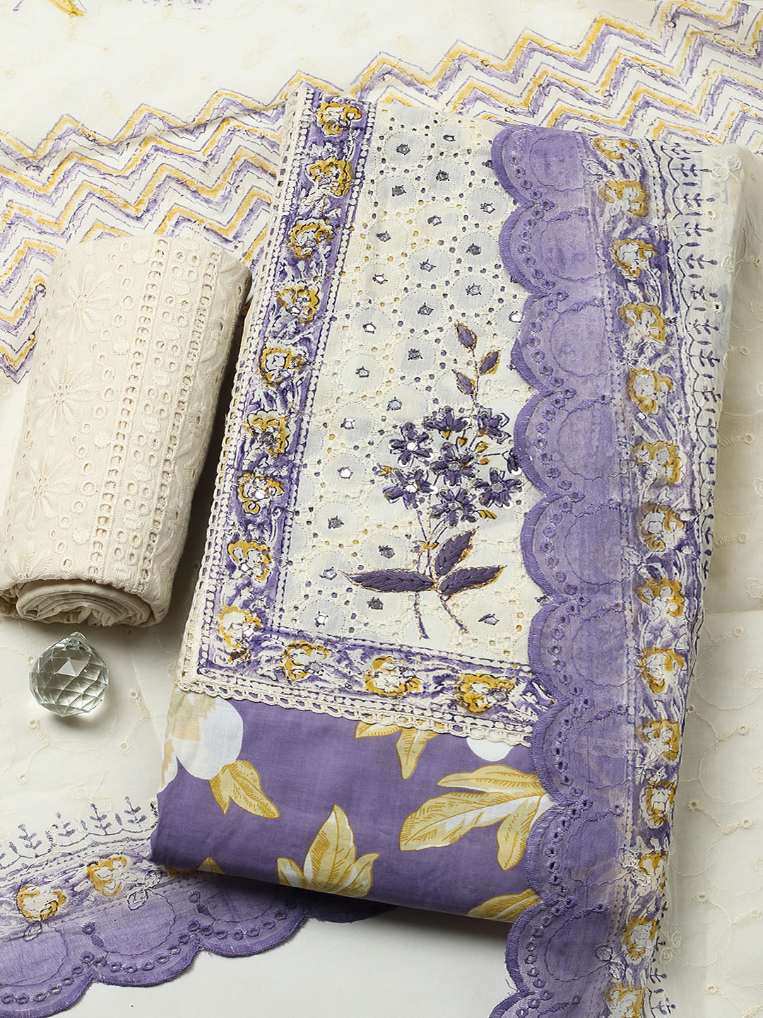 Printed Cotton Blend Unstitched Suit With Pant & Dupatta