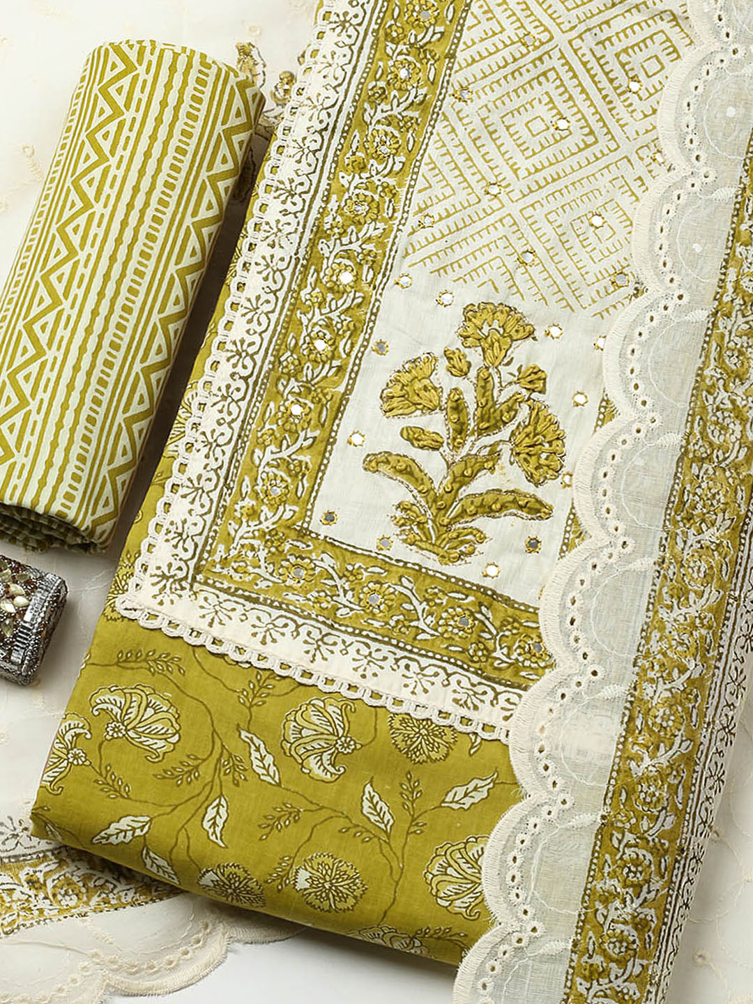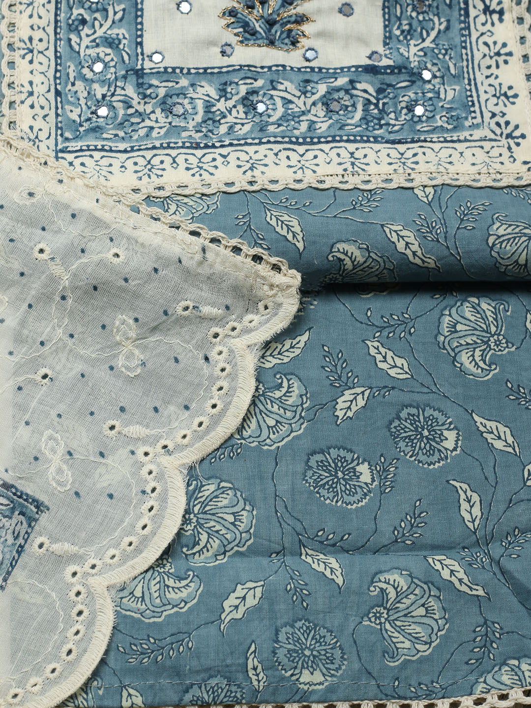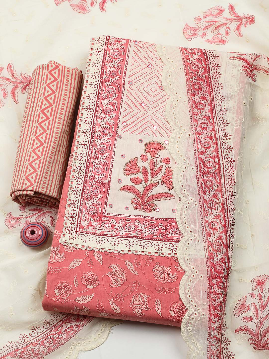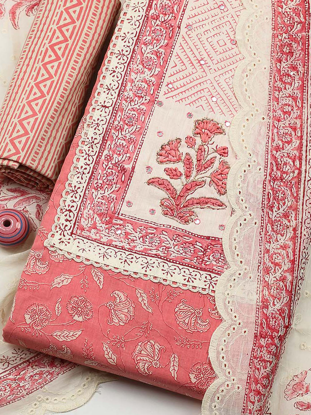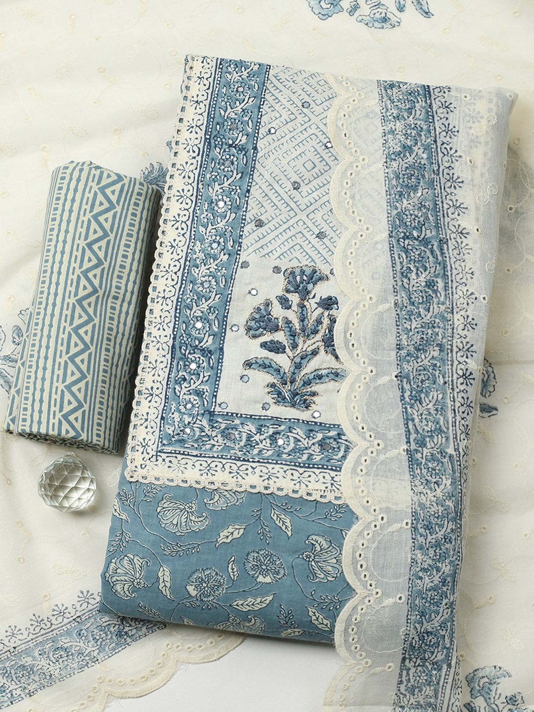 Printed Cotton Blend Unstitched Suit With Pant & Dupatta