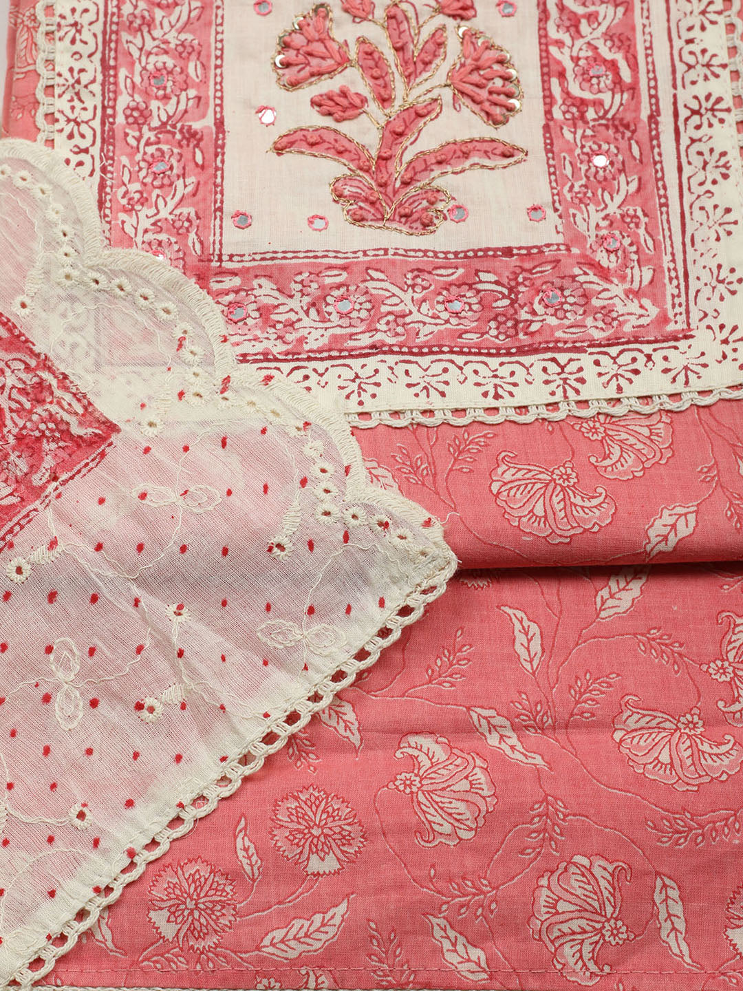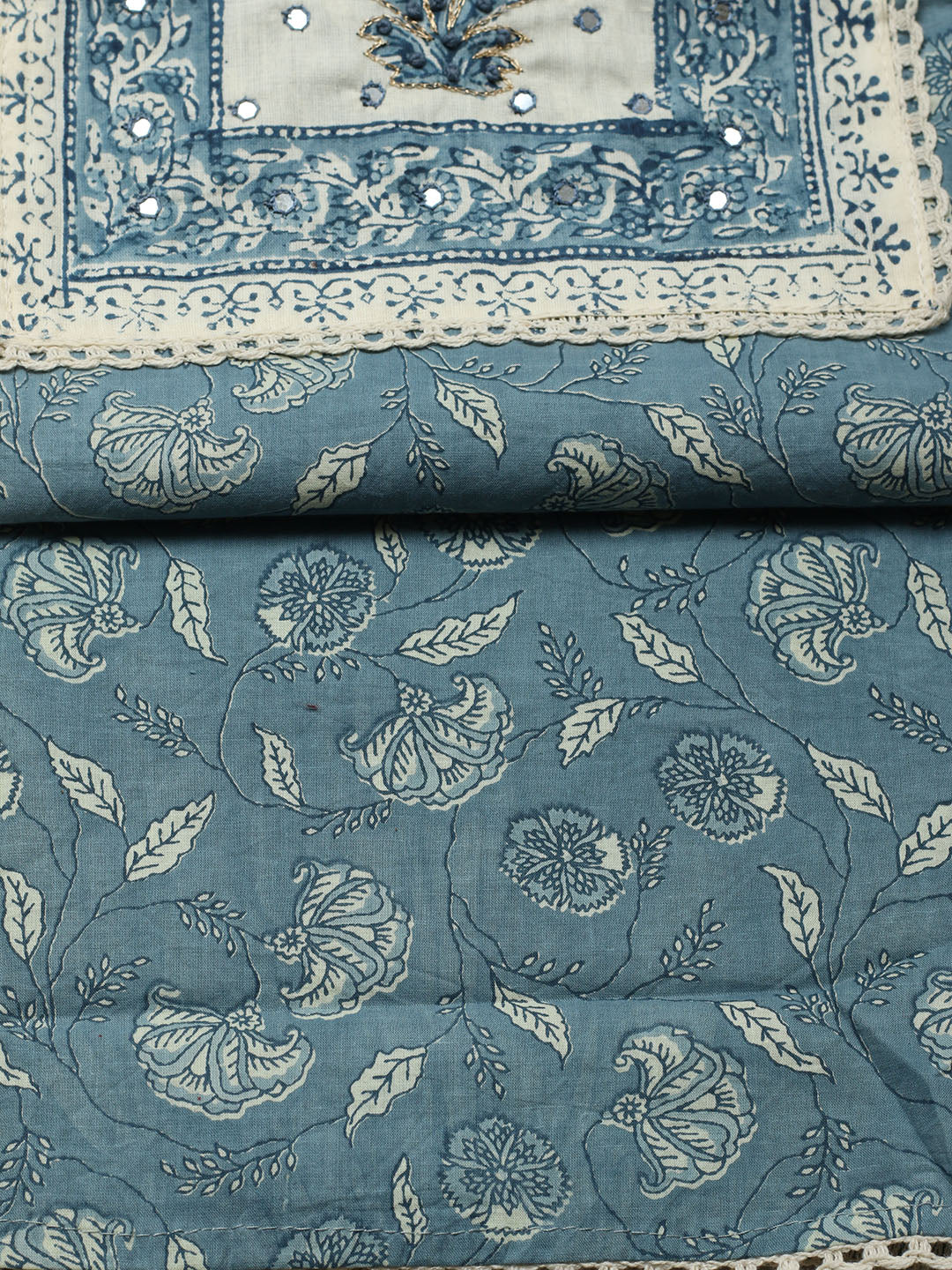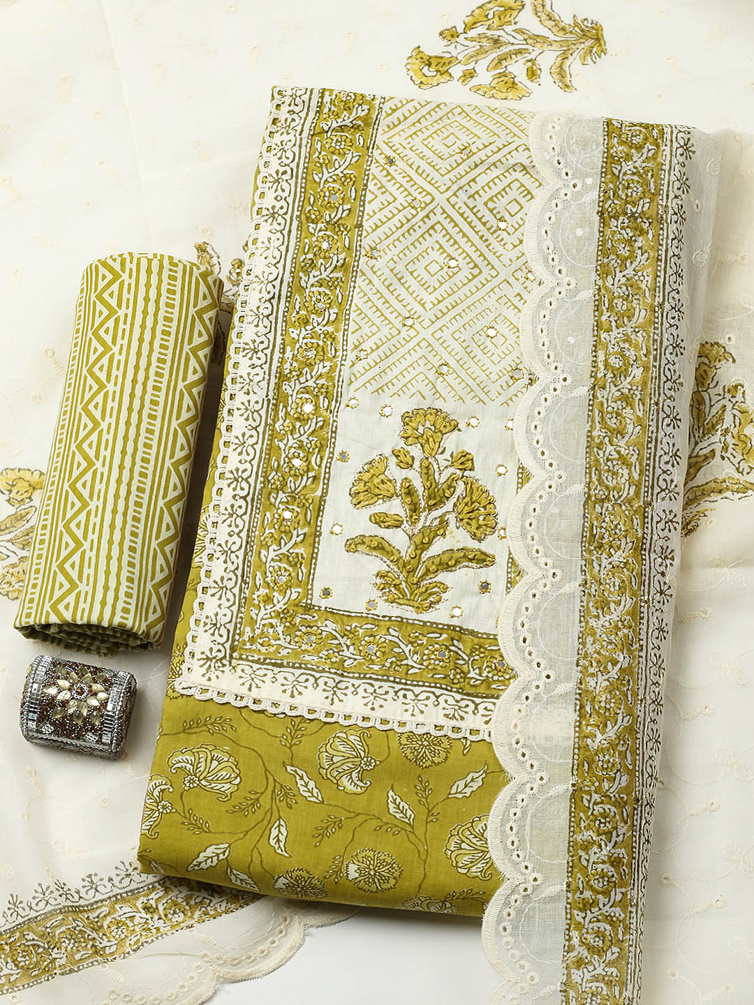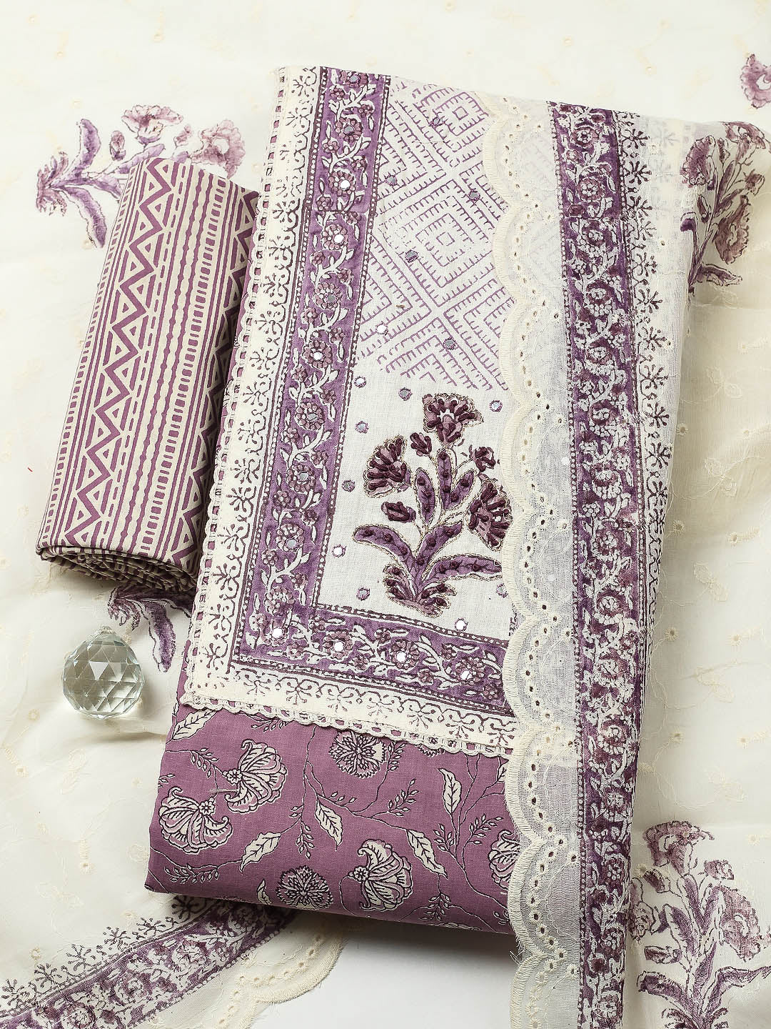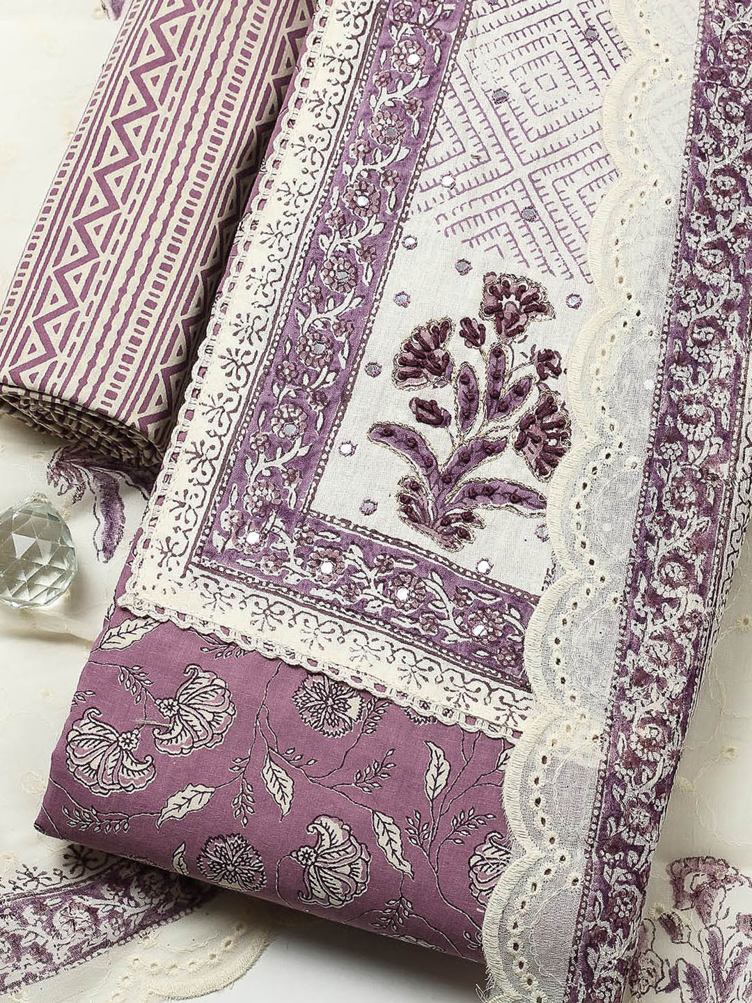 Printed Cotton Blend Unstitched Suit With Pant & Dupatta