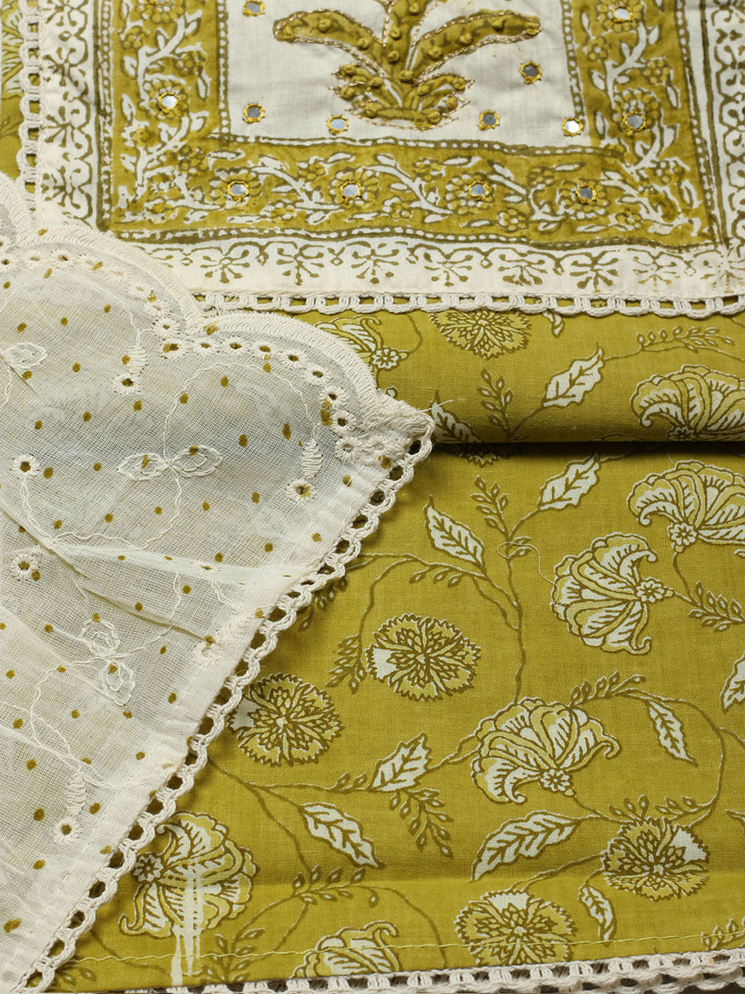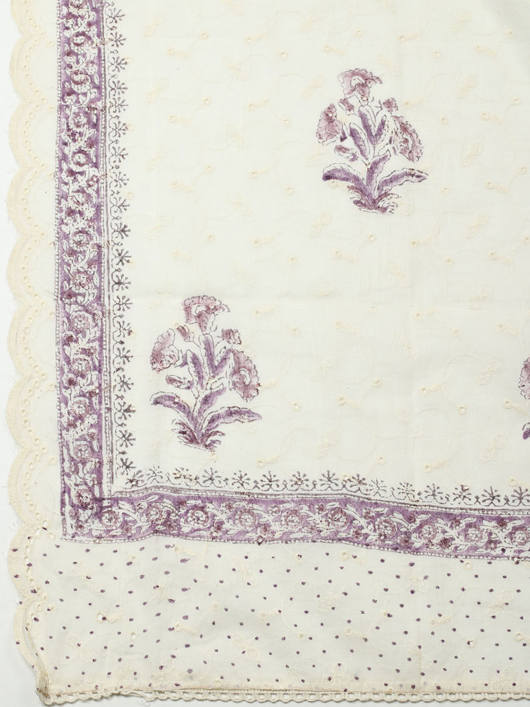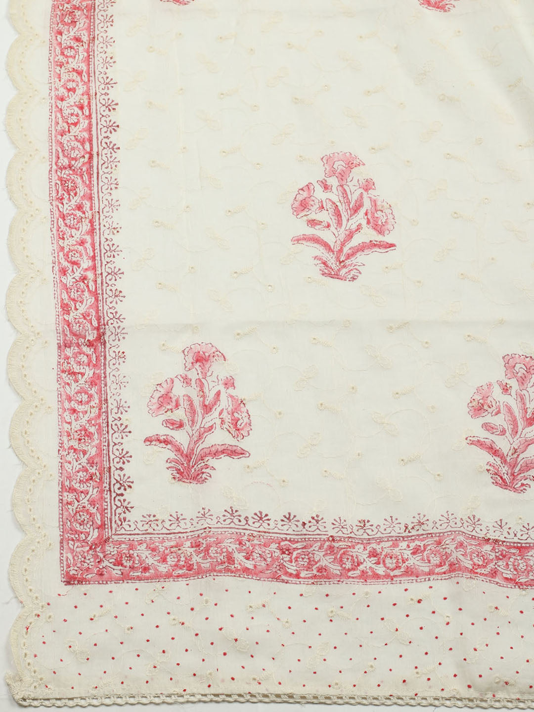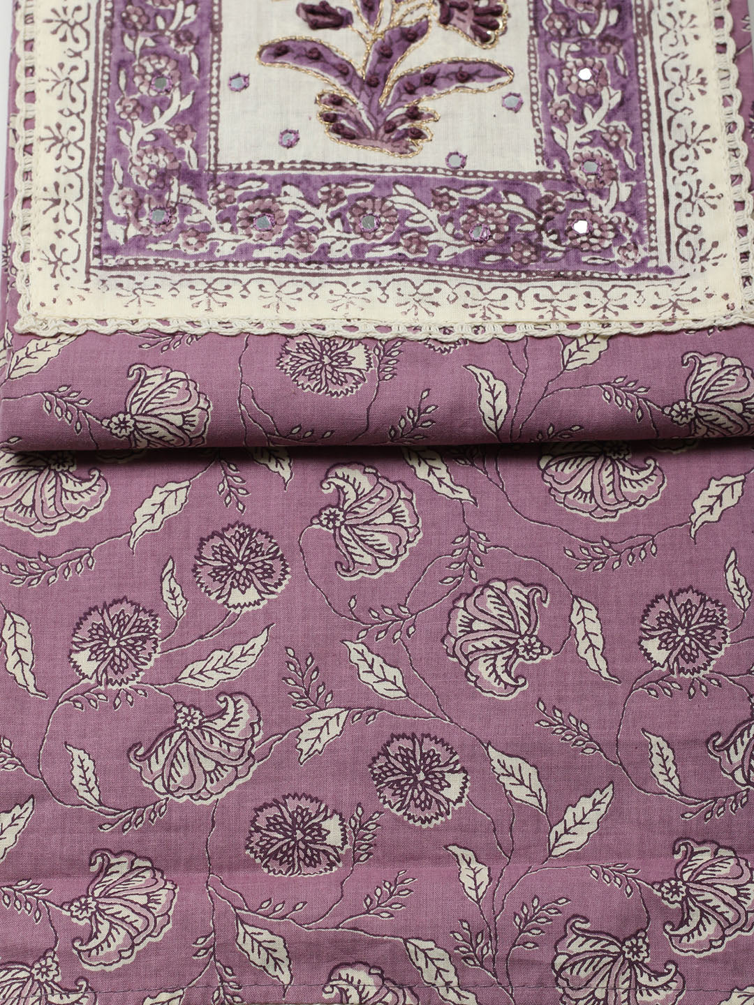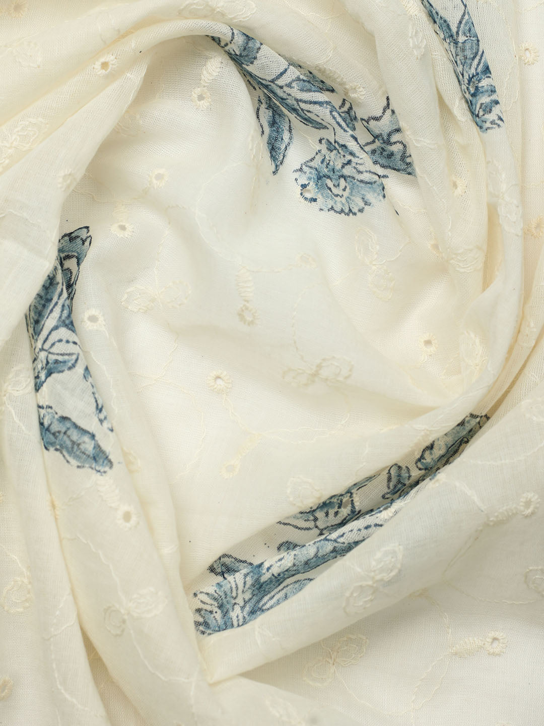 Printed Cotton Blend Unstitched Suit With Pant & Dupatta