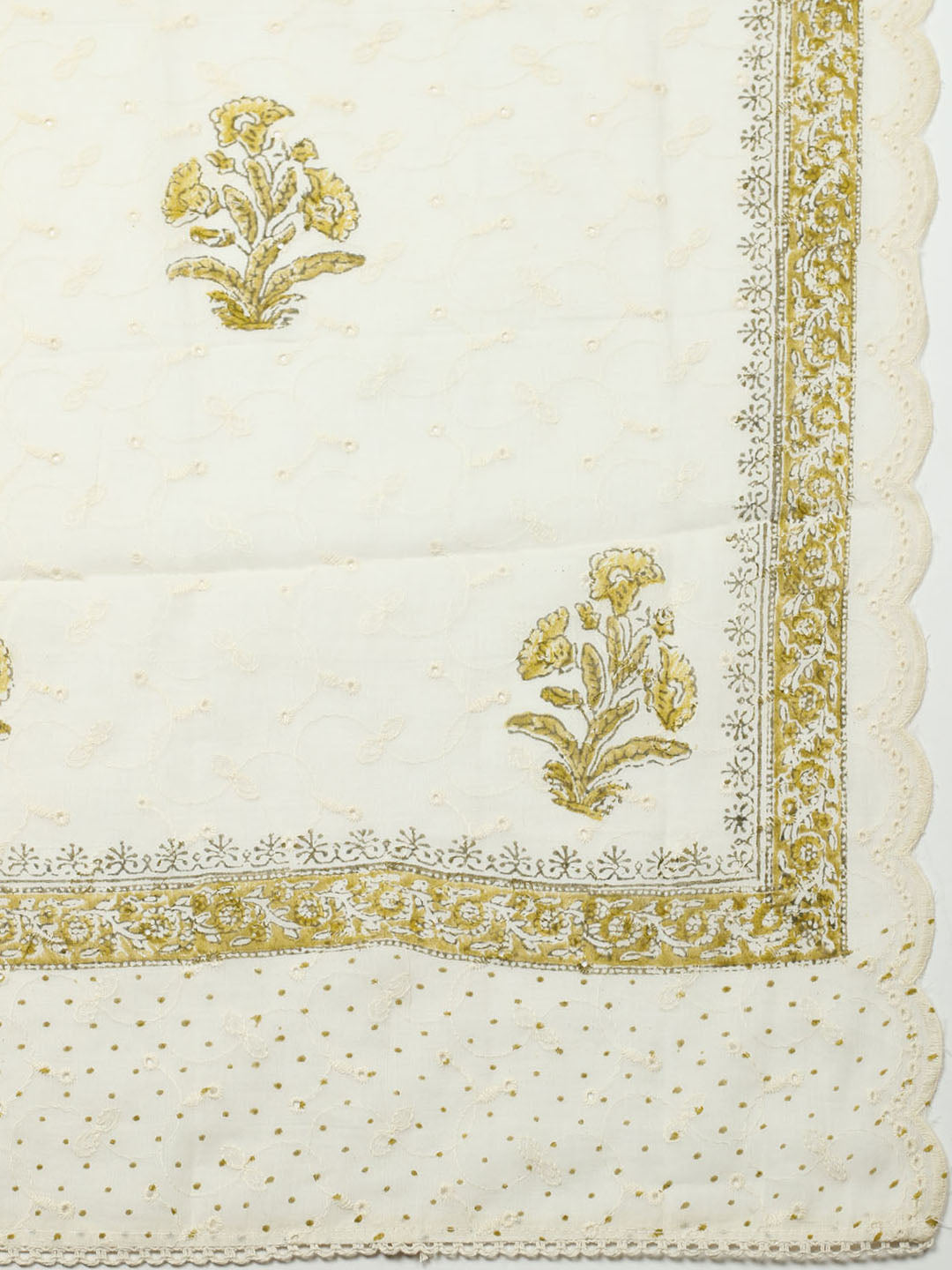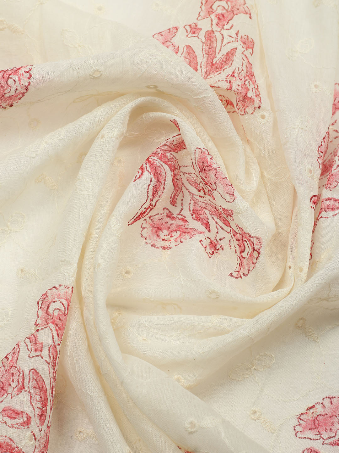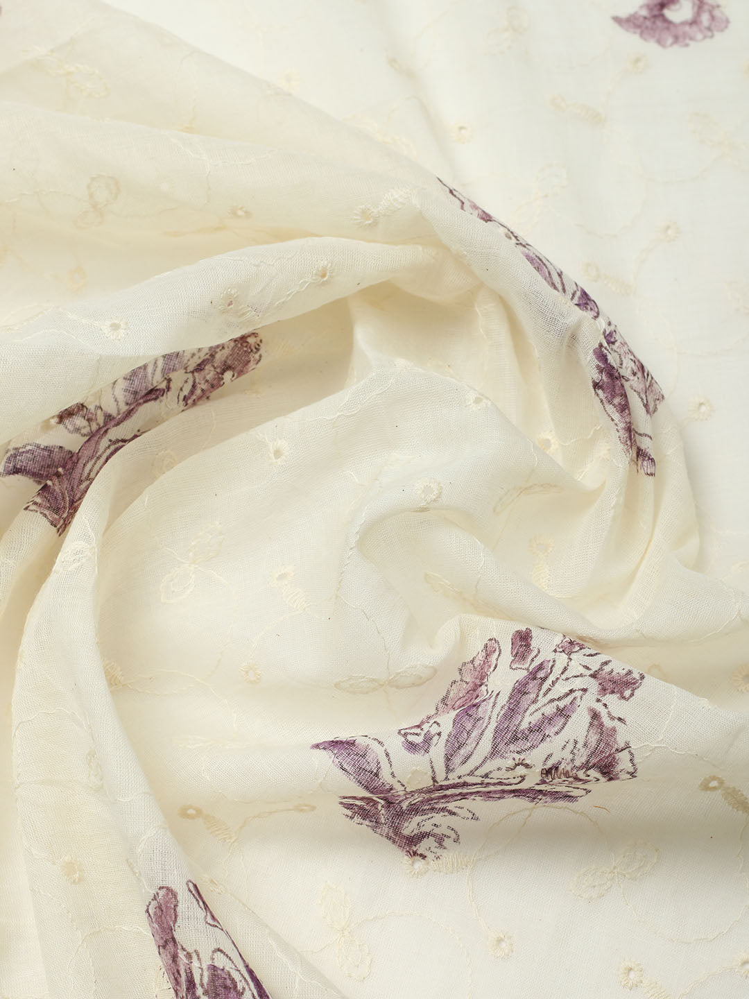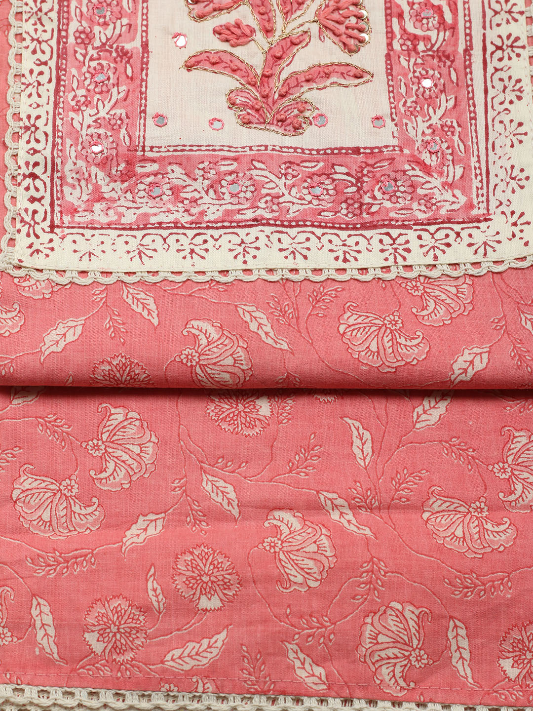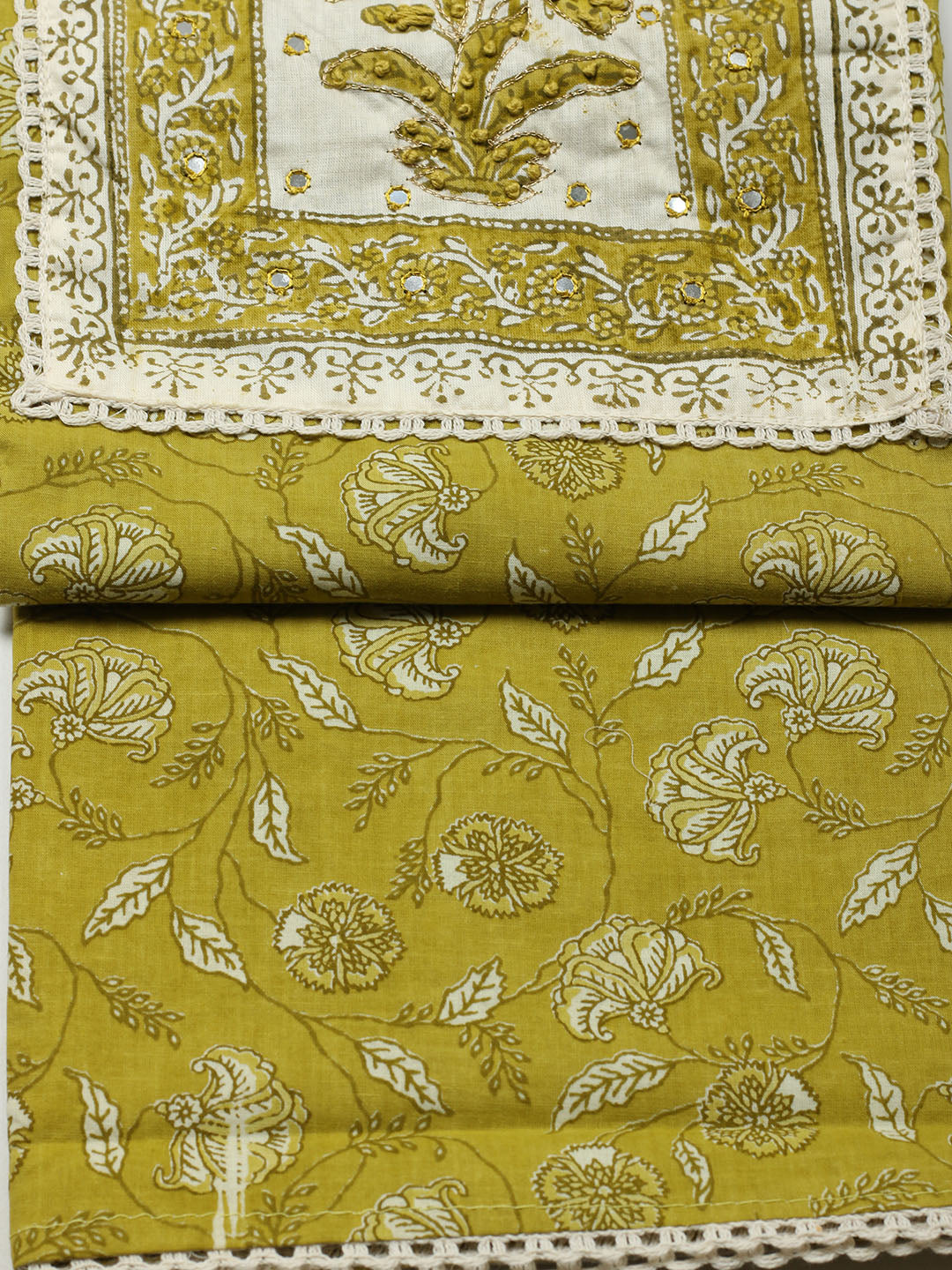Printed Cotton Blend Unstitched Suit With Pant & Dupatta
