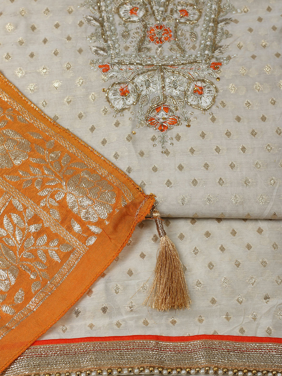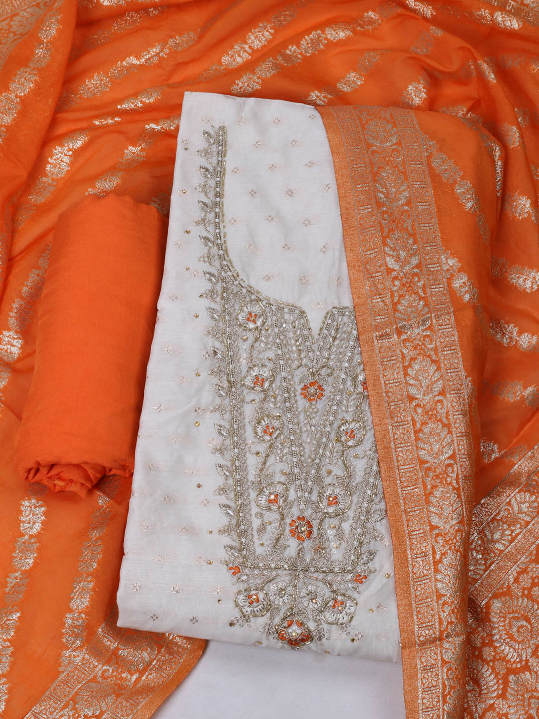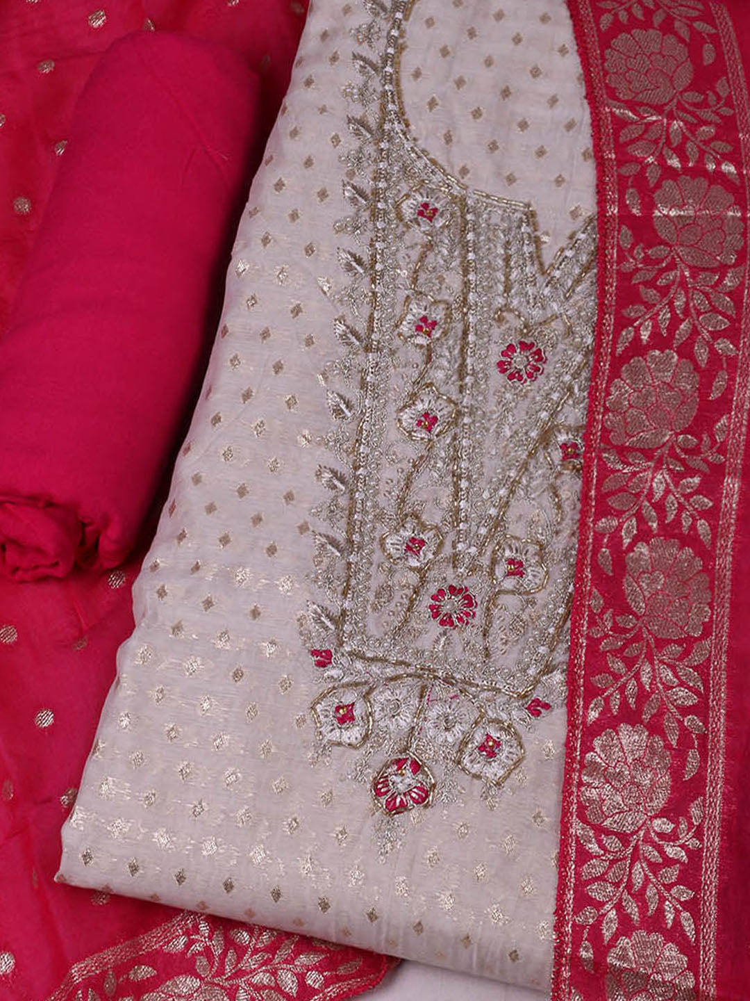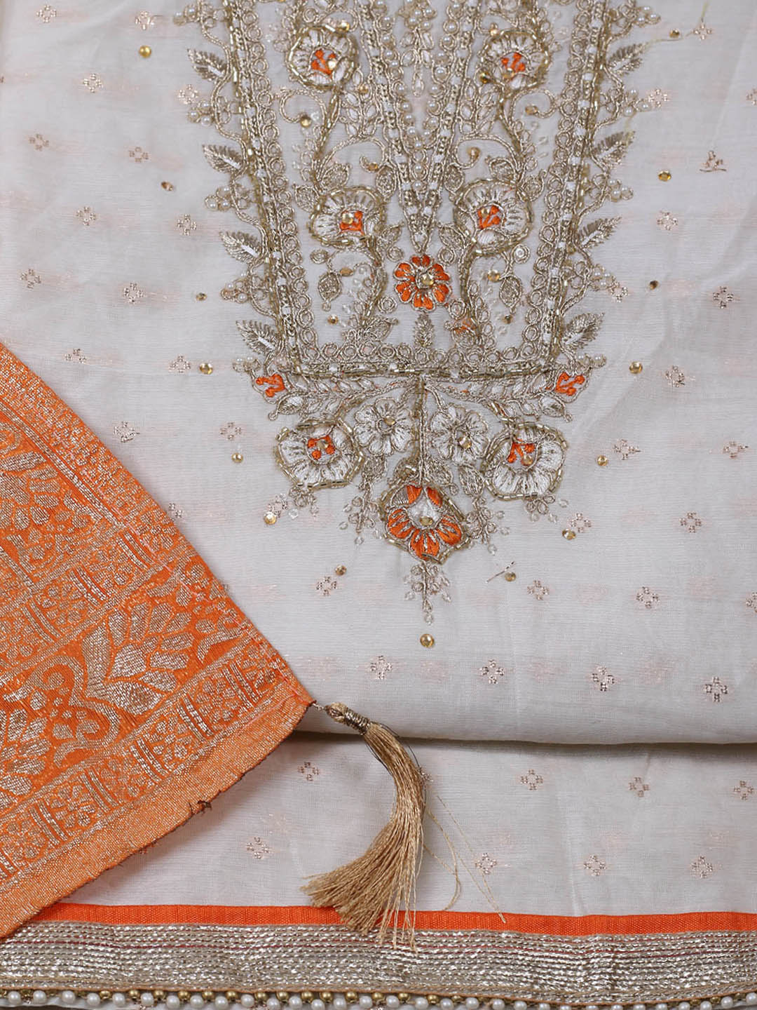 Embroidered Chanderi Unstitched Suit With Pant & Dupatta