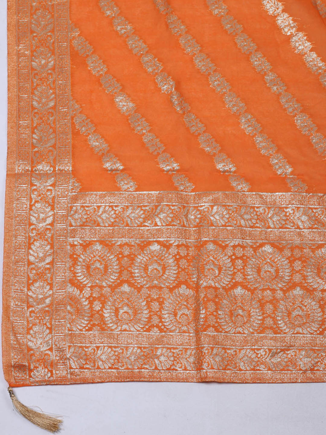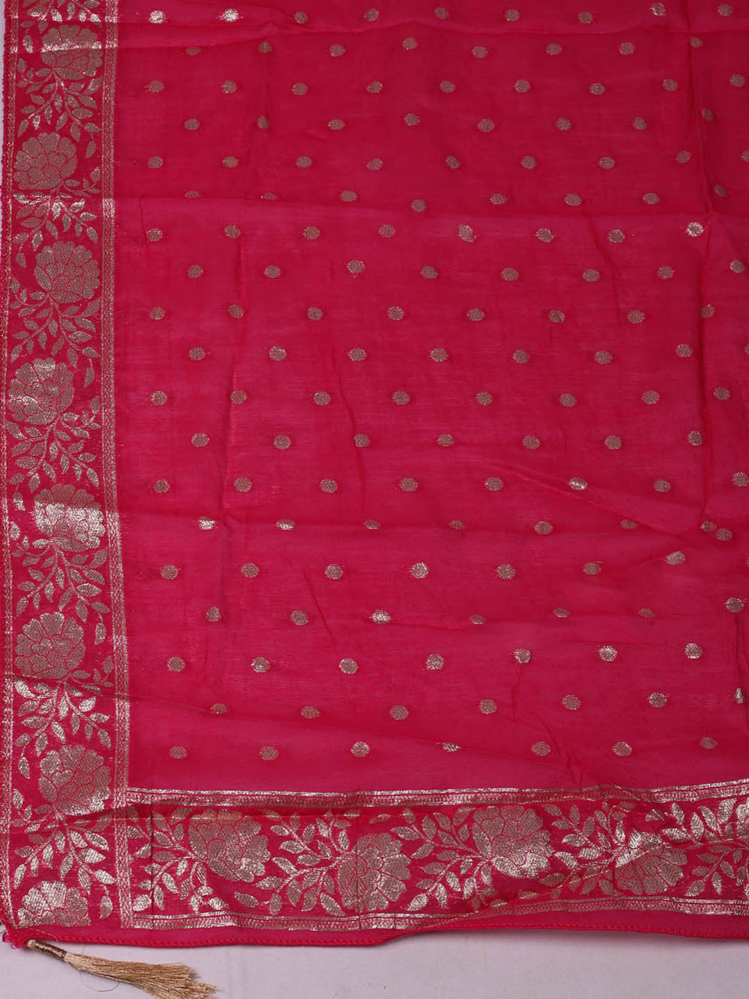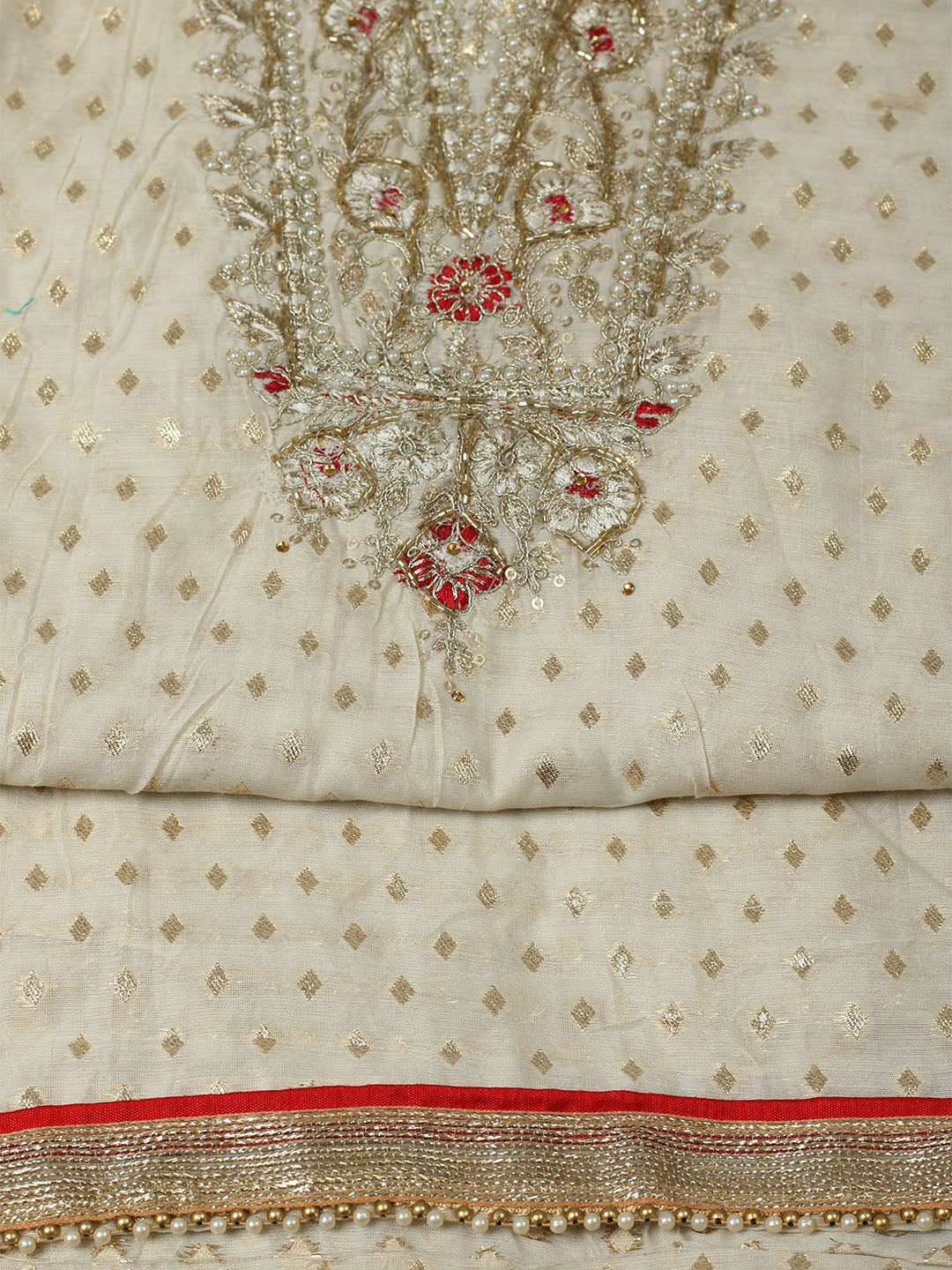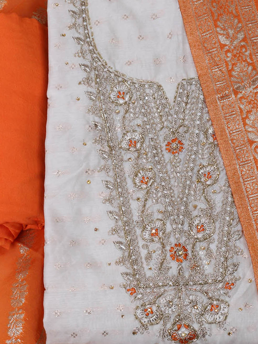 Embroidered Chanderi Unstitched Suit With Pant & Dupatta