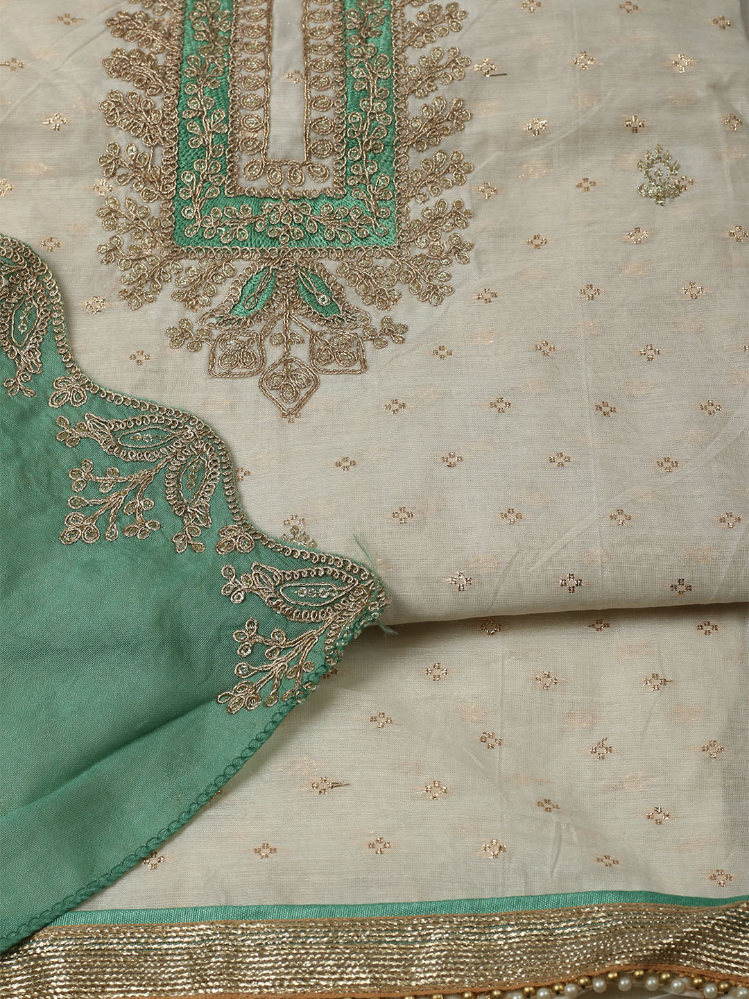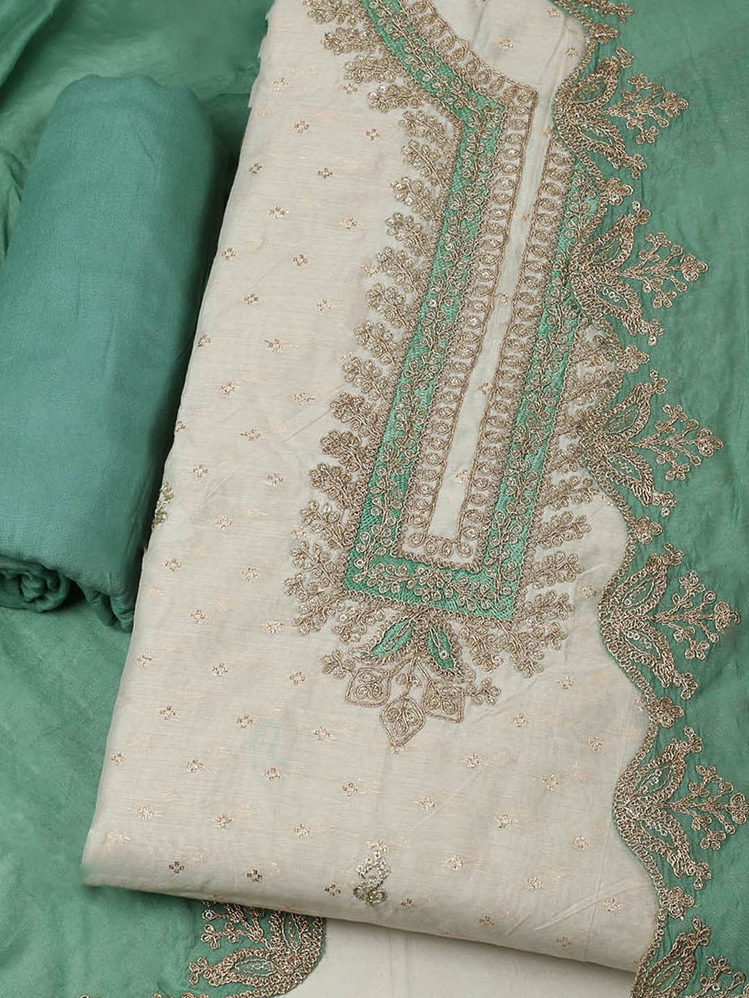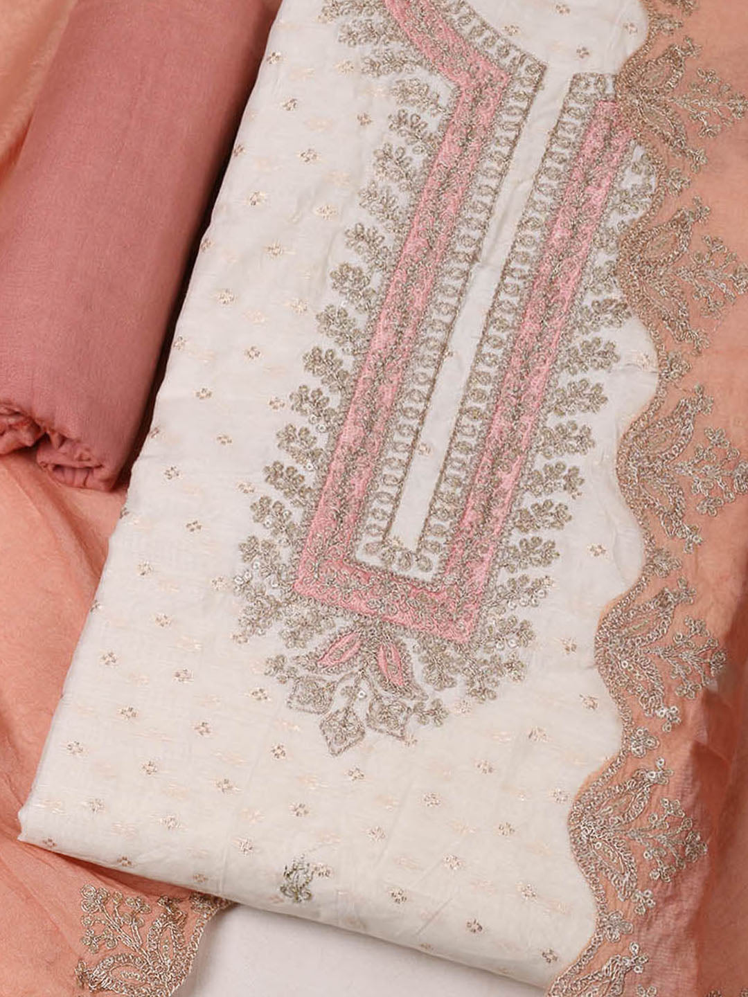 Embroidered Chanderi Unstitched Suit With Pant & Dupatta