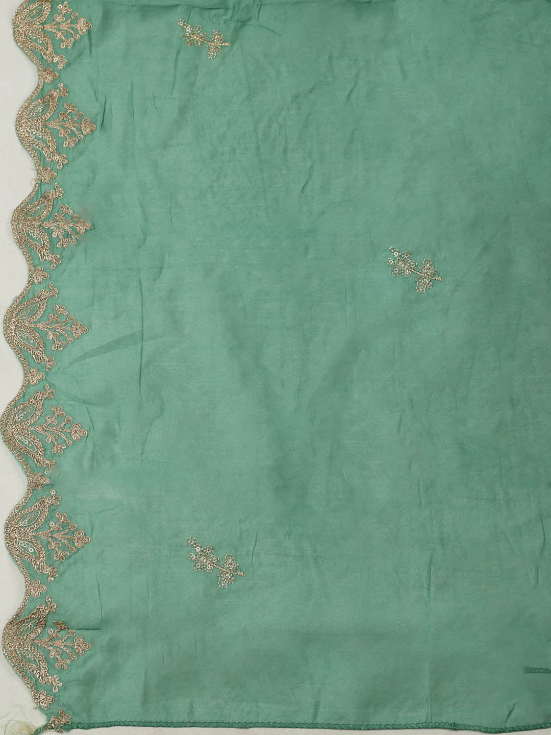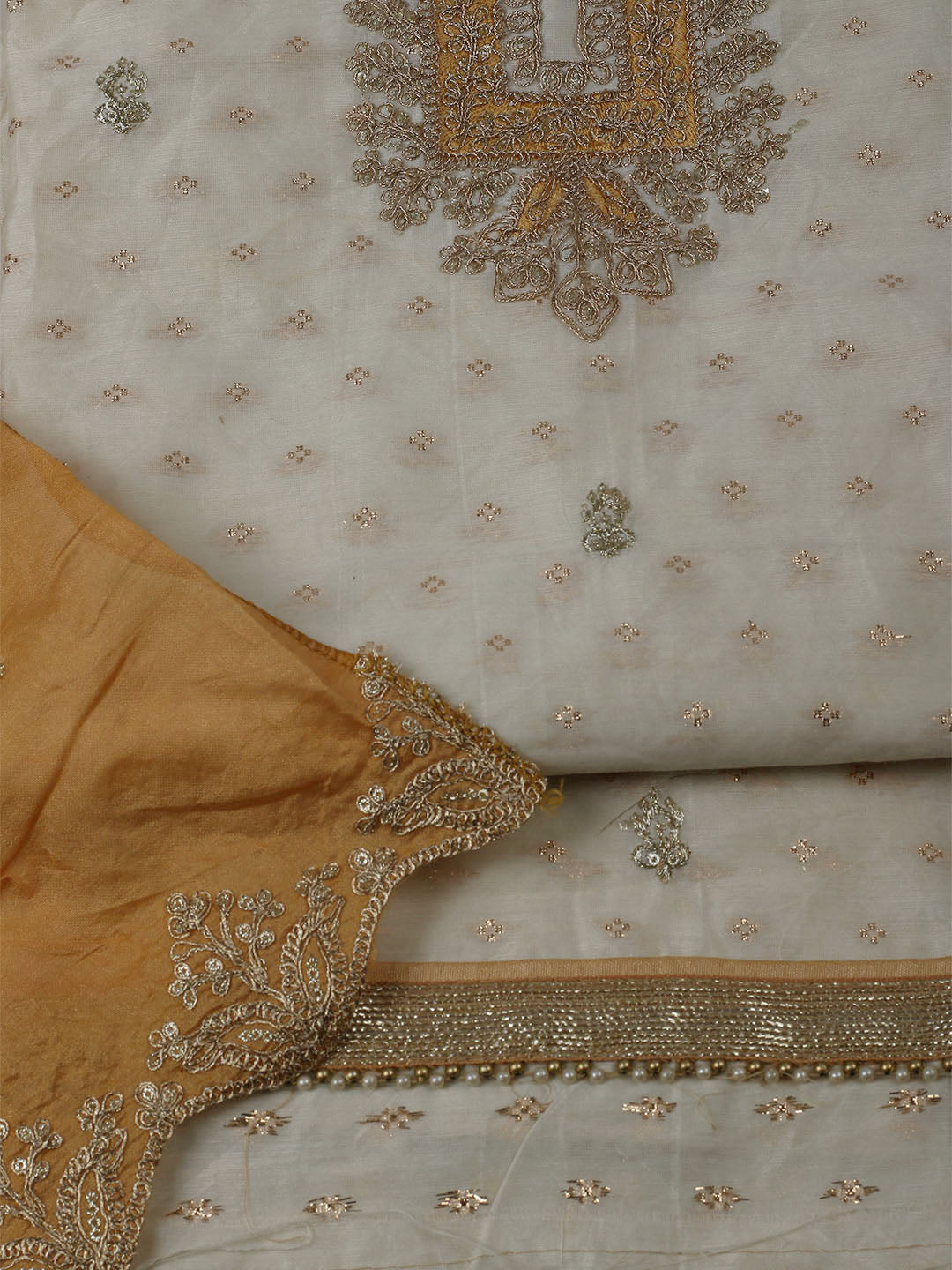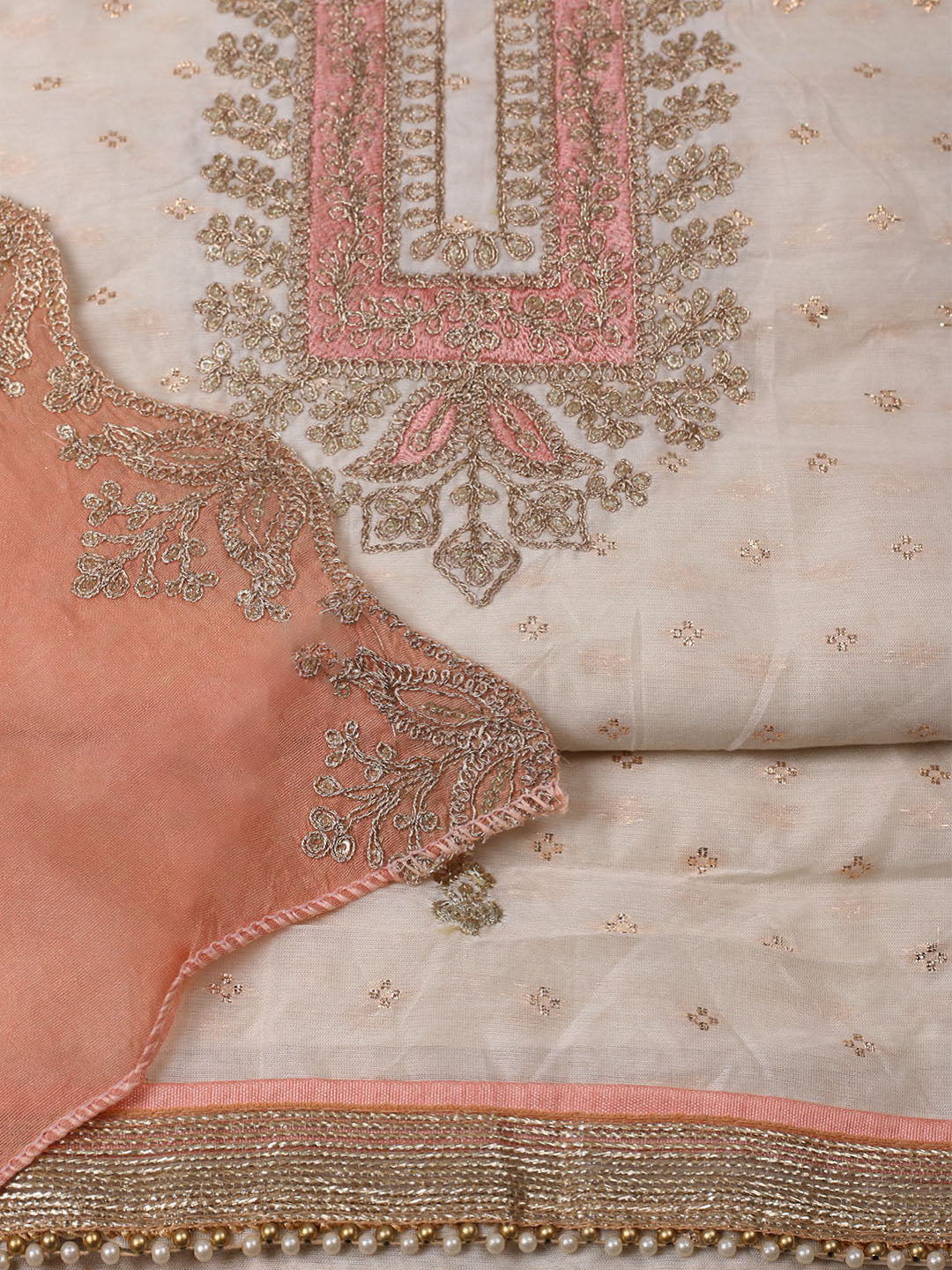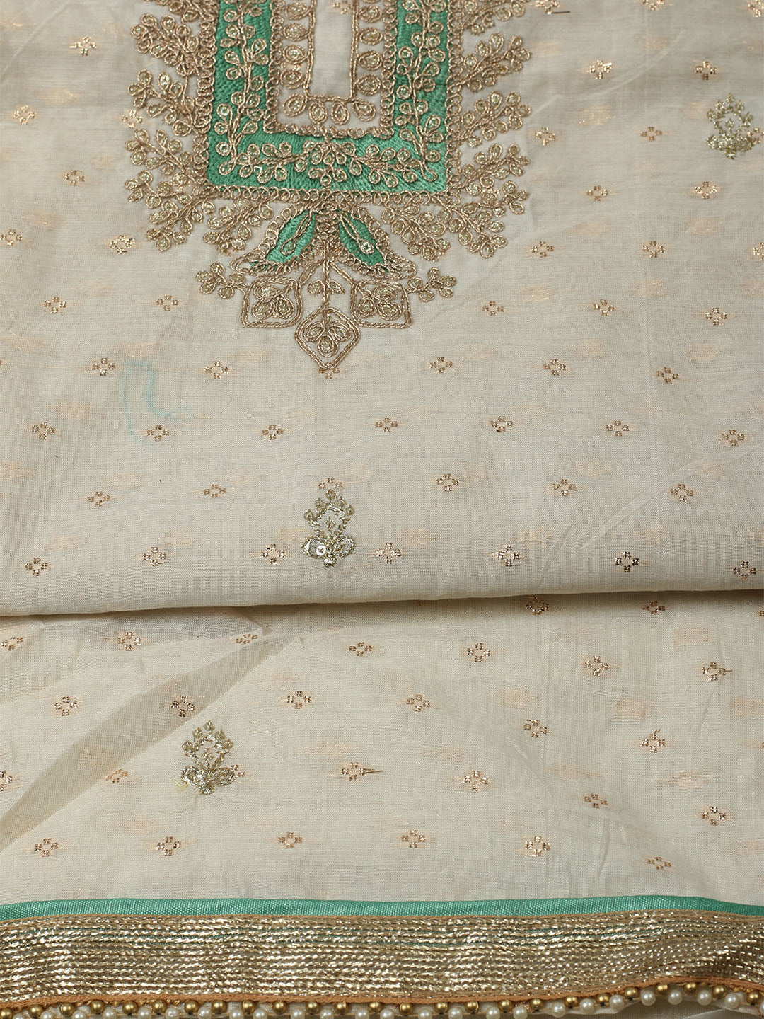 Embroidered Chanderi Unstitched Suit With Pant & Dupatta