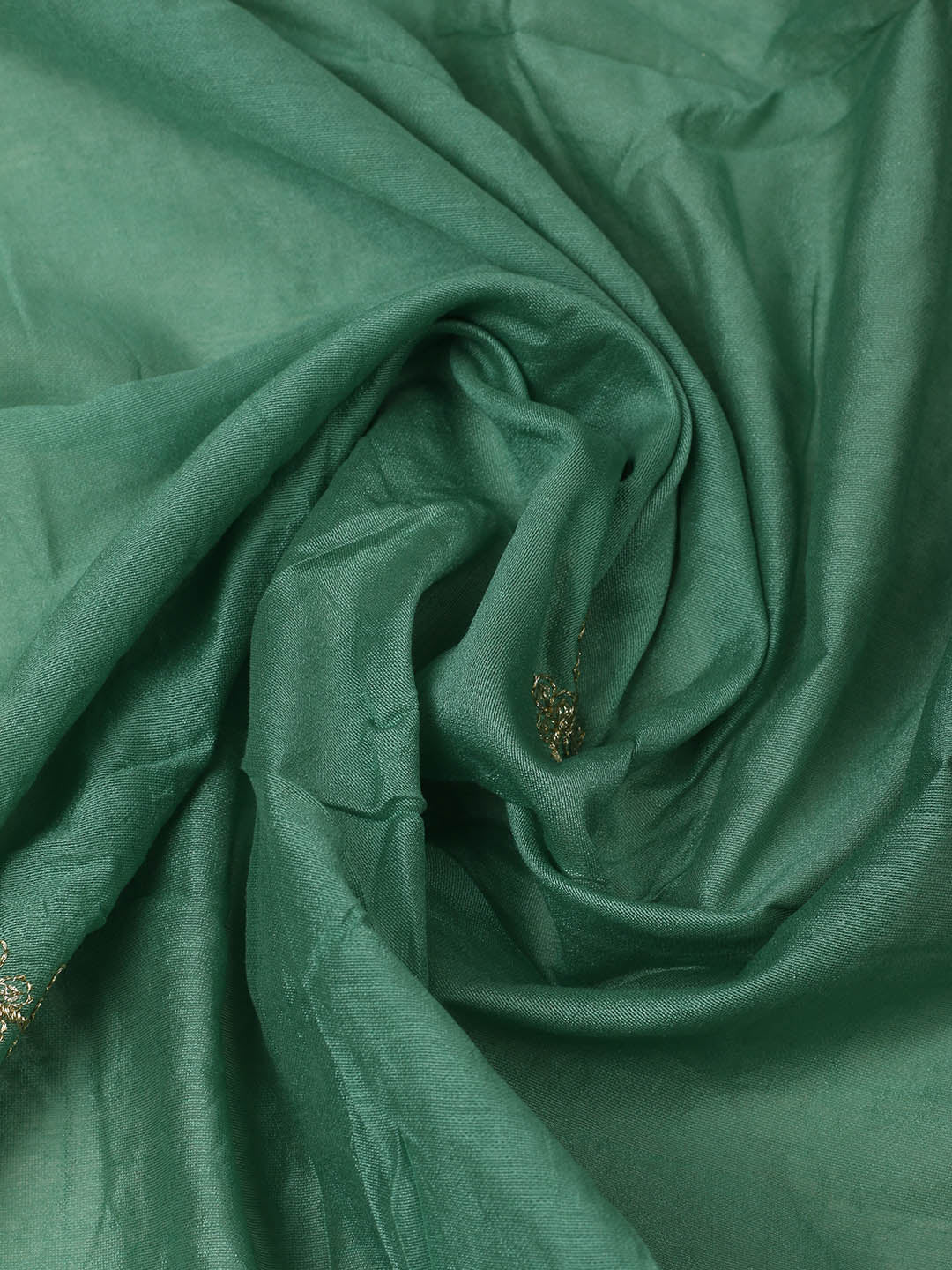Embroidered Chanderi Cream-Green Unstitched Suit With Pant & Dupatta