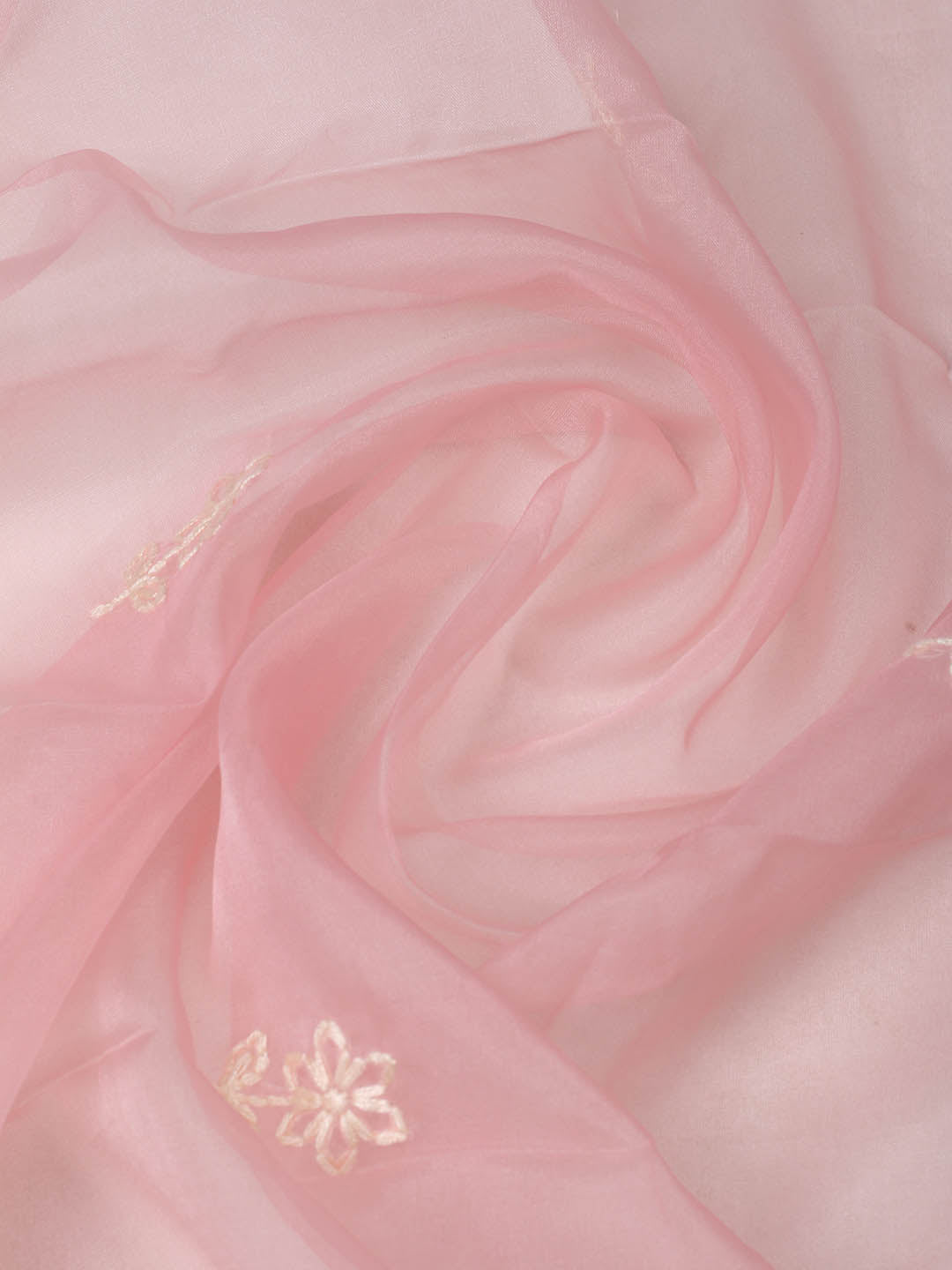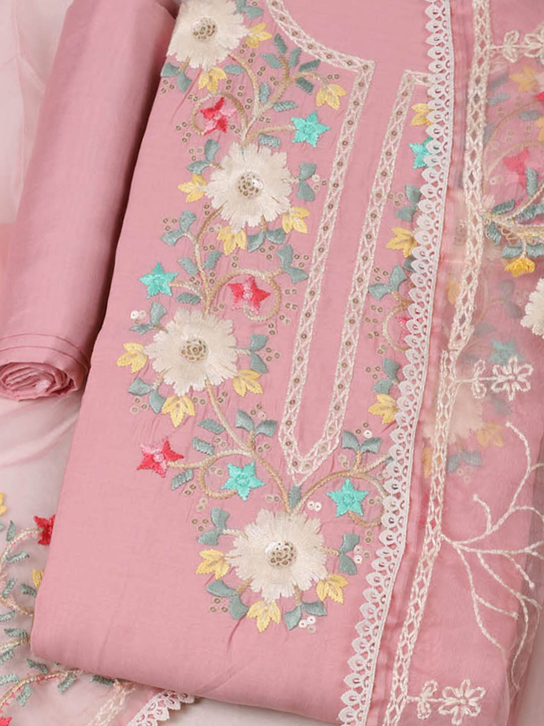Embroidered Chanderi Peach Unstitched Suit With Pant & Dupatta