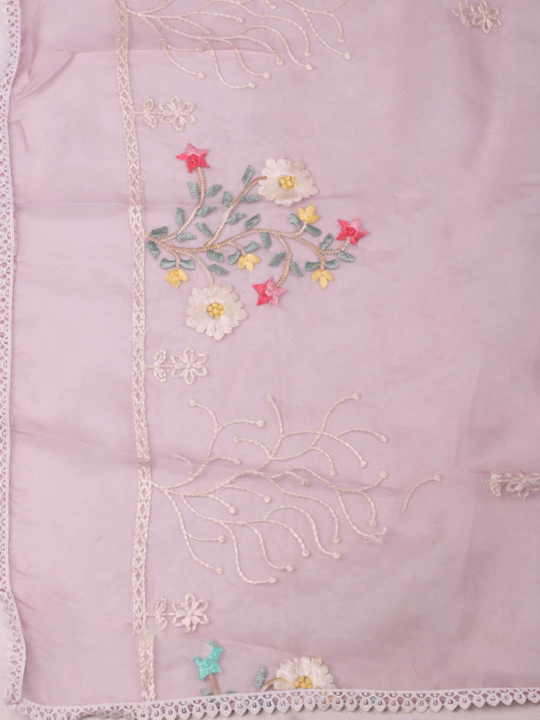 Embroidered Chanderi Pink Lavender Unstitched Suit With Pant & Dupatta