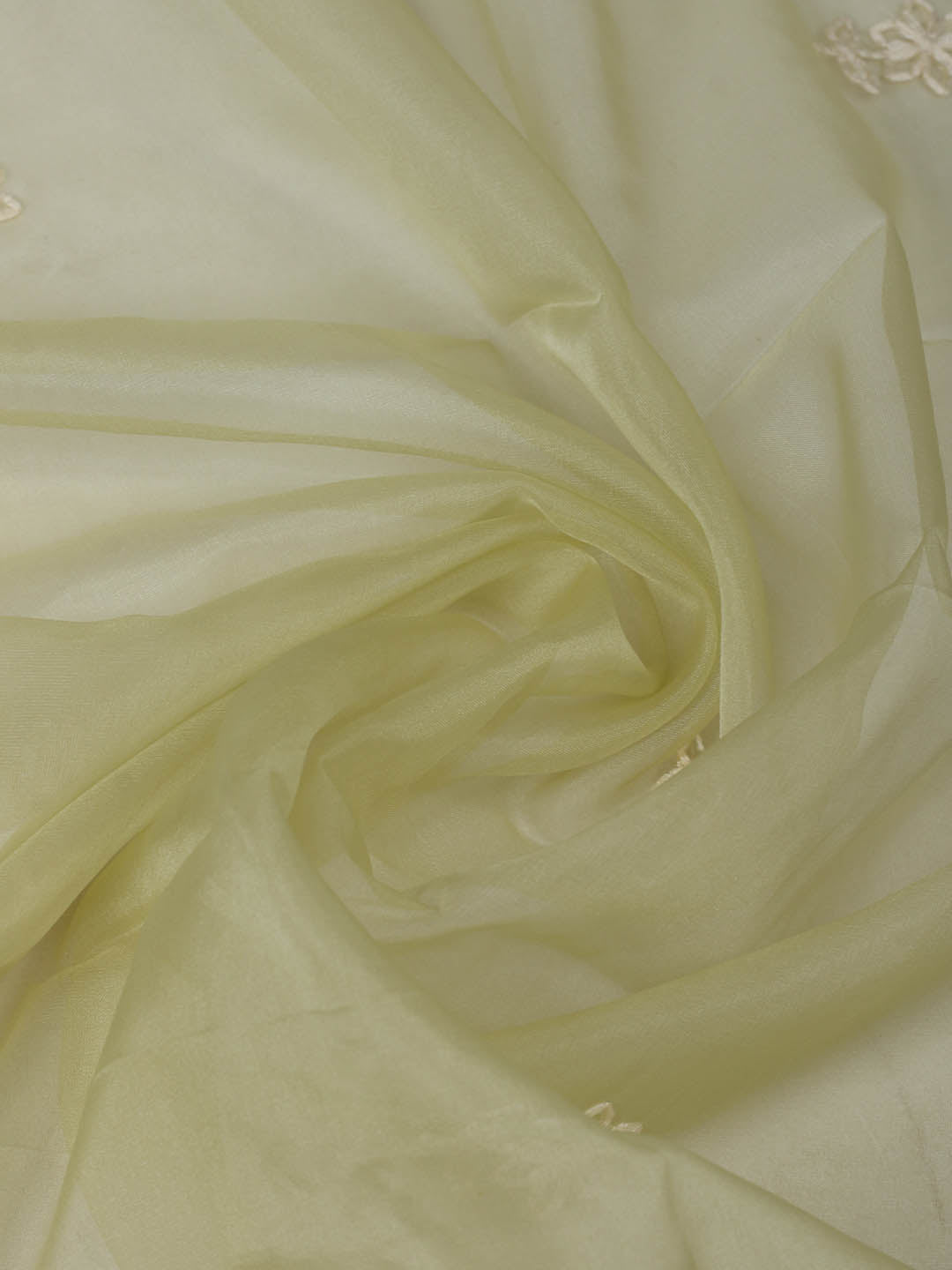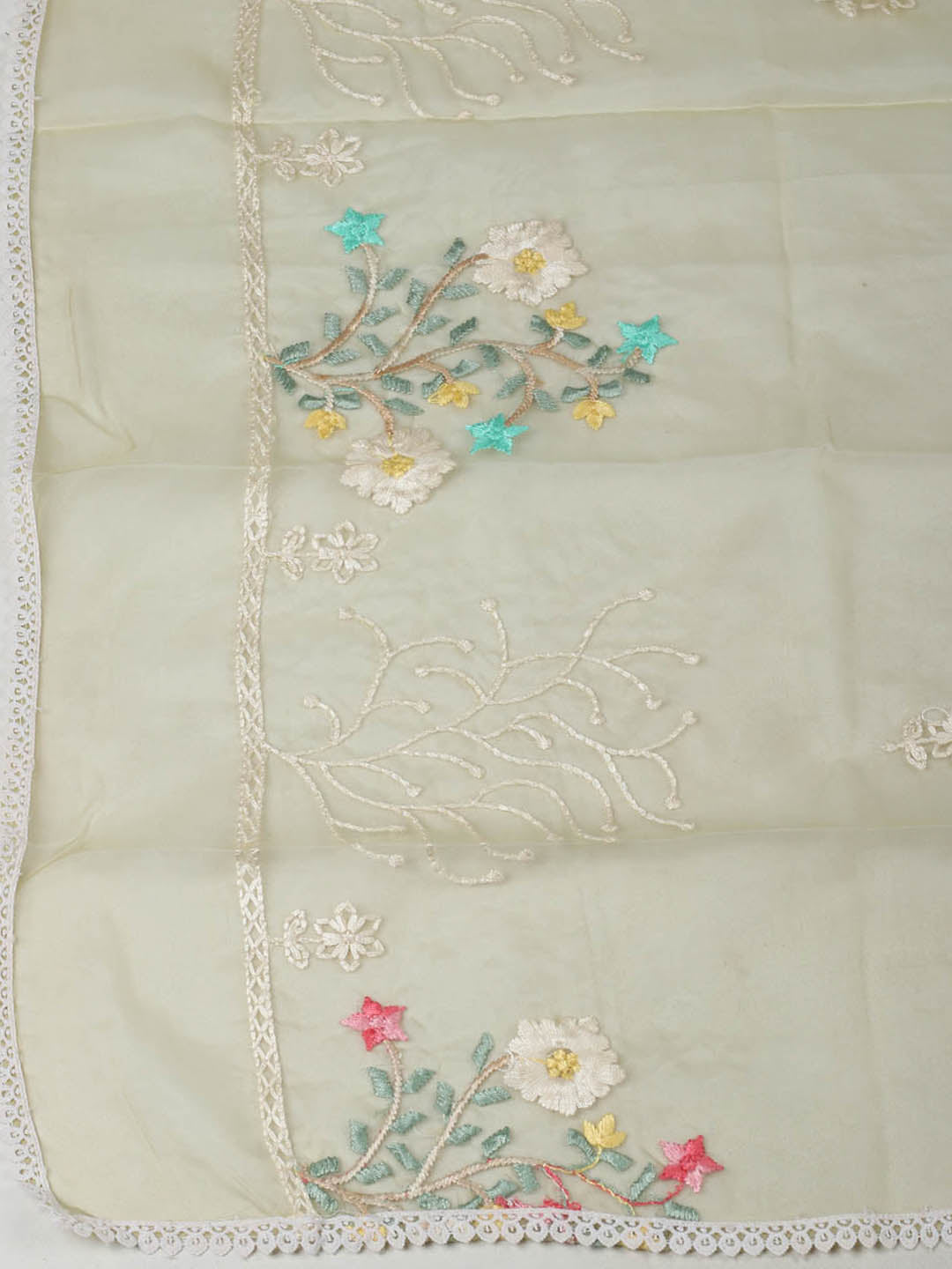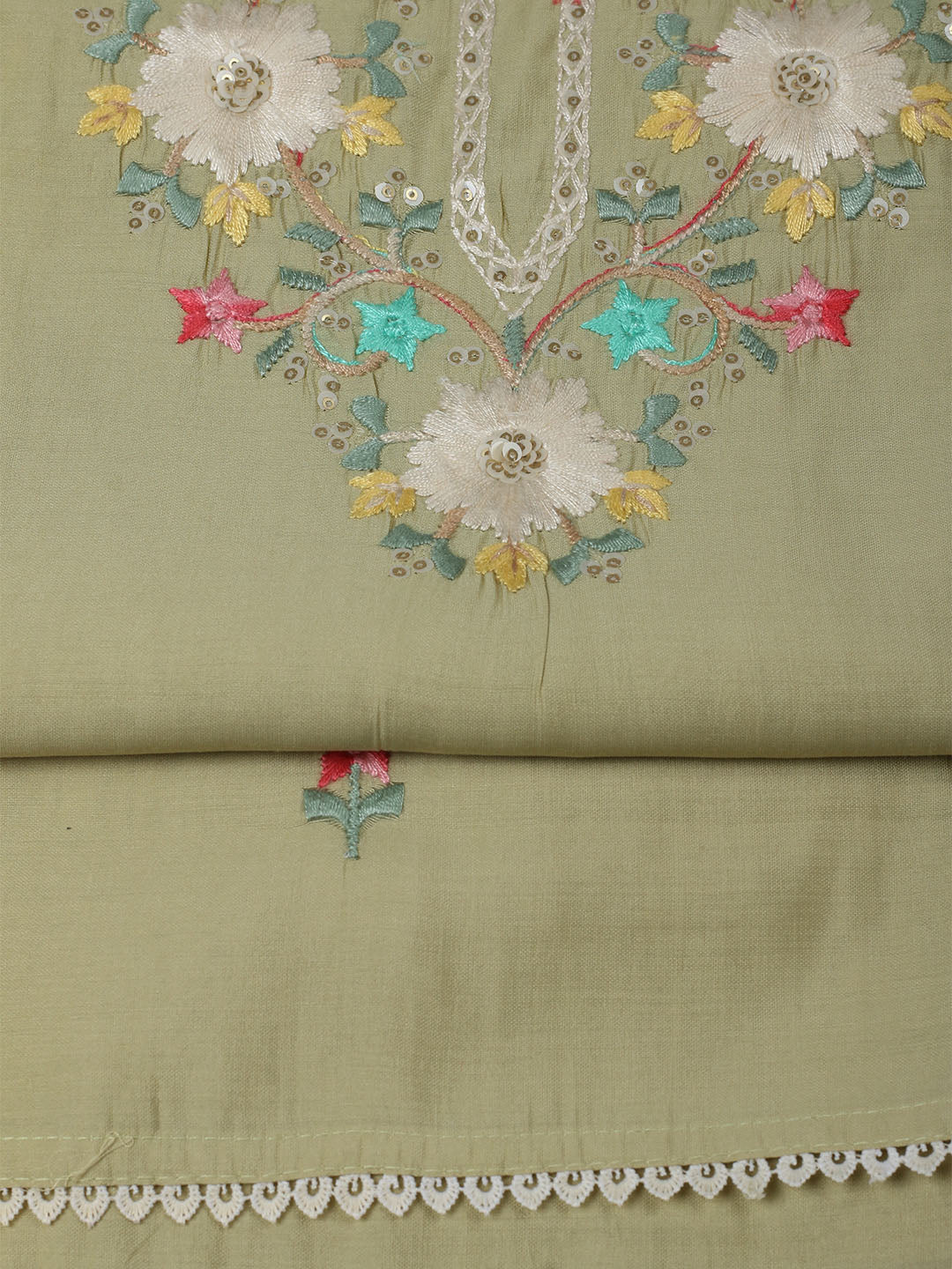 Embroidered Chanderi Pista Green Unstitched Suit With Pant & Dupatta