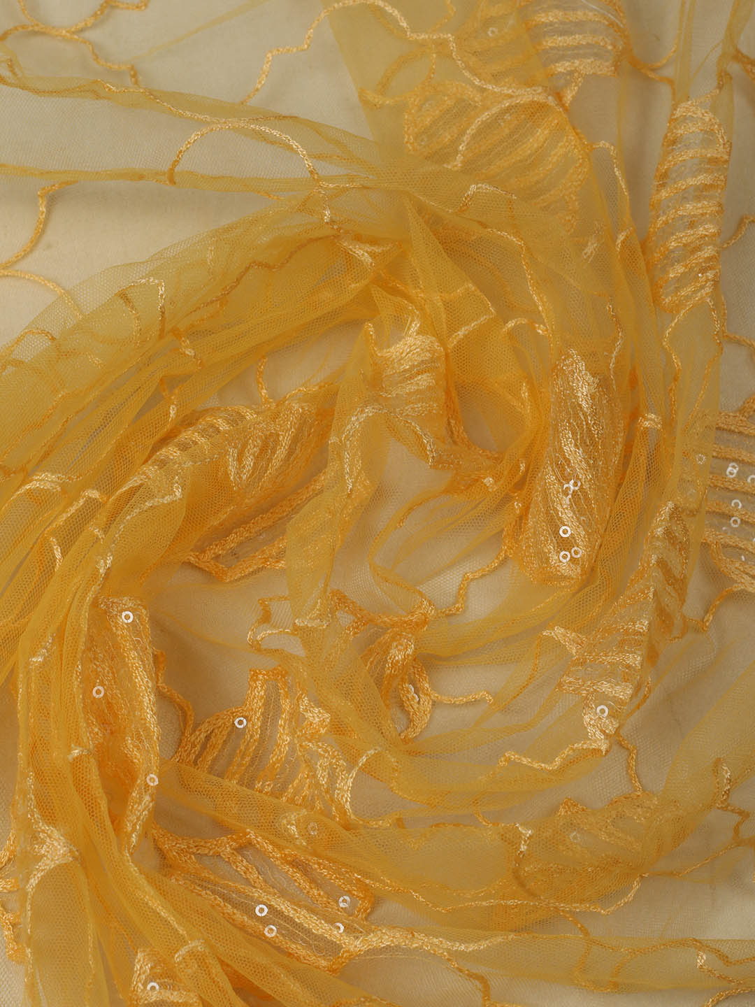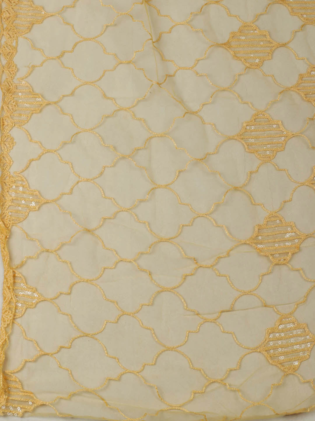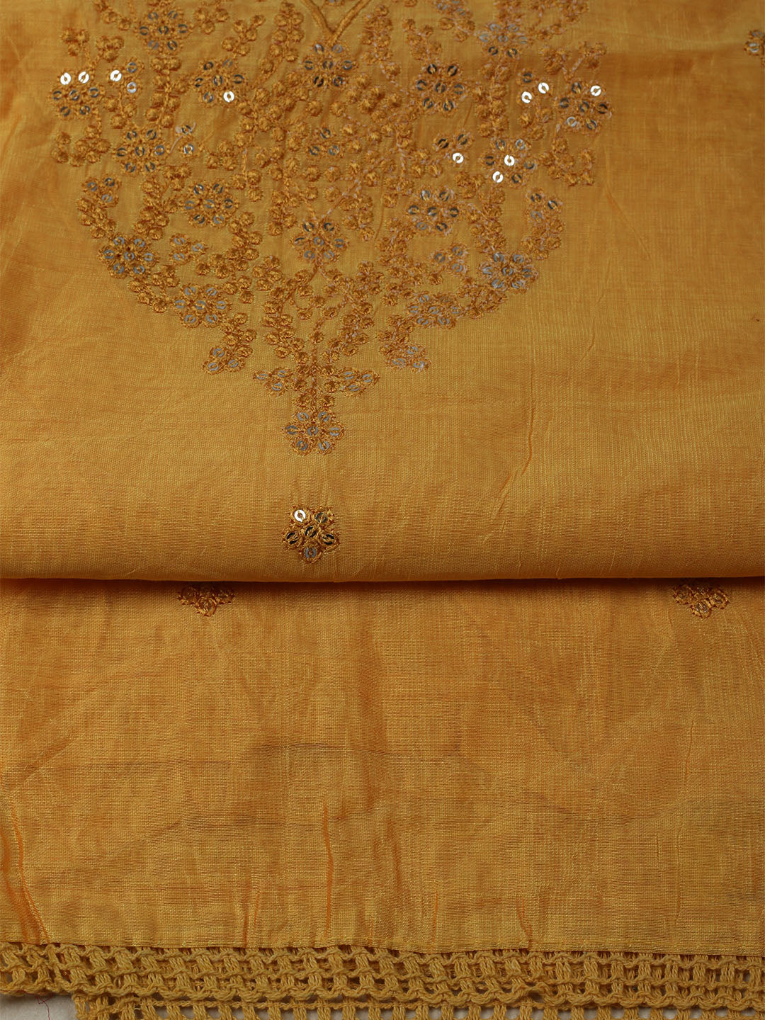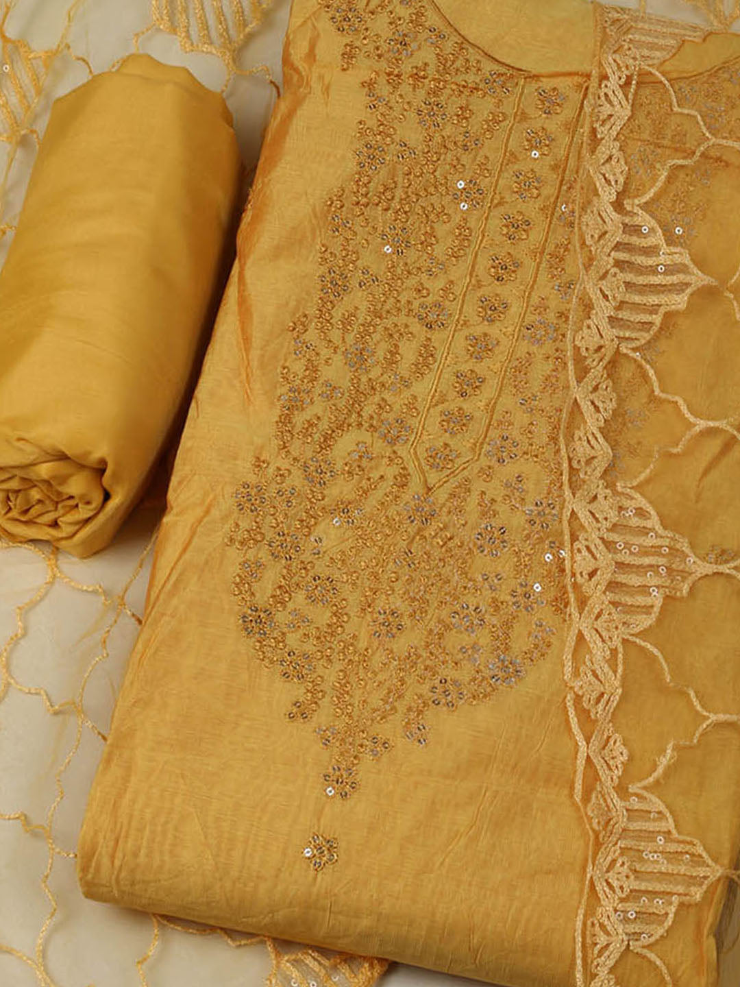 Embroidered Chanderi Mustard Unstitched Suit With Pant & Dupatta