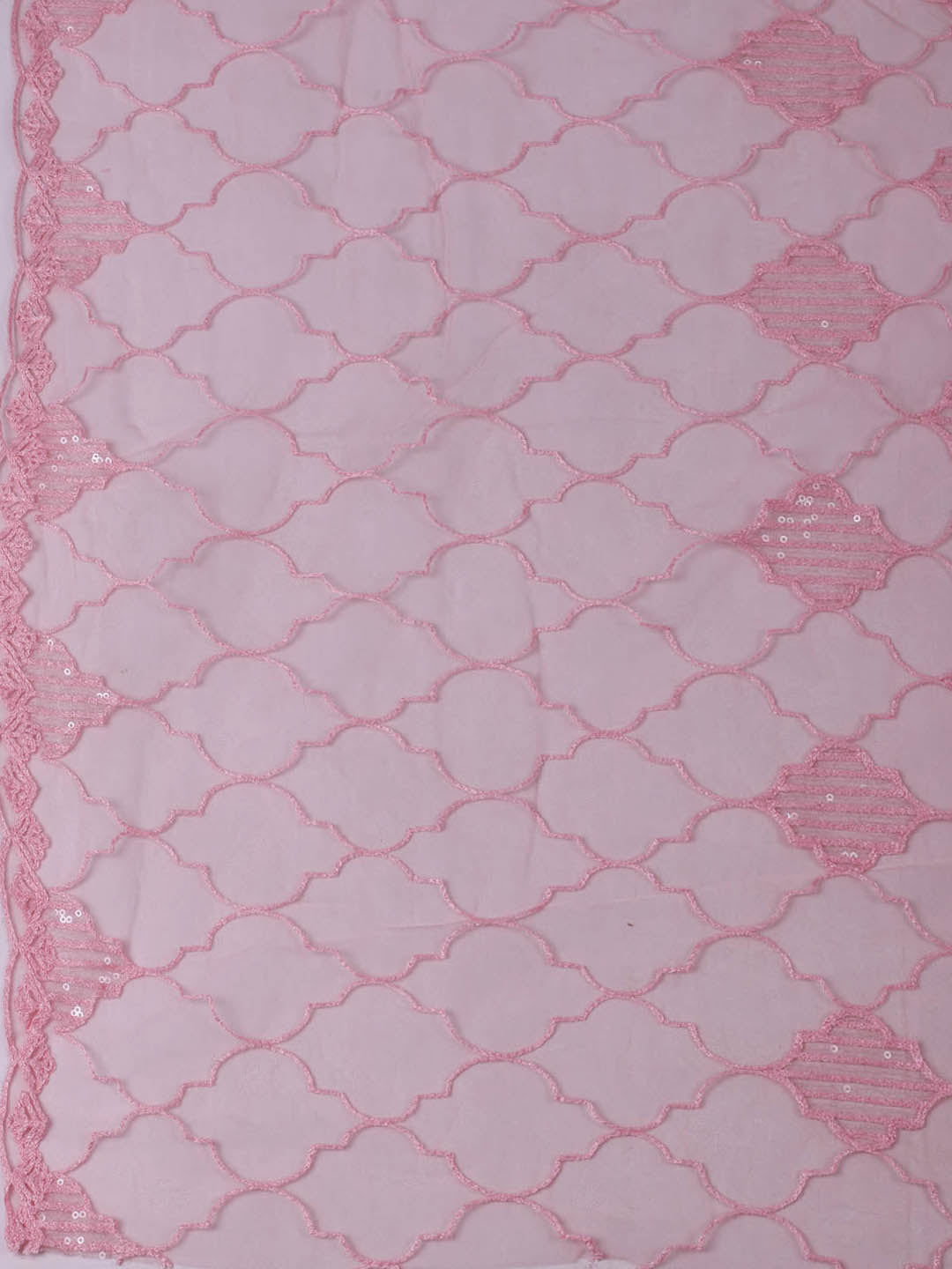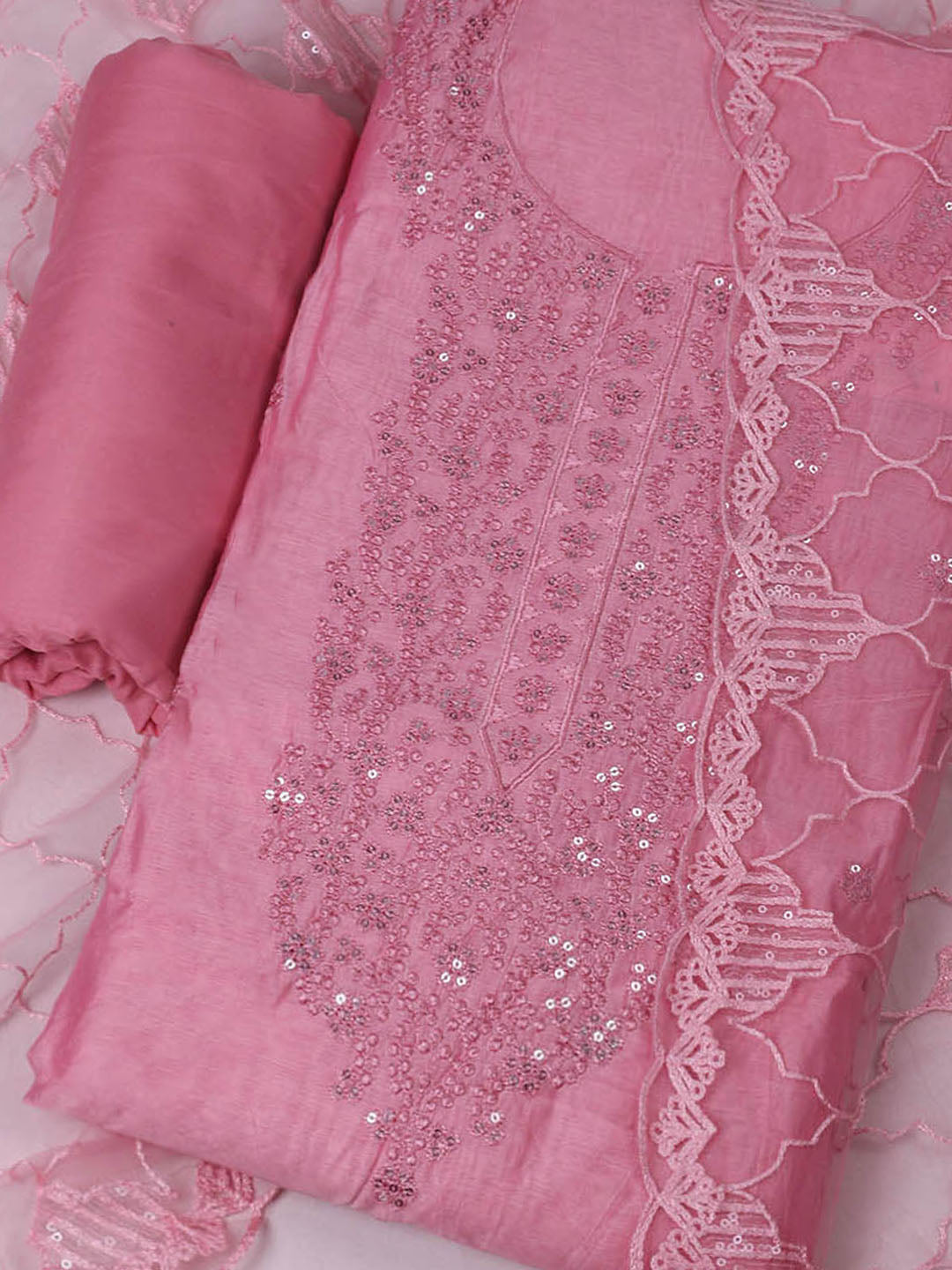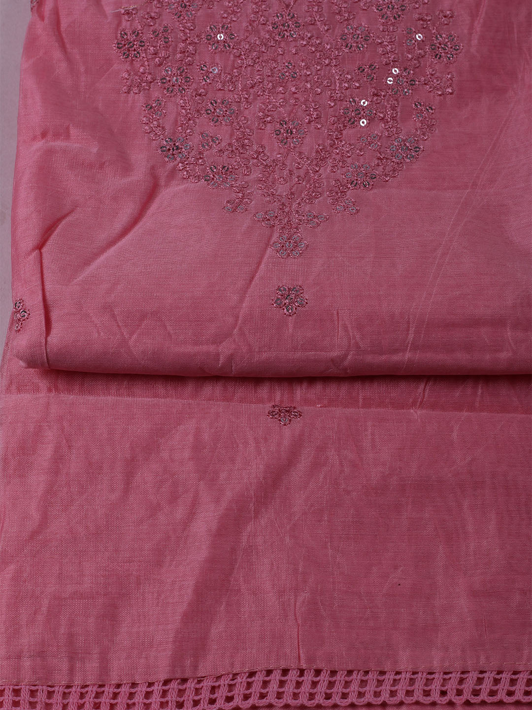 Embroidered Chanderi Pink Unstitched Suit With Pant & Dupatta