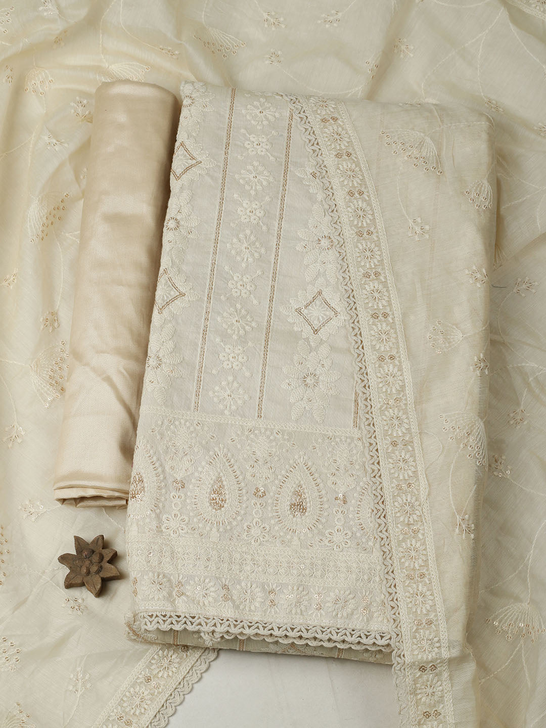 Embroidered Chanderi Unstitched Suit With Pant & Dupatta