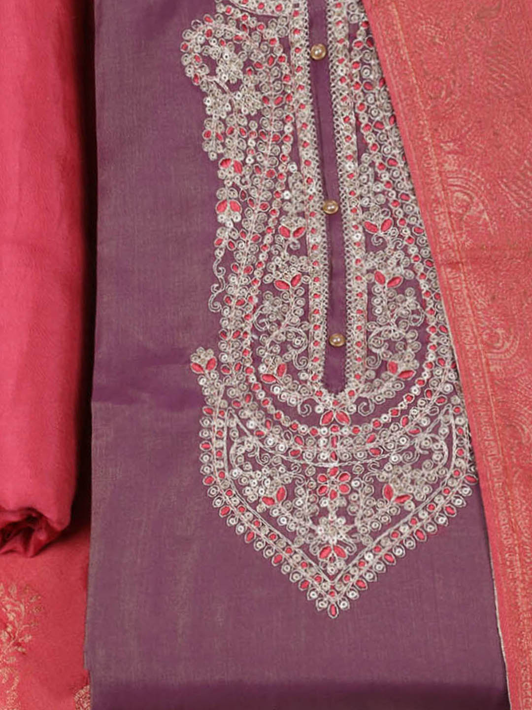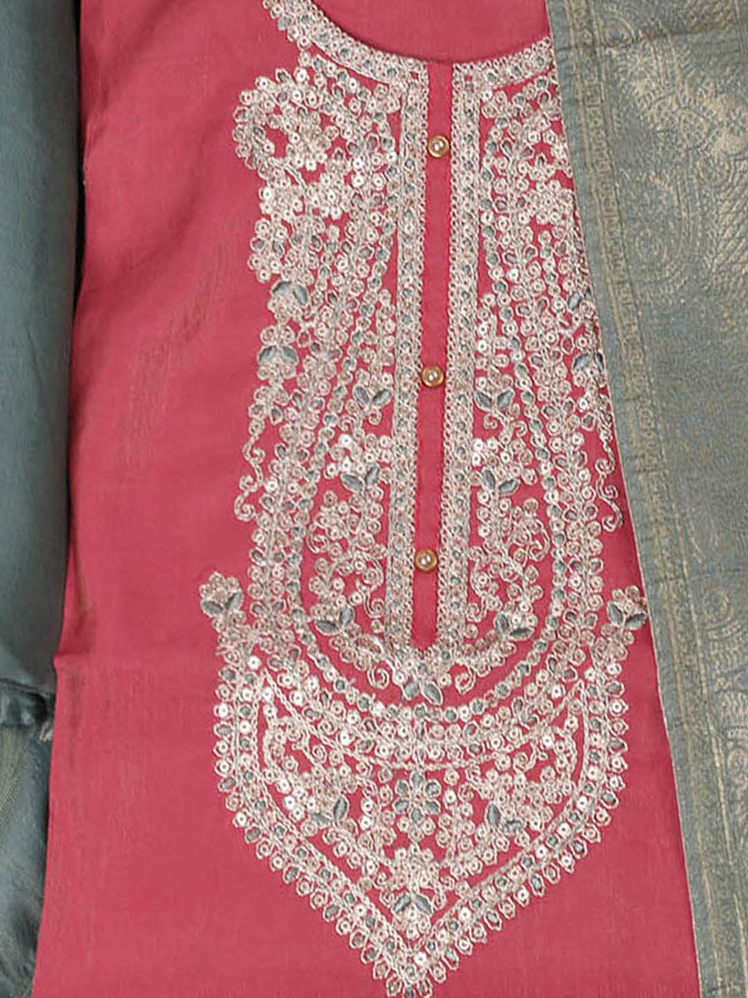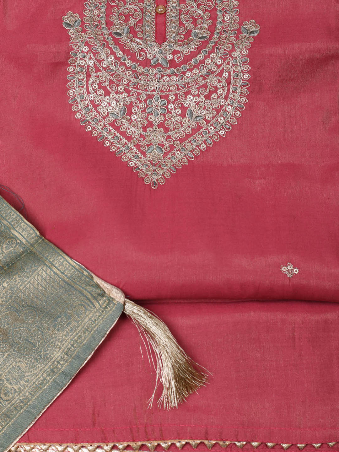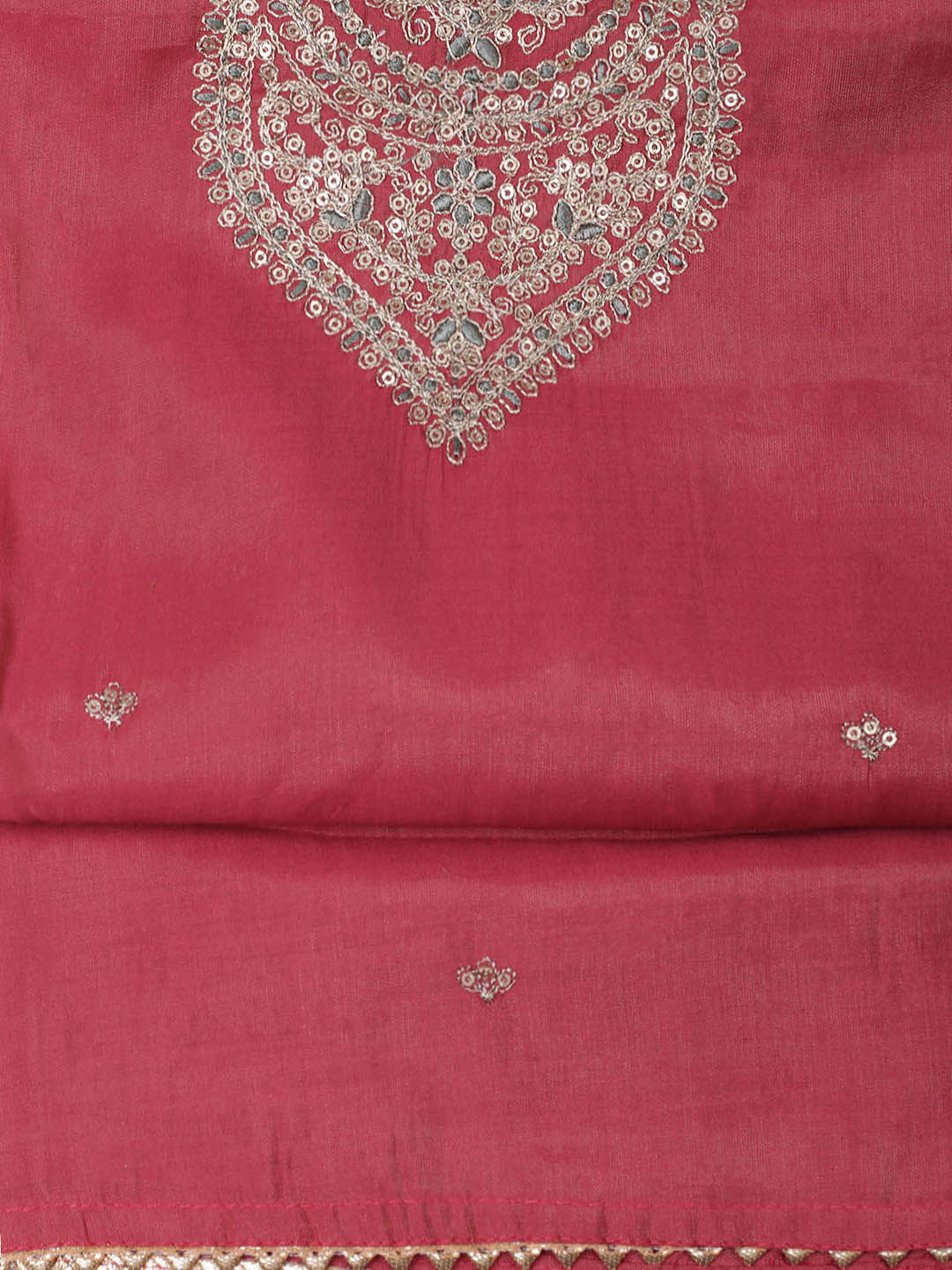 Embroidered Chanderi Unstitched Suit With Pant & Dupatta