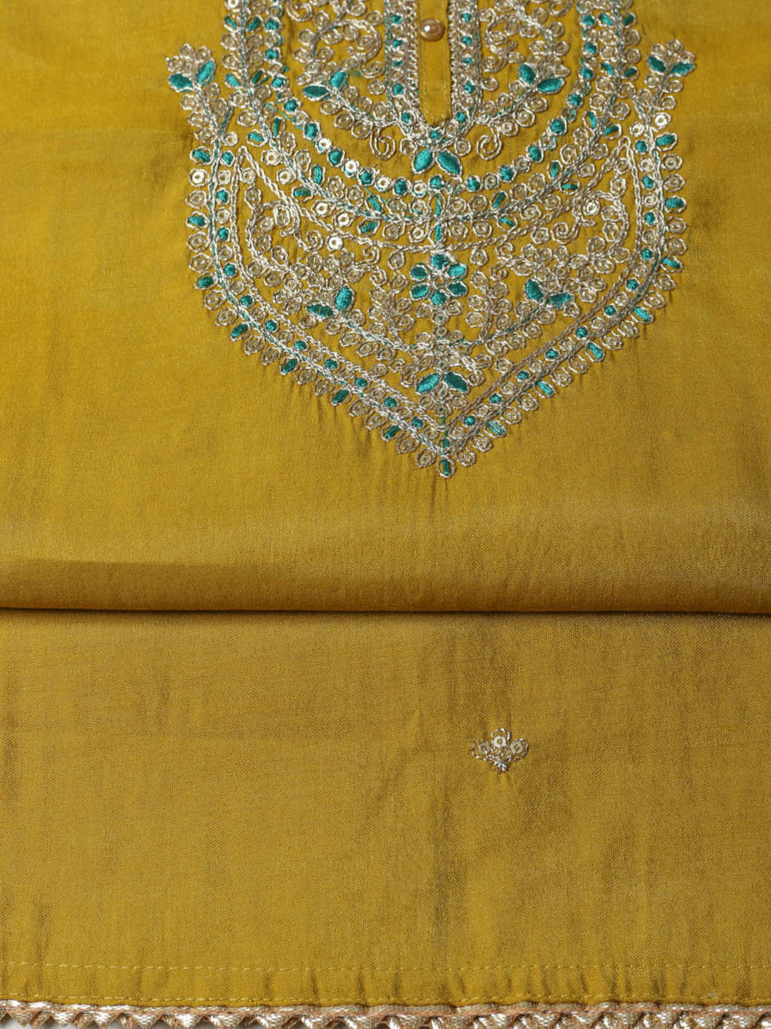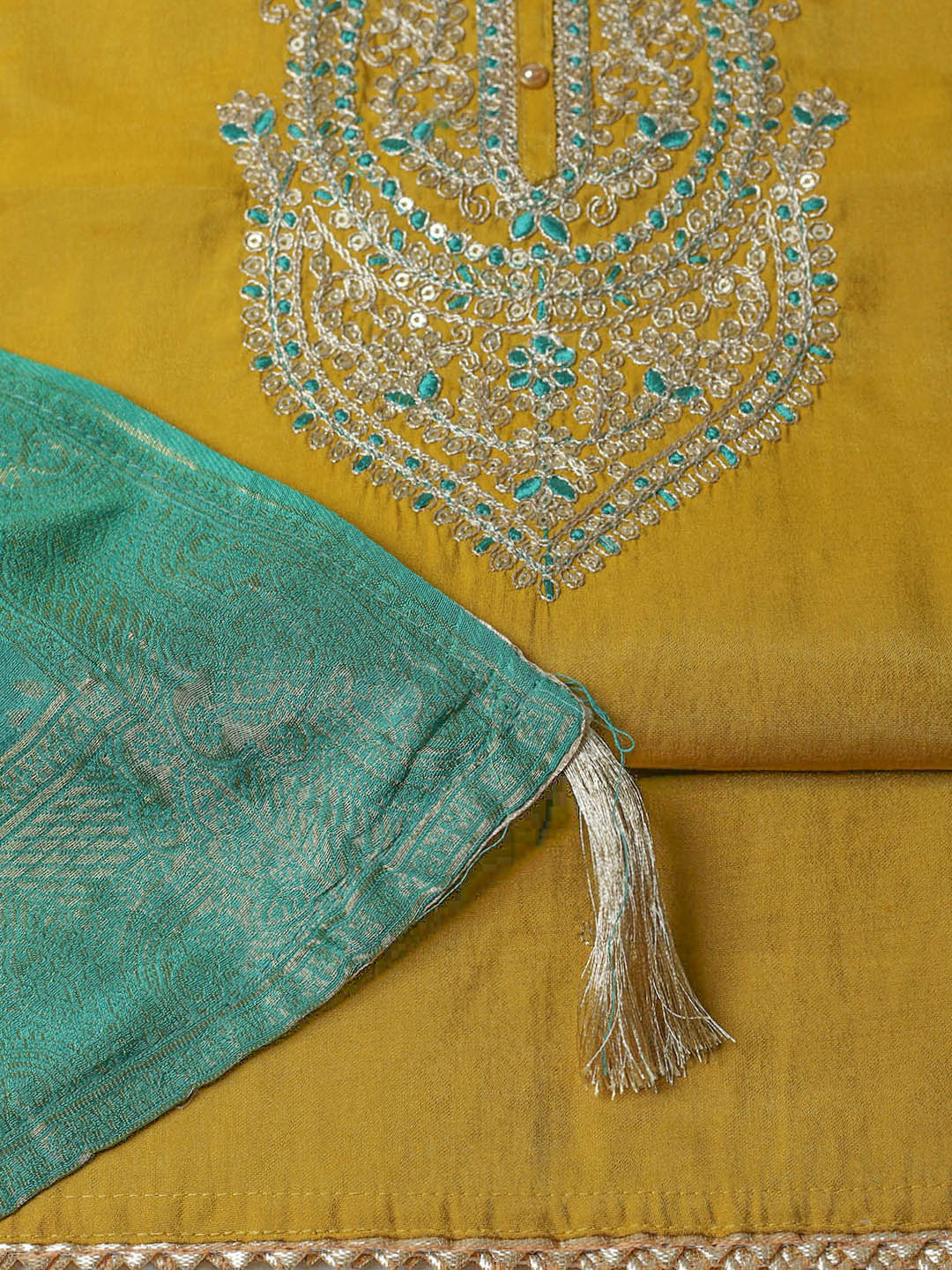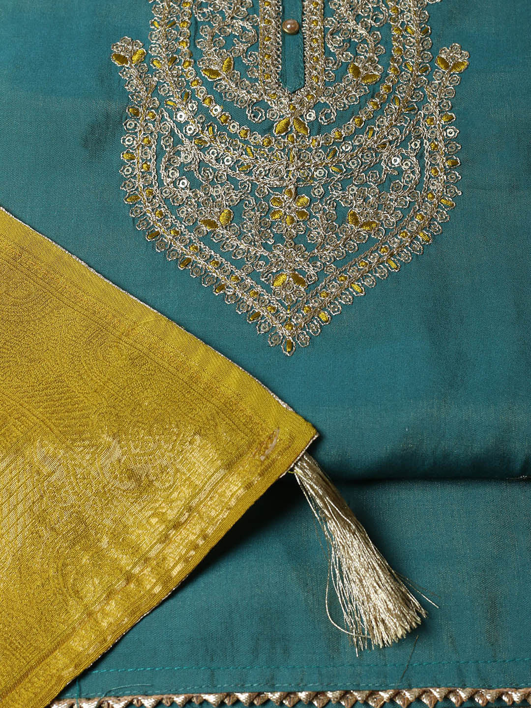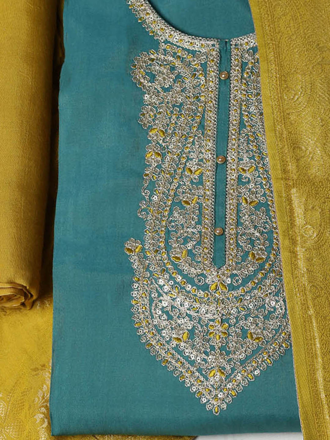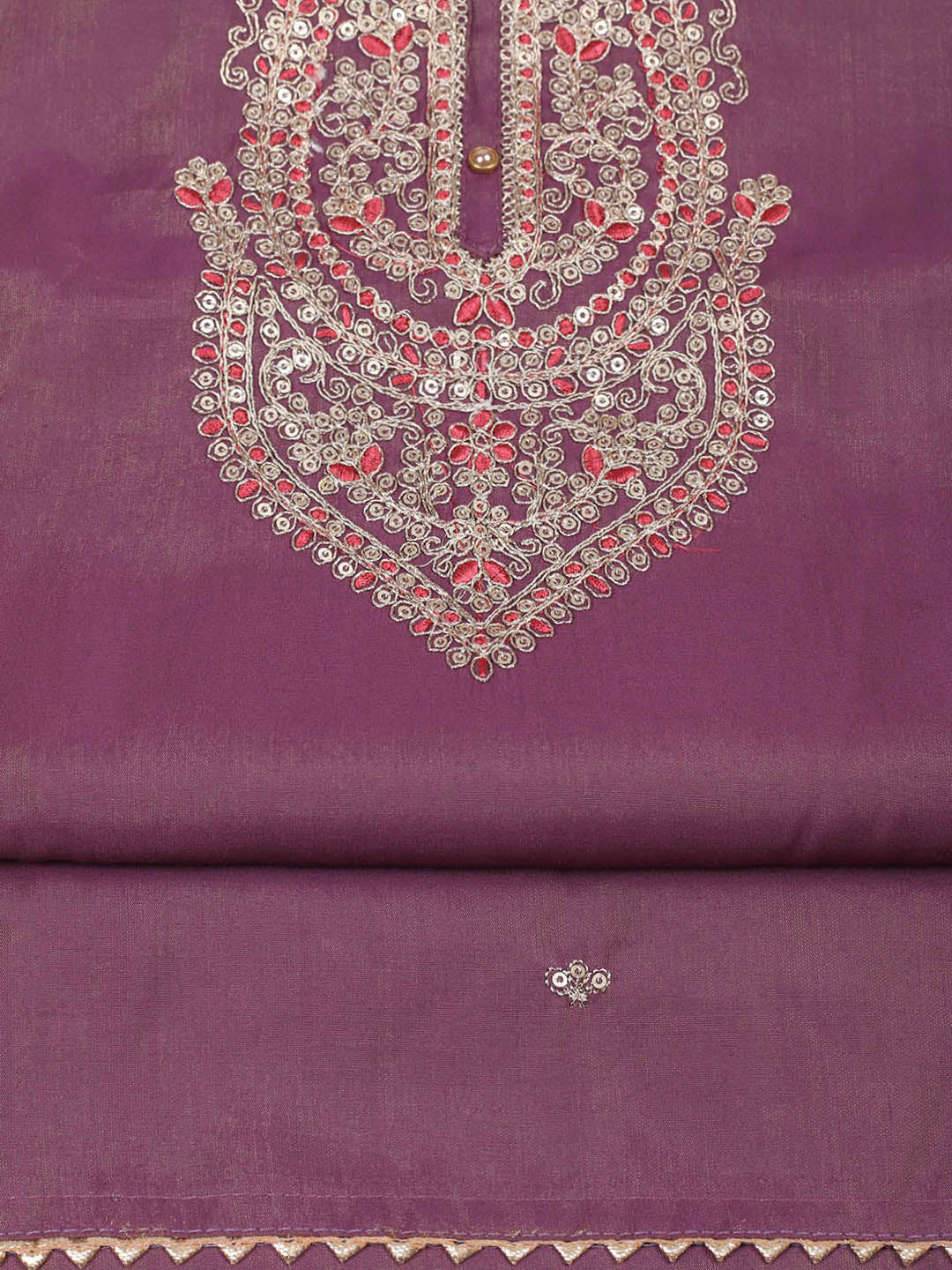 Embroidered Chanderi Unstitched Suit With Pant & Dupatta