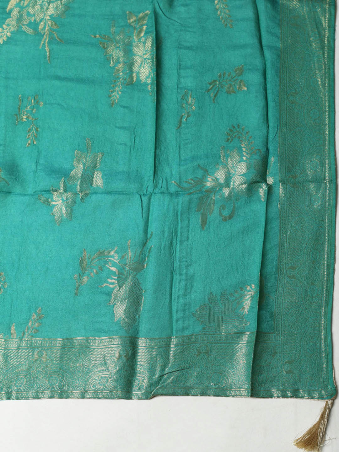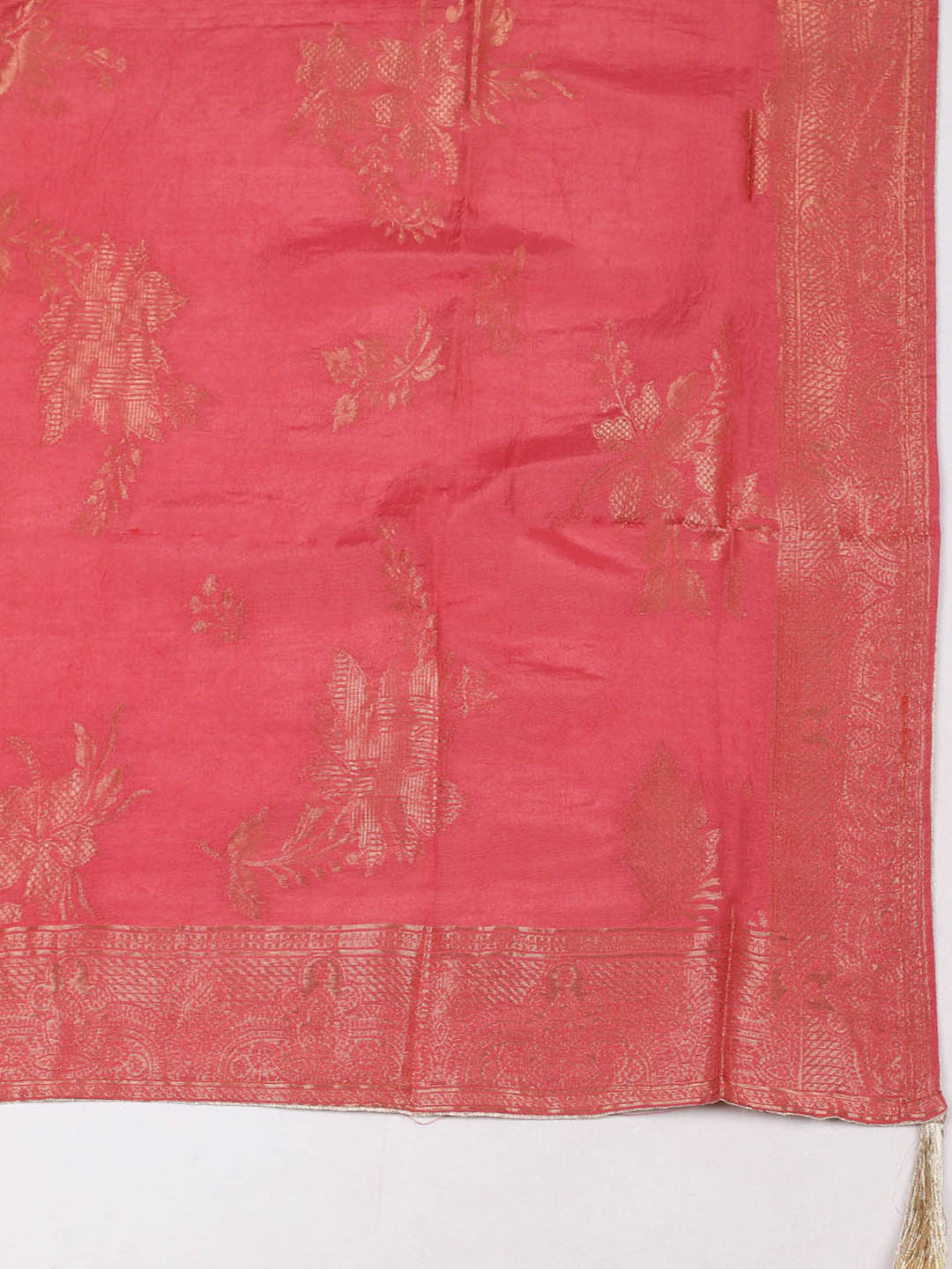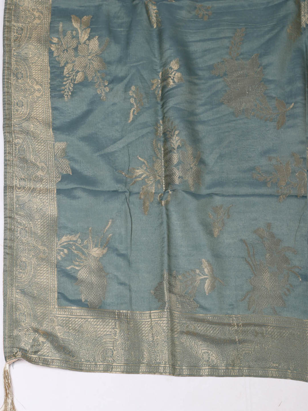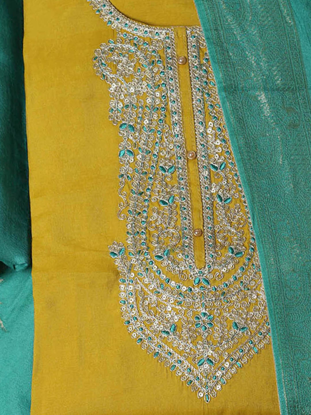 Embroidered Chanderi Unstitched Suit With Pant & Dupatta