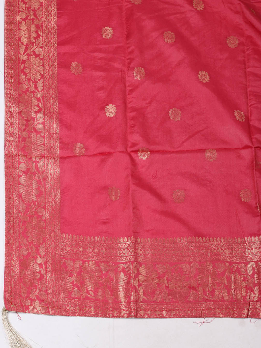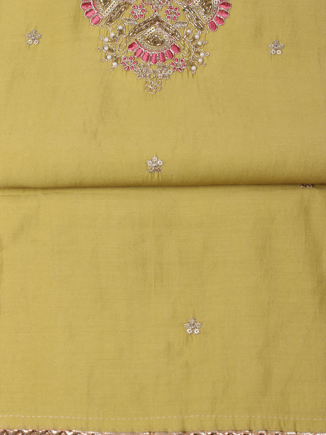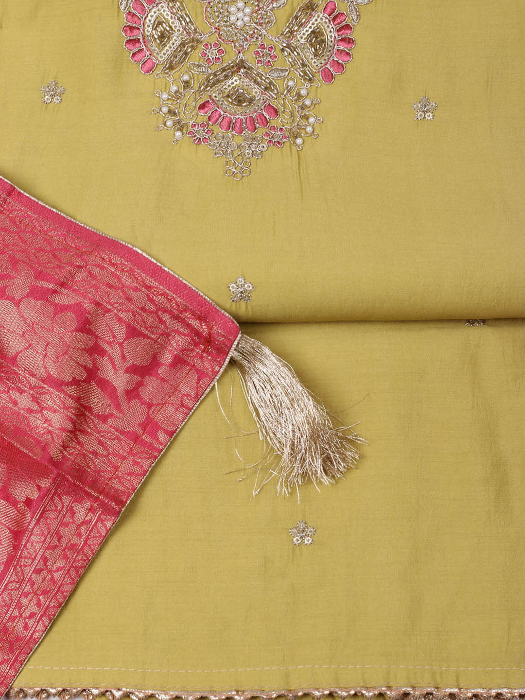 Embroidered Chanderi Mehndi Unstitched Suit With Pant & Dupatta