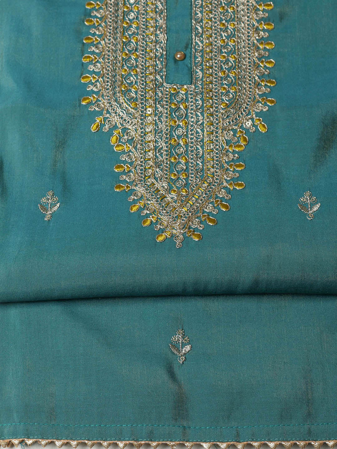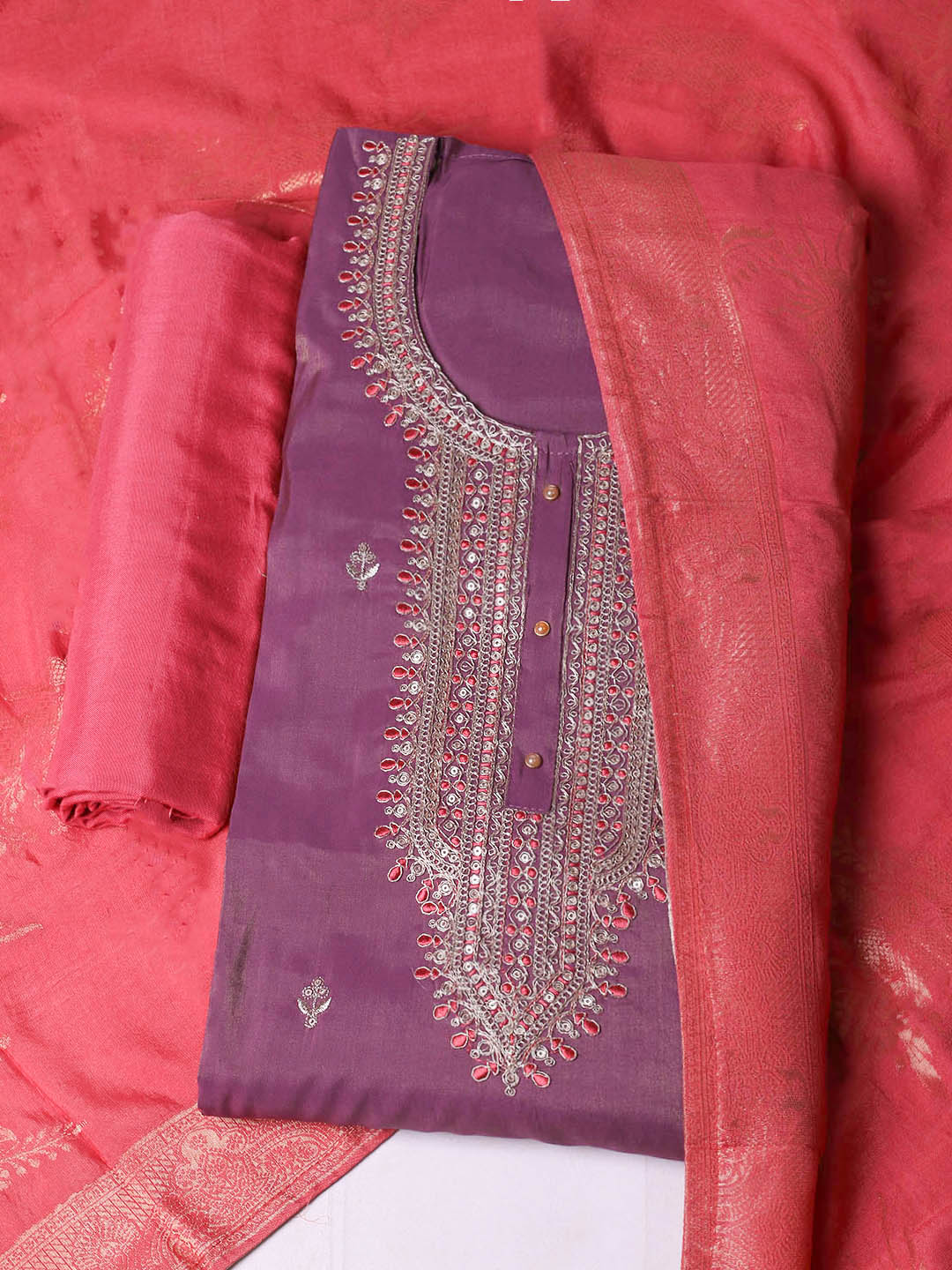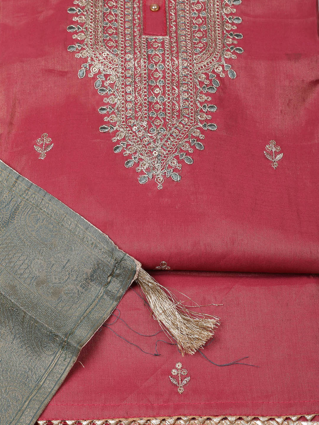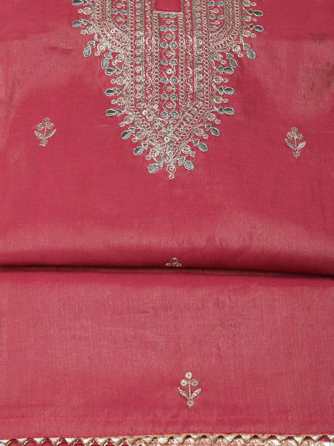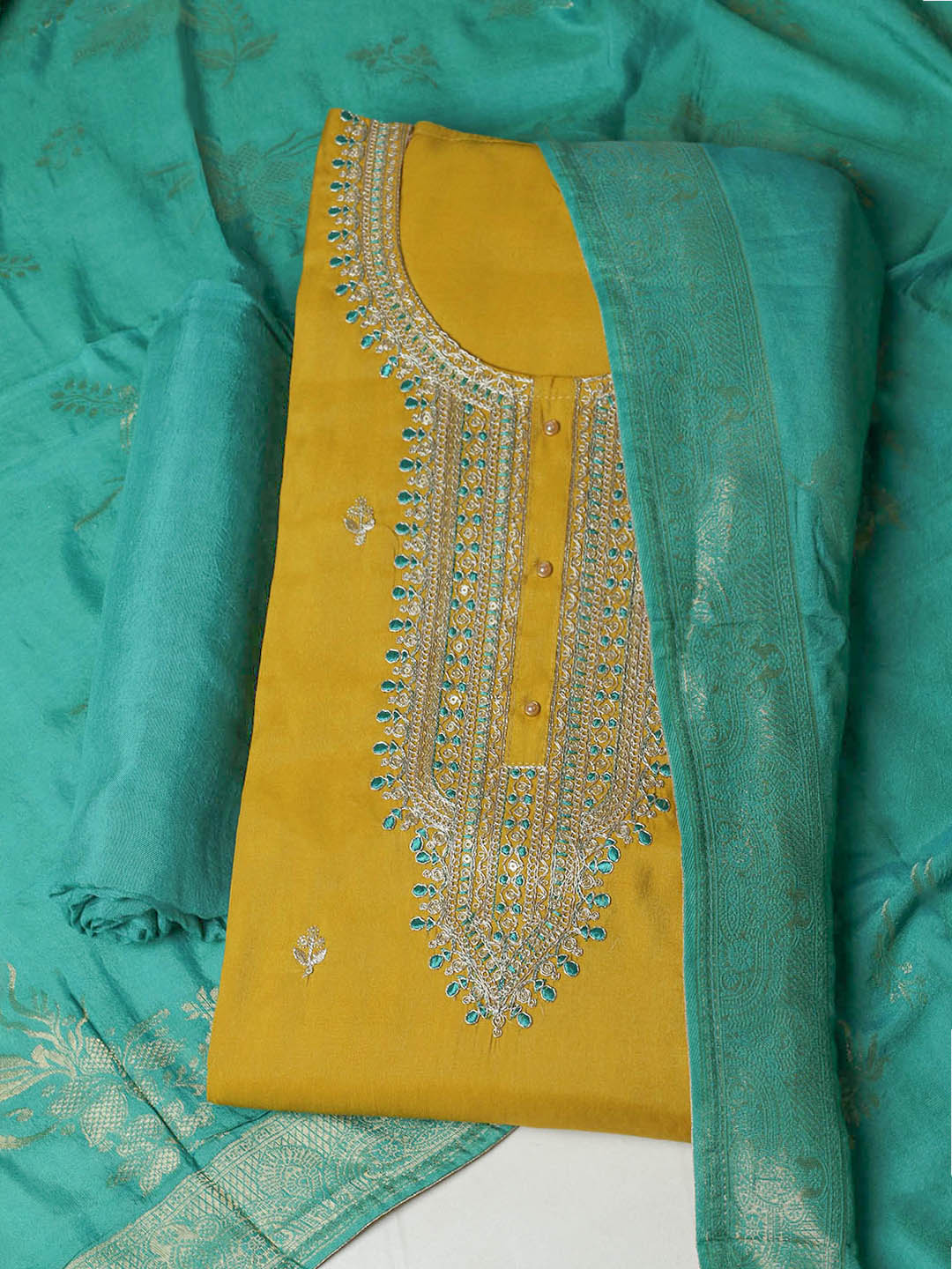Embroidered Chanderi Unstitched Suit With Pant & Dupatta