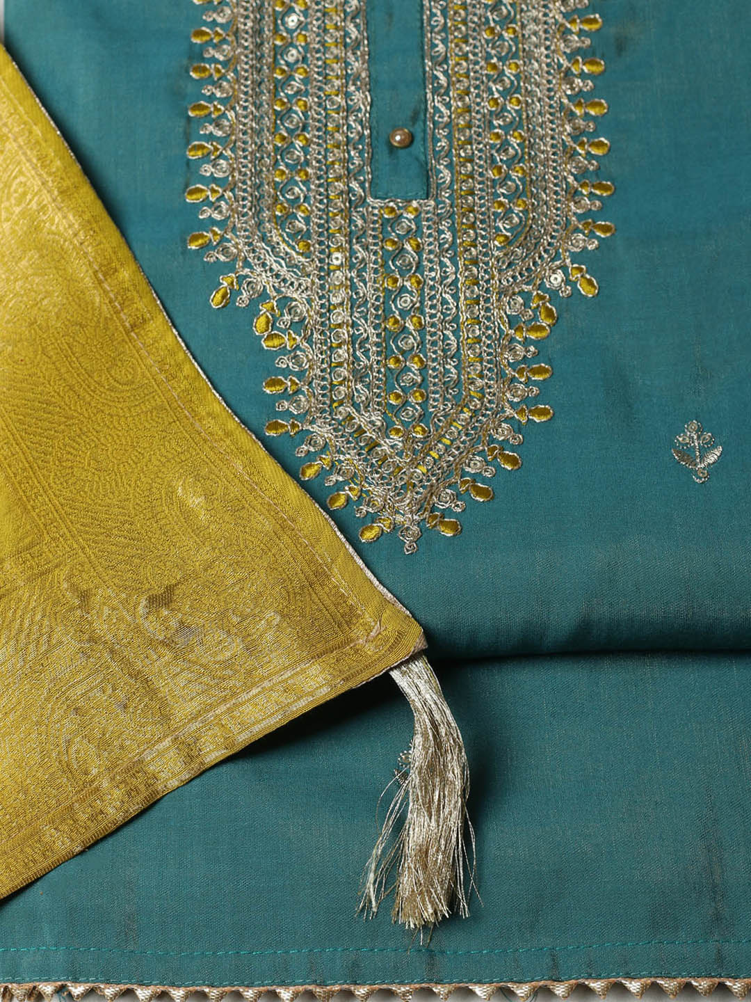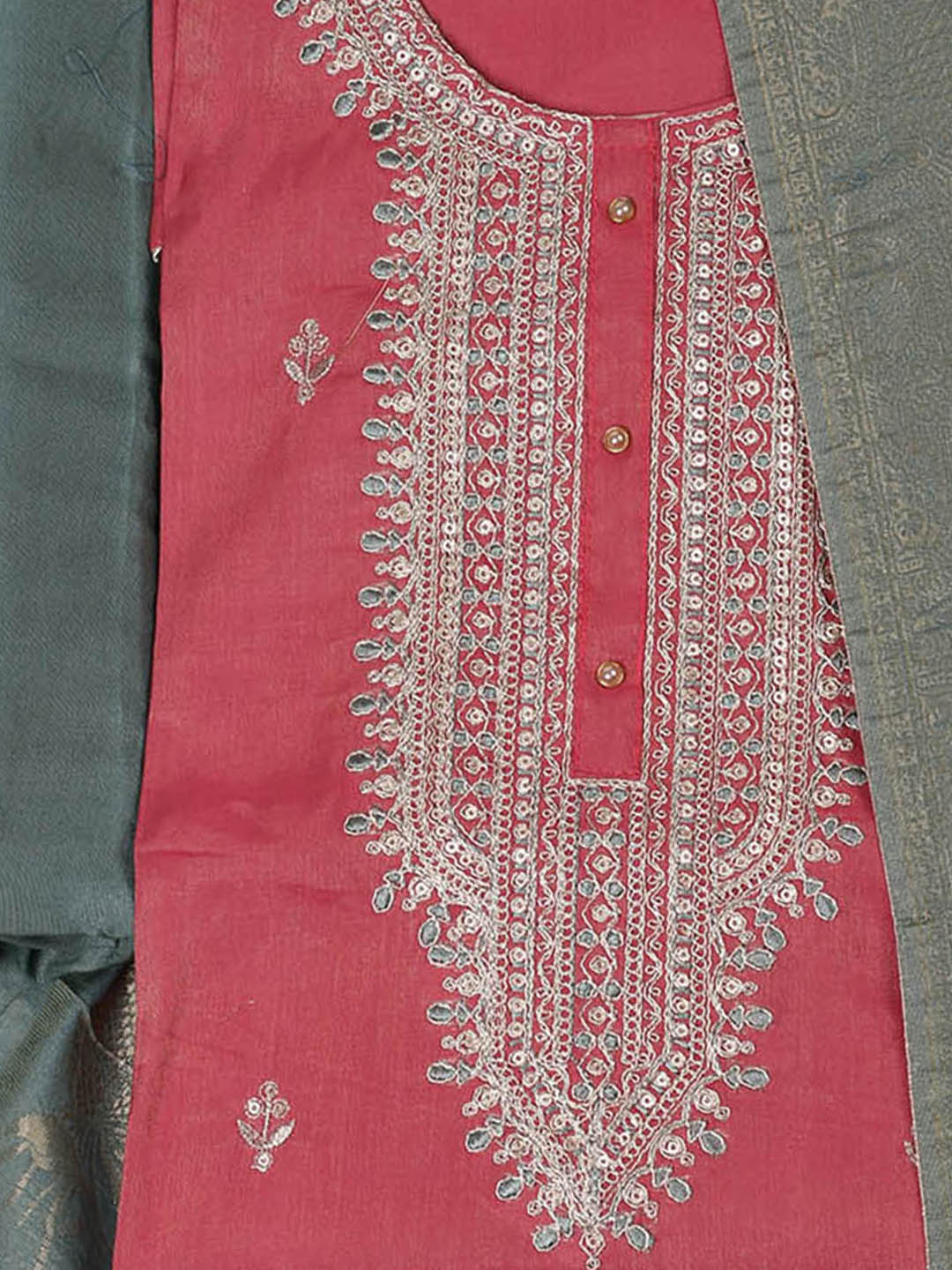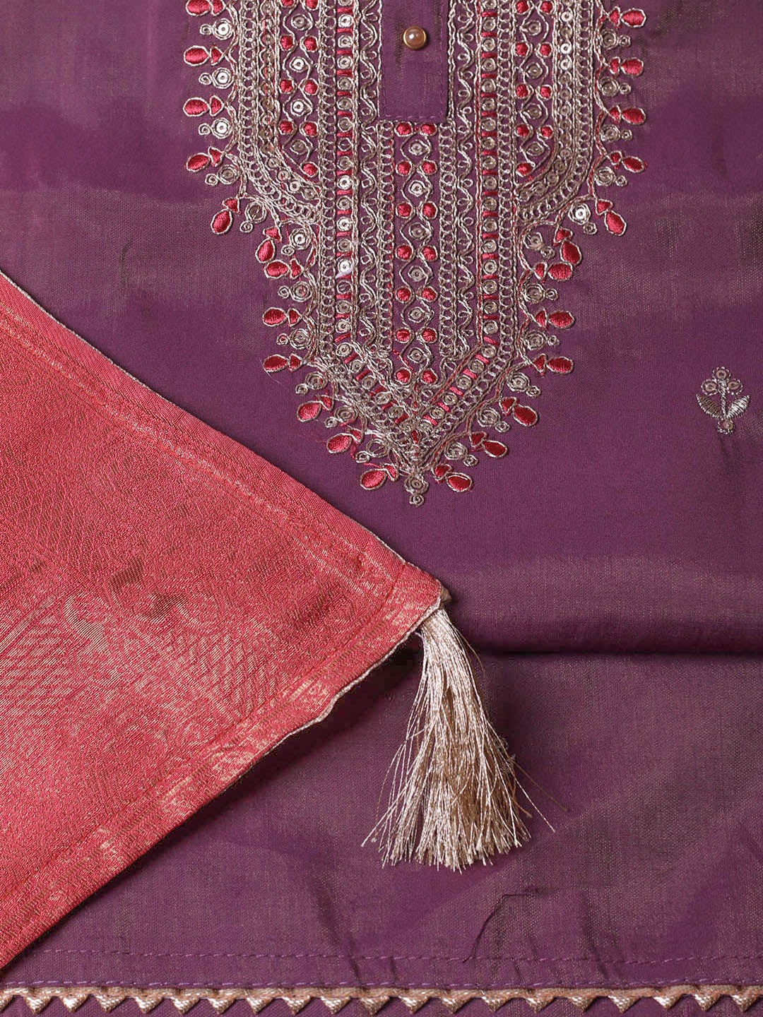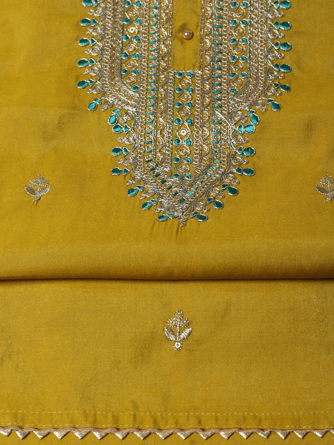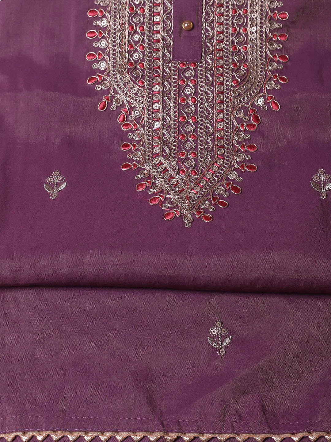 Embroidered Chanderi Unstitched Suit With Pant & Dupatta