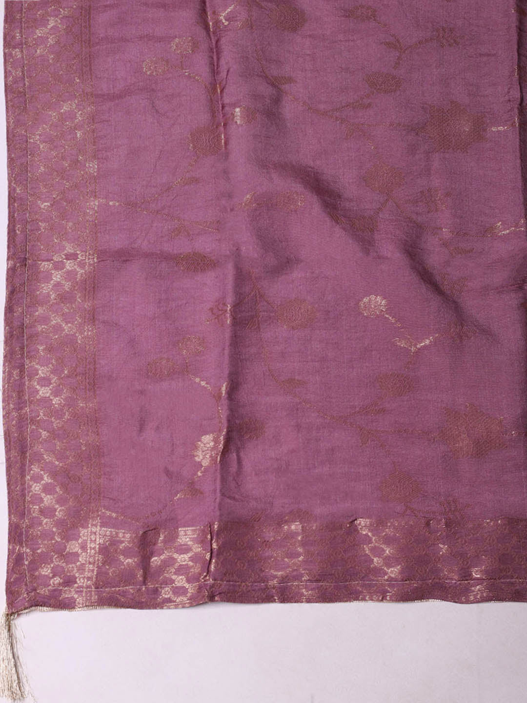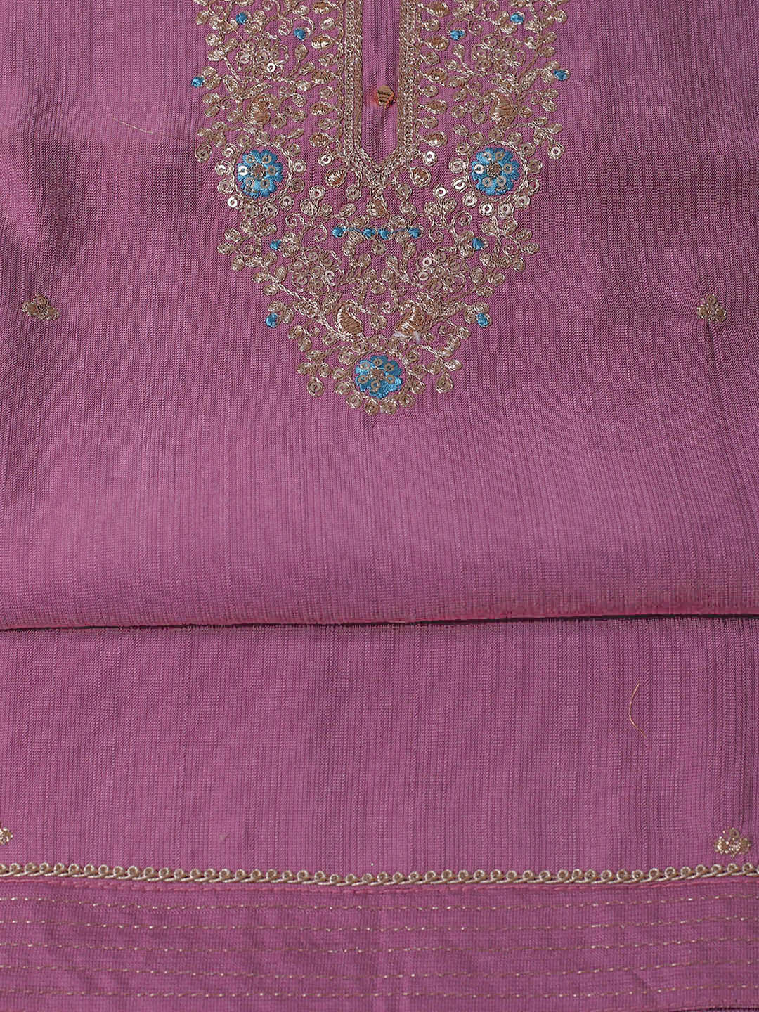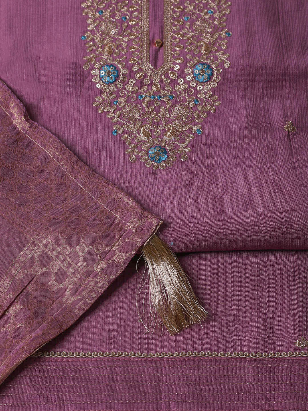 Embroidered Chanderi Lavender Unstitched Suit With Pant & Dupatta