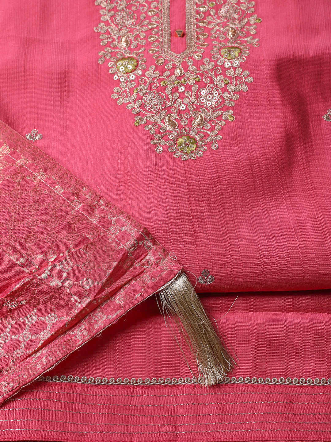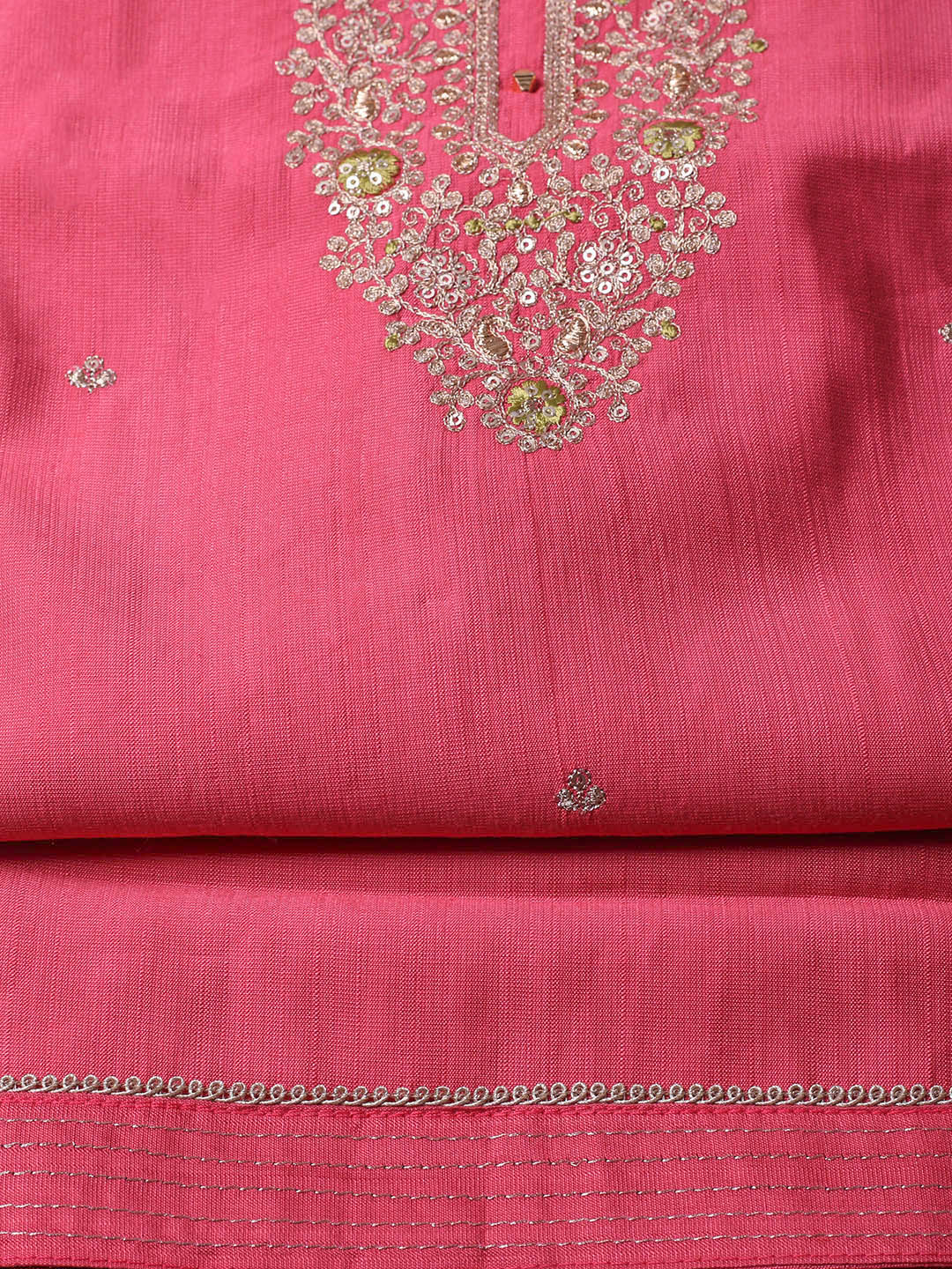 Embroidered Chanderi Pink Unstitched Suit With Pant & Dupatta