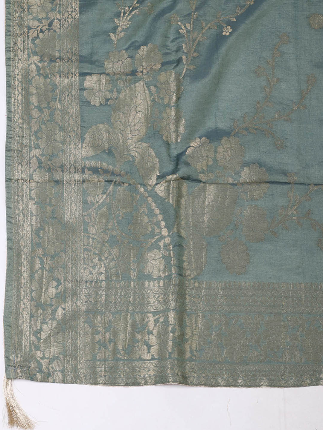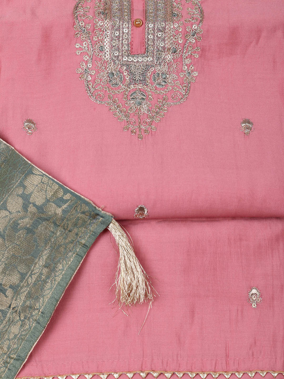 Embroidered Chanderi Pink Unstitched Suit With Pant & Dupatta