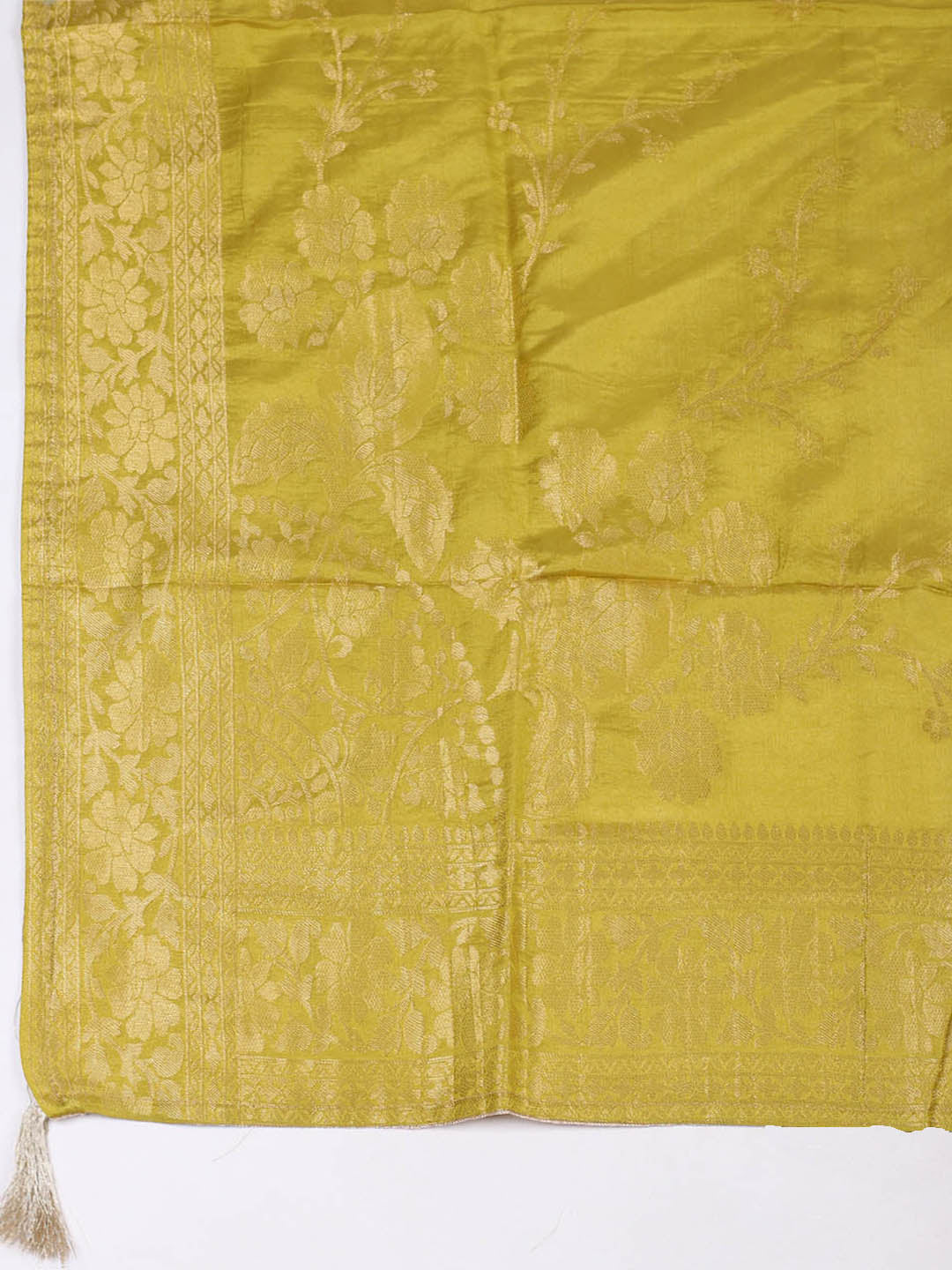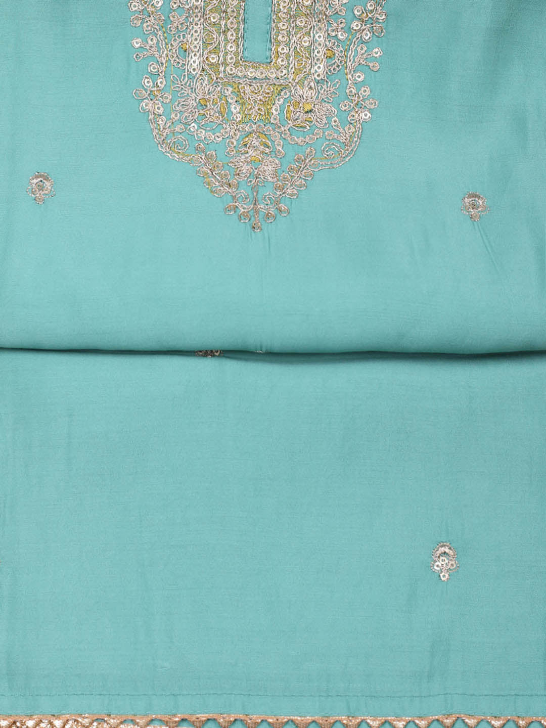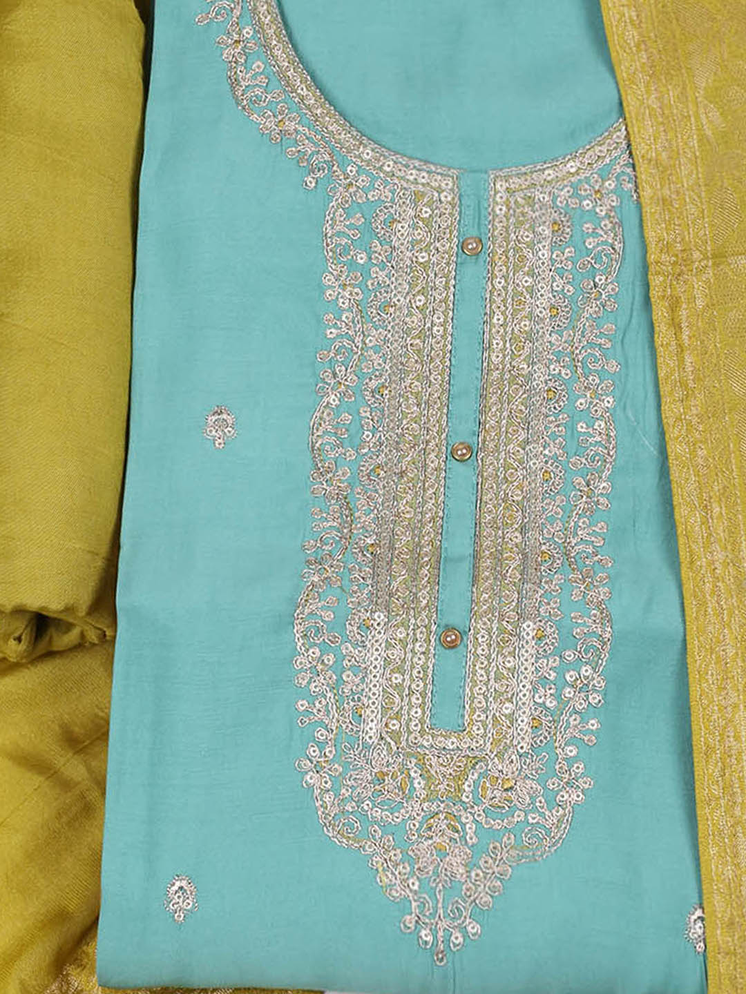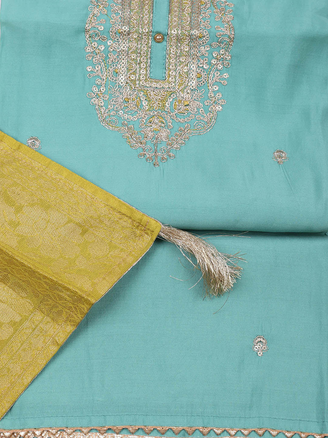 Embroidered Chanderi Sea Green Unstitched Suit With Pant & Dupatta