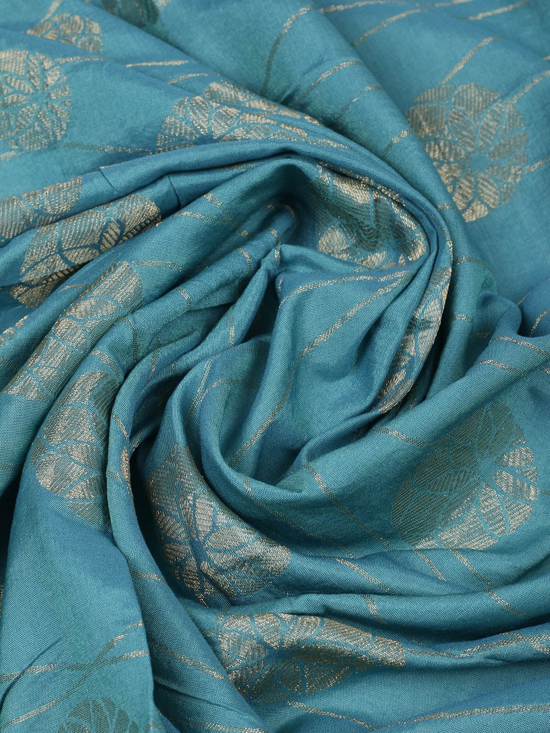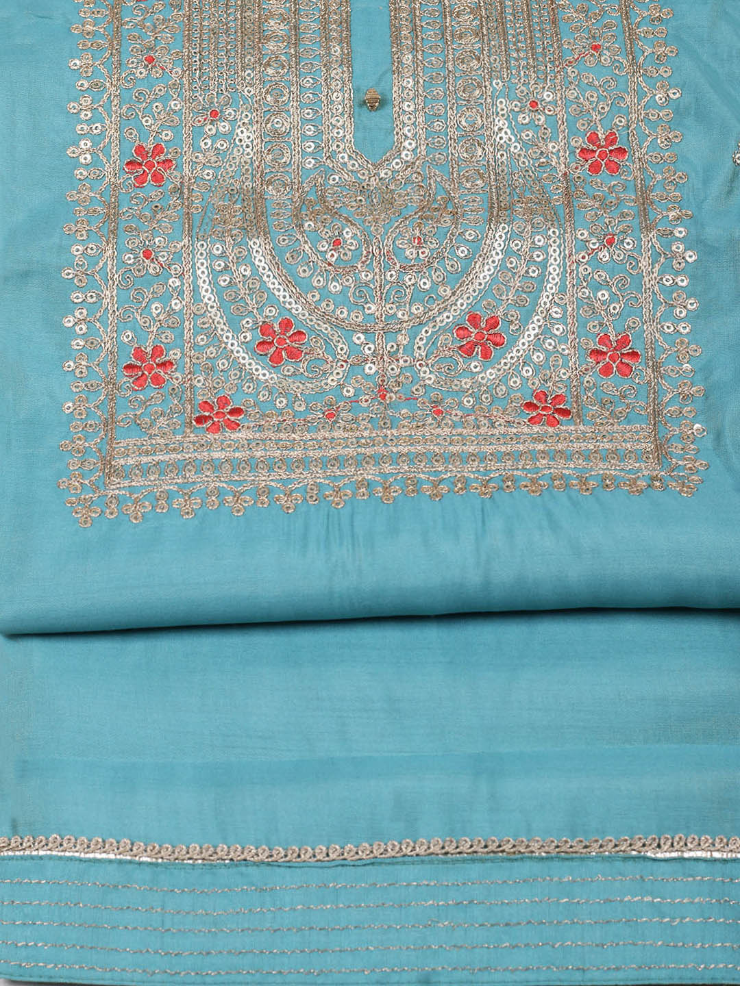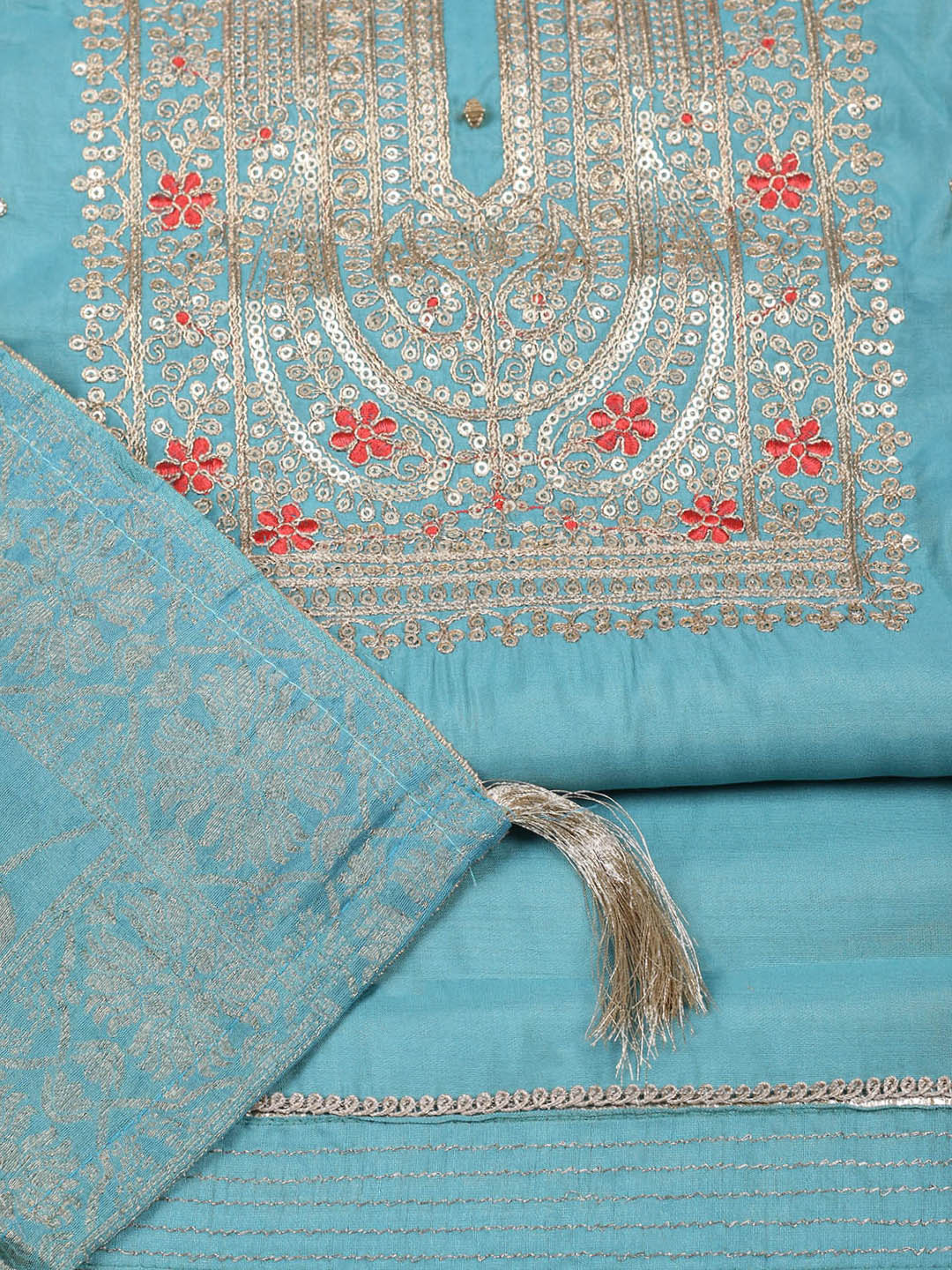 Embroidered Chanderi Sea Green Unstitched Suit With Pant & Dupatta