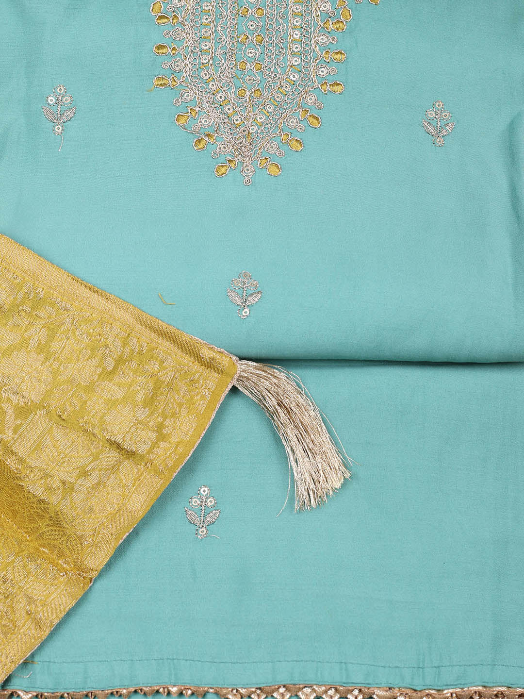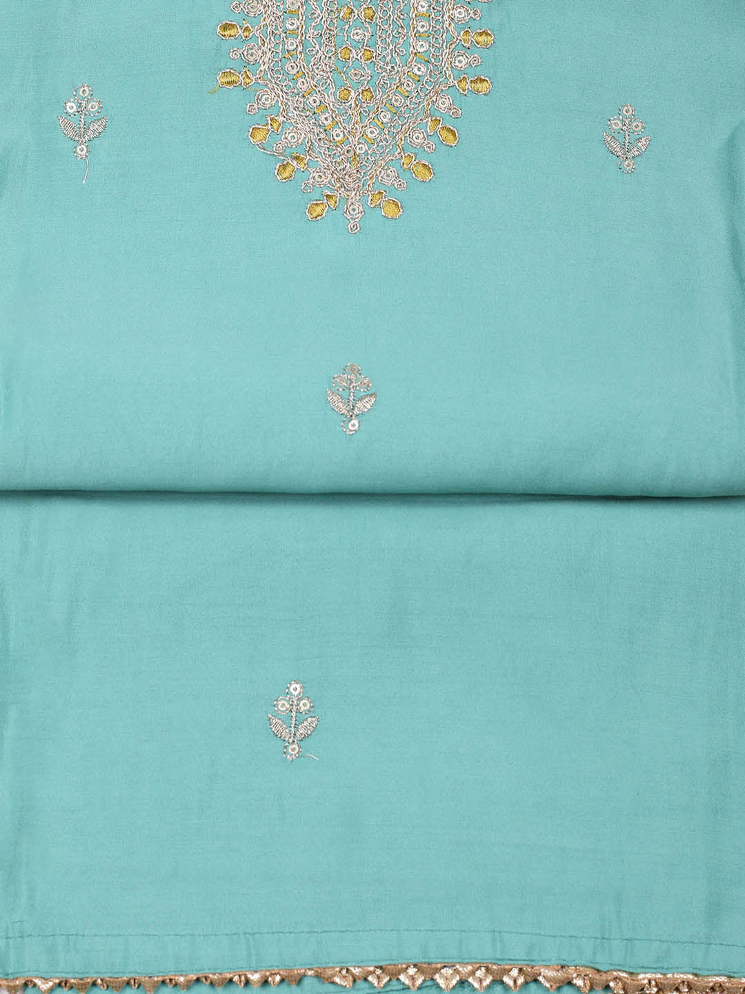 Embroidered Chanderi Sea Green Unstitched Suit With Pant & Dupatta